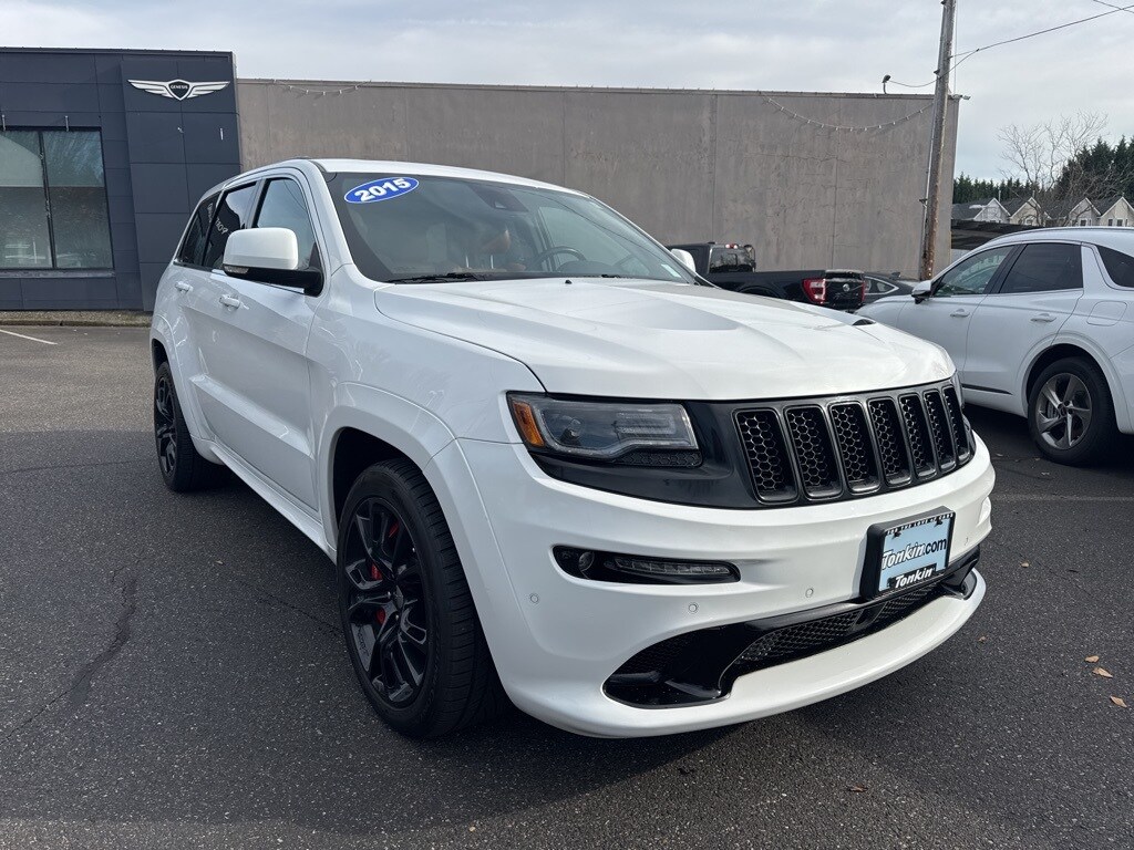 HEMI *** SRT8 *** SRT HIGH PERFORMANCE AUDIO *** 2015 Jeep Grand Cherokee SRT 4D Sport Utility SRT HEMI 6.4L V8 MDS 8-Speed Automatic 4WD Bright White Clearcoat 19 Speakers High Performance Audio, 825 Watt Amplifier, SRT High Performance Audio, 10 Speakers, 3.70 Rear Axle Ratio, 4-Wheel Disc Brakes, 7 & 4 Pin Wiring Harness, ABS brakes, Adaptive suspension, Air Conditioning, Alloy wheels, AM/FM radio: SiriusXM, Anti-whiplash front head restraints, Audio memory, Auto High-beam Headlights, Auto-dimming door mirrors, Auto-dimming Rear-View mirror, Automatic temperature control, Brake assist, Bumpers: body-color, Class IV Receiver Hitch, Compass, Delay-off headlights, Driver door bin, Driver vanity mirror, Dual front impact airbags, Dual front side impact airbags, Dual-Pane Panoramic Sunroof (DISC), Electronic Stability Control, Emergency communication system: Uconnect guardian, Exterior Parking Camera Rear, Four wheel independent suspension, Front anti-roll bar, Front Bucket Seats, Front Center Armrest w/Storage, Front dual zone A/C, Front fog lights, Front reading lights, Fully automatic headlights, Garage door transmitter, Headlight cleaning, Heated door mirrors, Heated front seats, Heated rear seats, Heated steering wheel, Heavy-Duty Engine Cooling, High intensity discharge headlights: Bi-Xenon, High Performance Suspension, Illuminated entry, Knee airbag, Leather Seats w/Perforated Suede, Leather Shift Knob, Low tire pressure warning, Memory seat, Navigation System, Occupant sensing airbag, Outside temperature display, Overhead airbag, Overhead console, Panic alarm, Passenger door bin, Passenger vanity mirror, Power door mirrors, Power driver seat, Power Liftgate, Power passenger seat, Power steering, Power windows, Quick Order Package 28L (DISC), Radio data system, Radio: Uconnect 8.4 NAV, Rain sensing wipers, Rear anti-roll bar, Rear reading lights, Rear seat center armrest, Rear window defroster, Rear window wiper, Remote keyless entry, Security system, Speed control, Speed-Sensitive Wipers, Split folding rear seat, Spoiler, Steering wheel mounted audio controls, Tachometer, Telescoping steering wheel, Tilt steering wheel, Traction control, Trailer Tow Group IV, Trip computer, Turn signal indicator mirrors, Variably intermittent wipers, Ventilated front seats, Wheels: 20" x 10.0" Black Chrome Split 5 Spoke, Wheels: 20" x 10.0" Polished 5 Spoke, 19 Speakers High Performance Audio, 825 Watt Amplifier, SRT High Performance Audio.