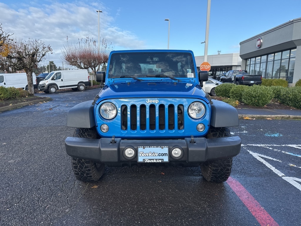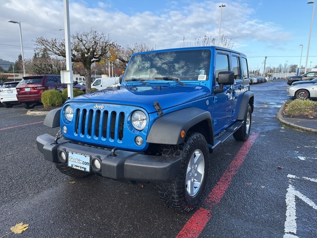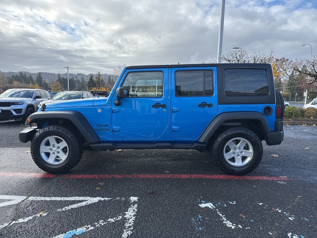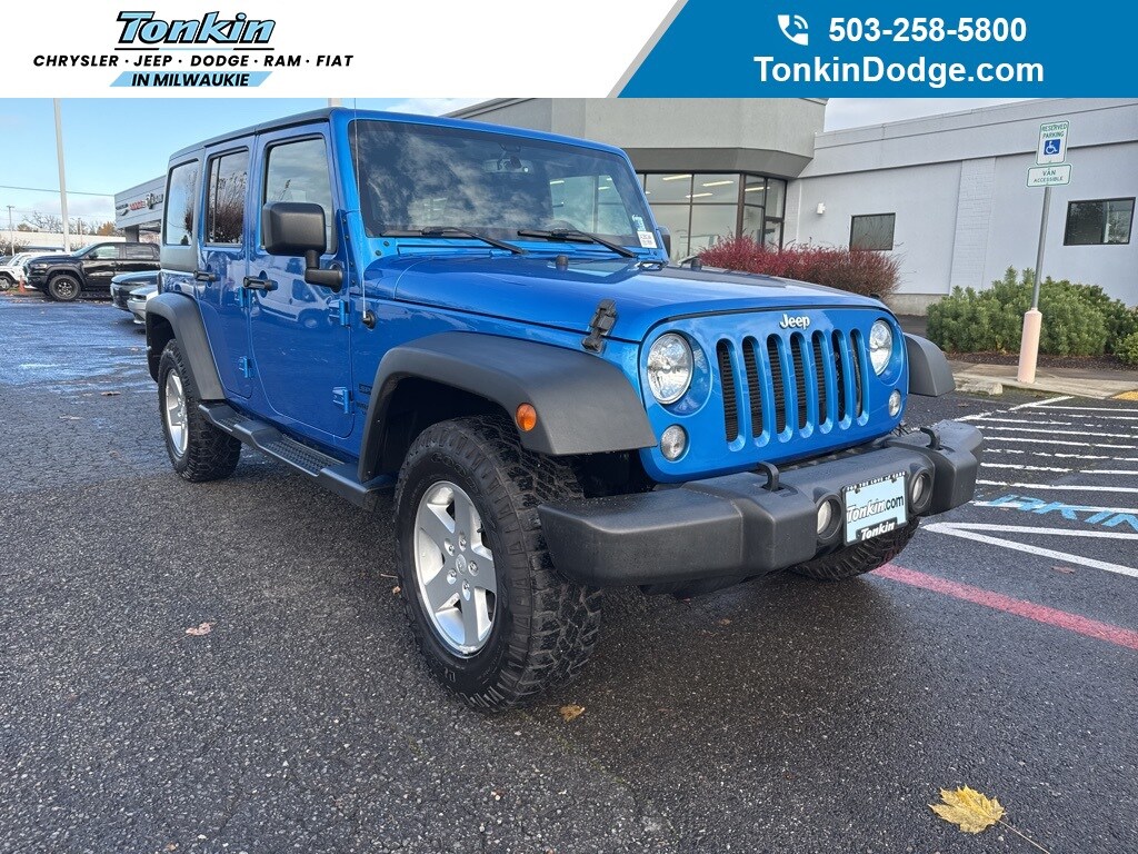 Clean CARFAX. 2016 Jeep Wrangler Unlimited Sport 3.6L V6 24V VVT 5-Speed Automatic 4WD 4D Sport Utility Hydro Blue Pearl Coat 4WD, 17" x 7.5" Aluminum Wheels, Auto-Dimming Mirror w/Reading Lamp, Chrome/Leather Wrapped Shift Knob, Class II Receiver Hitch, Connectivity Group, Deep Tint Sunscreen Windows, Front 1-Touch Down Power Windows, Leather Wrapped Steering Wheel, Max Tow Package, Power Convenience Group, Power Heated Mirrors, Power Locks, Quick Order Package 24S, Remote Keyless Entry, Remote USB Port, Security Alarm, Tire Pressure Monitoring Display, Trailer Tow w/4-Pin Connector Wiring, Uconnect Voice Command w/Bluetooth, Vehicle Information Center, 1-Yr SiriusXM Radio Service, 16" x 7.0" Luxury Styled Steel Wheels, 4-Wheel Disc Brakes, 8 Speakers, ABS brakes, Air Conditioning, AM/FM radio, Audio Jack Input for Mobile Devices, Black 3-Piece Hard Top, Brake assist, CD player, Cloth Seats w/Adjustable Head Restraints, Compass, Delete Sunrider Soft Top, Driver door bin, Driver vanity mirror, Dual front impact airbags, Electronic Stability Control, Freedom Panel Storage Bag, Front anti-roll bar, Front Bucket Seats, Front Center Armrest w/Storage, Front fog lights, Integrated roll-over protection, Low tire pressure warning, Normal Duty Suspension, Occupant sensing airbag, Outside temperature display, Passenger door bin, Passenger vanity mirror, Power steering, Radio: 130, Rear anti-roll bar, Rear Window Defroster, Rear Window Wiper/Washer, SIRIUS Satellite Radio, Speed control, Split folding rear seat, Steering wheel mounted audio controls, Supplemental Front Seat Side Airbags, Tachometer, Tilt steering wheel, Tinted Rear Quarter & Liftgate Windows, Traction control, Trip computer, Variably intermittent wipers, 4WD, 17" x 7.5" Aluminum Wheels, Auto-Dimming Mirror w/Reading Lamp, Chrome/Leather Wrapped Shift Knob, Class II Receiver Hitch, Connectivity Group, Deep Tint Sunscreen Windows, Front 1-Touch Down Power Windows, Leather Wrapped Steering Wheel, Max Tow Package, Power Convenience Group, Power Heated Mirrors, Power Locks, Quick Order Package 24S, Remote Keyless Entry, Remote USB Port, Security Alarm, Tire Pressure Monitoring Display, Trailer Tow w/4-Pin Connector Wiring, Uconnect Voice Command w/Bluetooth, Vehicle Information Center. ***Call (503) 258-5800 to speak to a Sales Professional*** Come in to Ron Tonkin Chrysler Jeep Dodge Ram Fiat in Milwaukie to test drive today! DL0087.