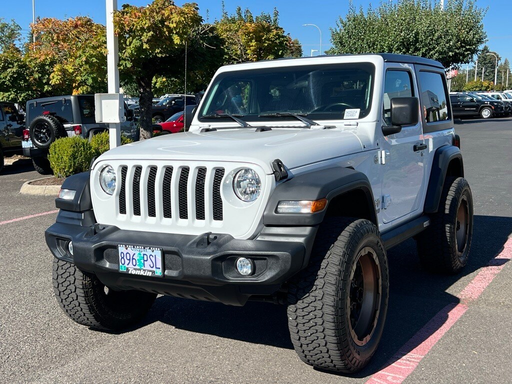 Clean CARFAX. 2020 Jeep Wrangler Sport S 2.0L I4 DOHC 8-Speed Automatic 4WD 2D Sport Utility Bright White Clearcoat 4WD, Air Conditioning, Automatic Headlamps, Convenience Group, Deep Tint Sunscreen Windows, Front 1-Touch Down Power Windows, Leather Wrapped Steering Wheel, Power Heated Mirrors, Quick Order Package 22S Sport S, R1234YF A/C Refrigerant, Remote Keyless Entry, Security Alarm, Speed Sensitive Power Locks, Sun Visors w/Illuminated Vanity Mirrors, Universal Garage Door Opener, Wheels: 17" x 7.5" Tech Silver Aluminum, 110 mph Vehicle Max Speed Calibration, 3.45 Rear Axle Ratio, 4-Wheel Disc Brakes, 8 Speakers, ABS brakes, AM/FM radio, Anti-Spin Differential Rear Axle, Aux Battery, Black 3-Piece Hard Top, Brake assist, Cloth Low-Back Bucket Seats, Compass, Delay-off headlights, Driver door bin, Driver vanity mirror, Dual front impact airbags, Dual front side impact airbags, Electronic Stability Control, Freedom Panel Storage Bag, Front anti-roll bar, Front Bucket Seats, Front Center Armrest w/Storage, Front fog lights, Front reading lights, Integrated roll-over protection, Low tire pressure warning, Manuf Statement of Origin, Non-Lock Fuel Cap w/o Discriminator, Normal Duty Suspension, Occupant sensing airbag, Outside temperature display, ParkView Rear Back-Up Camera, Passenger door bin, Passenger vanity mirror, Power steering, Radio data system, Radio: Uconnect 3 w/5" Display, Rear anti-roll bar, Rear reading lights, Rear Window Wiper/Washer, Speed control, Steering wheel mounted audio controls, Stop-Start Dual Battery System, Tachometer, Telescoping steering wheel, Tilt steering wheel, Traction control, Trip computer, Variably intermittent wipers, Wheels: 17" x 7.5" Black Steel Styled, 4WD, Air Conditioning, Automatic Headlamps, Convenience Group, Deep Tint Sunscreen Windows, Front 1-Touch Down Power Windows, Leather Wrapped Steering Wheel, Power Heated Mirrors, Quick Order Package 22S Sport S, R1234YF A/C Refrigerant, Remote Keyless Entry, Security Alarm, Speed Sensitive Power Locks, Sun Visors w/Illuminated Vanity Mirrors, Universal Garage Door Opener, Wheels: 17" x 7.5" Tech Silver Aluminum. ***Call (503) 258-5800 to speak to a Sales Professional*** Come in to Ron Tonkin Chrysler Jeep Dodge Ram Fiat in Milwaukie to test drive today! DL0087.