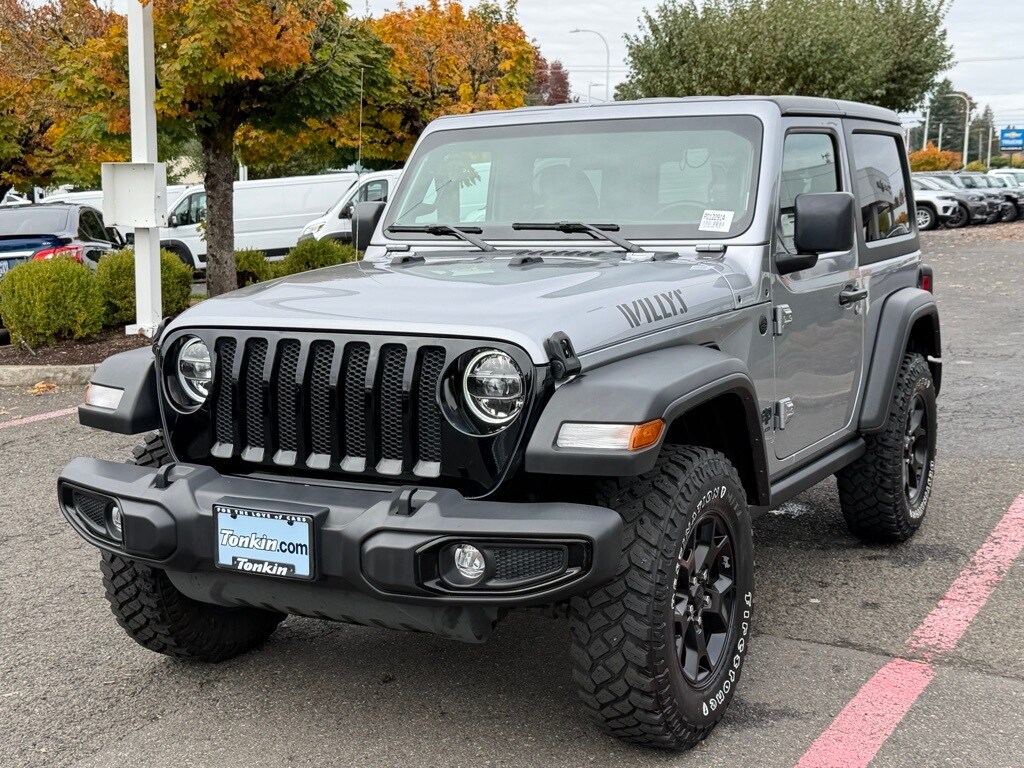 Recent Arrival! Clean CARFAX. 2021 Jeep Wrangler Willys 3.6L V6 24V VVT 8-Speed Automatic 4WD 2D Sport Utility Billet Silver Metallic Clearcoat 4WD, 240 Amp Alternator, 4-Wheel Drive Swing Gate Decal, 7 & 4 Pin Wiring Harness, 7.0" Touchscreen Display, 700 Amp Maintenance Free Battery, 97 MPH Vehicle Max Speed Calibration, Air Conditioning, Air Conditioning w/Auto Temperature Control, Air Filtering, Anti-Spin Differential Rear Axle, Apple CarPlay, Automatic Headlamps, Auxiliary Switches, Black Grille, Black Trail Rated Badge, Class II Receiver Hitch, Cluster 7.0" TFT Color Display, Cold Weather Group, Convenience Group, Deep Tint Sunscreen Windows, For More Info Call 800-643-2112, Front 1-Touch Down Power Windows, Front LED Fog Lamps, Google Android Auto, GPS Antenna Input, Heated Front Seats, Heated Steering Wheel, Integrated Center Stack Radio, Leather Wrapped Steering Wheel, LED Headlamp & Fog Lamp Group, LED Premium Reflector Headlamps, Matte Black Jeep Badge, Mold In Color Bumper w/Gloss Black, MOPAR All-Weather Floor Mats, Power Heated Mirrors, Quick Order Package 25W Willys, R1234YF A/C Refrigerant, Radio: Uconnect 4 w/7" Display, Remote Keyless Entry, Security Alarm, SiriusXM Radio Service, SiriusXM Satellite Radio, Speed Sensitive Power Locks, Sun Visors w/Illuminated Vanity Mirrors, Technology Group, Trailer Tow & HD Electrical Group, Universal Garage Door Opener, USB Host Flip, Wheels: 17" x 7.5" Moab Black Aluminum, Willys, Willys Hood Decal, Wrangler Decal, 110 mph Vehicle Max Speed Calibration, 3.45 Rear Axle Ratio, 4-Wheel Disc Brakes, 8 Speakers, ABS brakes, AM/FM radio, Black 3-Piece Hard Top, Brake assist, Cloth Low-Back Bucket Seats, Compass, Delay-off headlights, Driver door bin, Driver vanity mirror, Dual front impact airbags, Dual front side impact airbags, Electronic Stability Control, Freedom Panel Storage Bag, Front anti-roll bar, Front Bucket Seats, Front Center Armrest w/Storage, Front fog lights, Front reading lights, Integrated roll-over protection, Low tire pressure warning, Manuf Statement of Origin, MOPAR All-Weather Floor Mats (DISC), No Soft Top, Normal Duty Suspension, Occupant sensing airbag, Outside temperature display, ParkView Rear Back-Up Camera, Passenger door bin, Passenger vanity mirror, Power steering, Radio data system, Radio: Uconnect 3 w/5" Display, Rear anti-roll bar, Rear reading lights, Rear Window Defroster, Rear Window Wiper/Washer, Speed control, Steering wheel mounted audio controls, Tachometer, Telescoping steering wheel, Tilt steering wheel, Traction control, Trip computer, Variably intermittent wipers, Wheels: 17" x 7.5" Black Steel Styled, 4WD, 240 Amp Alternator, 4-Wheel Drive Swing Gate Decal, 7 & 4 Pin Wiring Harness, 7.0" Touchscreen Display, 700 Amp Maintenance Free Battery, 97 MPH Vehicle Max Speed Calibration, Air Conditioning, Air Conditioning w/Auto Temperature Control, Air Filtering, Anti-Spin Differential Rear Axle, Apple CarPlay, Automatic Headlamps, Auxiliary Switches, Black Grille, Black Trail Rated Badge, Class II Receiver Hitch, Cluster 7.0" TFT Color Display, Cold Weather Group, Convenience Group, Deep Tint Sunscreen Windows, For More Info Call 800-643-2112, Front 1-Touch Down Power Windows, Front LED Fog Lamps, Google Android Auto, GPS Antenna Input, Heated Front Seats, Heated Steering Wheel, Integrated Center Stack Radio, Leather Wrapped Steering Wheel, LED Headlamp & Fog Lamp Group, LED Premium Reflector Headlamps, Matte Black Jeep Badge, Mold In Color Bumper w/Gloss Black, MOPAR All-Weather Floor Mats, Power Heated Mirrors, Quick Order Package 25W Willys, R1234YF A/C Refrigerant, Radio: Uconnect 4 w/7" Display, Remote Keyless Entry, Security Alarm, SiriusXM Radio Service, SiriusXM Satellite Radio, Speed Sensitive Power Locks, Sun Visors w/Illuminated Vanity Mirrors, Technology Group, Trailer Tow & HD Electrical Group, Universal Garage Door Opener, USB Host Flip, Wheels: 17" x 7.5" Moab Black Aluminum, Willys, Willys Hood Decal, Wrangler Decal. ***Ca