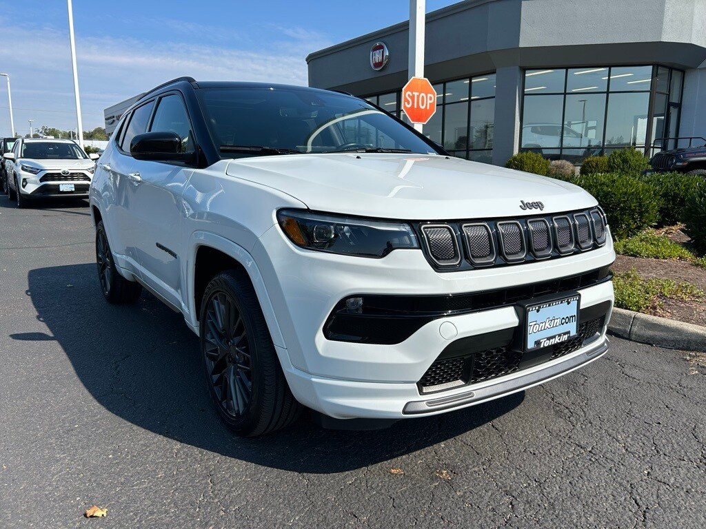 CARFAX One-Owner. Clean CARFAX. 2022 Jeep Compass High Altitude 2.4L I4 9-Speed 948TE Automatic 4WD 4D Sport Utility Bright White Clearcoat 4WD, 10.1" Touchscreen Display, 4G LTE Wi-Fi Hot Spot, Alexa Built-In, Auto High Beam Headlamp Control, Black Headliner, Body Color Door Claddings, Body Color Exterior Sill Moldings, Body Color Fascias, Body Color Wheel Flares, Cluster 10.25" TFT Color Display, Connected Travel & Traffic Services, Disassociated Touchscreen Display, For Details, Visit DriveUconnect.com, For More Info, Call 800-643-2112, Global Telematics Box Module (TBM), Gloss Black Exterior Mirrors, Gloss Black Surround/Neutral Gray Rings, GPS Navigation, Gray Day Light Opening Moldings, HD Radio, High Altitude Package, Integrated Voice Command w/Bluetooth, LED Low/Highbeam Projector Headlamps, Liquid Chrome/Chainmail Hydro Accent, Neutral Gray Exterior Accents, Neutral Gray Exterior Badging, Neutral Gray Side Roof Rails, Power Front/Fixed Rear Full Sunroof, Premium Alpine Speaker System, Premium LED Fog Lamps, Premium Taillamps, Quick Order Package 2GF High Altitude, Radio: Uconnect 5 Nav w/10.1" Display, SiriusXM Guardian - Included Trial (B), SiriusXM Radio Service, SiriusXM Satellite Radio, SiriusXM w/360L, Tungsten Accent Stitching, Wheels: 19" x 7.5" Aluminum Painted, 3.73 Axle Ratio, 4-Wheel Disc Brakes, 6 Speakers, ABS brakes, Air Conditioning, AM/FM radio: SiriusXM, Anti-whiplash front head restraints, Auto High-beam Headlights, Auto-dimming Rear-View mirror, Automatic temperature control, Brake assist, Bumpers: body-color, Compass, Custom Fuel Wheels and Off-Road Tires, Delay-off headlights, Driver door bin, Driver vanity mirror, Dual front impact airbags, Dual front side impact airbags, Electronic Stability Control, Emergency communication system: SiriusXM Guardian, Four wheel independent suspension, Front anti-roll bar, Front Bucket Seats, Front Center Armrest w/Storage, Front dual zone A/C, Front fog lights, Front License Plate Bracket, Front reading lights, Fully automatic headlights, Heated door mirrors, Heated front seats, Heated steering wheel, Illuminated entry, Knee airbag, Leather Shift Knob, Leather Trimmed Bucket Seats, Low tire pressure warning, Occupant sensing airbag, Outside temperature display, Overhead airbag, Overhead console, Panic alarm, ParkView Rear Back-Up Camera, Passenger door bin, Passenger vanity mirror, Power door mirrors, Power driver seat, Power steering, Power windows, Radio: Uconnect 5 w/10.1" Display, Rain sensing wipers, Rear anti-roll bar, Rear seat center armrest, Rear window defroster, Rear window wiper, Remote keyless entry, Roof rack, Security system, Speed control, Split folding rear seat, Spoiler, Steering wheel mounted audio controls, Tachometer, Telescoping steering wheel, Tilt steering wheel, Traction control, Trip computer, Turn signal indicator mirrors, Variably intermittent wipers, Wheels: 18" x 7" Painted Diamond Cut Aluminum, 4WD, 10.1" Touchscreen Display, 4G LTE Wi-Fi Hot Spot, Alexa Built-In, Auto High Beam Headlamp Control, Black Headliner, Body Color Door Claddings, Body Color Exterior Sill Moldings, Body Color Fascias, Body Color Wheel Flares, Cluster 10.25" TFT Color Display, Connected Travel & Traffic Services, Disassociated Touchscreen Display, For Details, Visit DriveUconnect.com, For More Info, Call 800-643-2112, Global Telematics Box Module (TBM), Gloss Black Exterior Mirrors, Gloss Black Surround/Neutral Gray Rings, GPS Navigation, Gray Day Light Opening Moldings, HD Radio, High Altitude Package, Integrated Voice Command w/Bluetooth, LED Low/Highbeam Projector Headlamps, Liquid Chrome/Chainmail Hydro Accent, Neutral Gray Exterior Accents, Neutral Gray Exterior Badging, Neutral Gray Side Roof Rails, Power Front/Fixed Rear Full Sunroof, Premium Alpine Speaker System, Premium LED Fog Lamps, Premium Taillamps, Quick Order Package 2GF High Altitude, Radio: Uconnect 5 Nav w/10.1" Display, SiriusXM Guardian - Included Trial (B), SiriusXM Radio Service, Siri