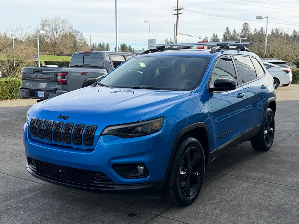 EXTERIOR AND ALTITUDE DESIGN highlights include gloss black alloy wheels, blacked-out exterior accents, front fog lights, roof rails, body-color bumpers, and the distinctive Altitude styling that gives this Cherokee a sporty, aggressive look.