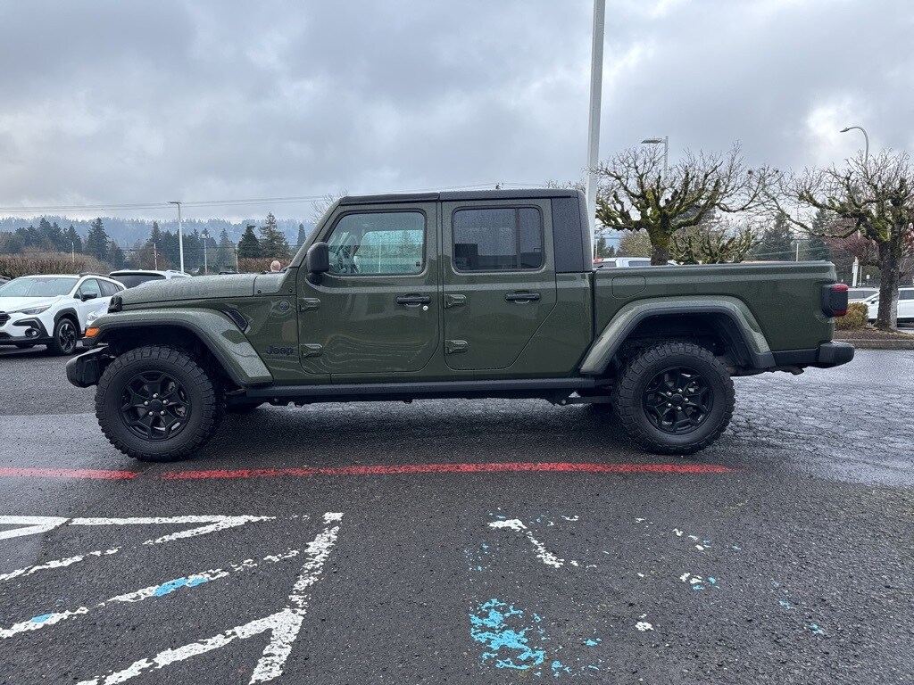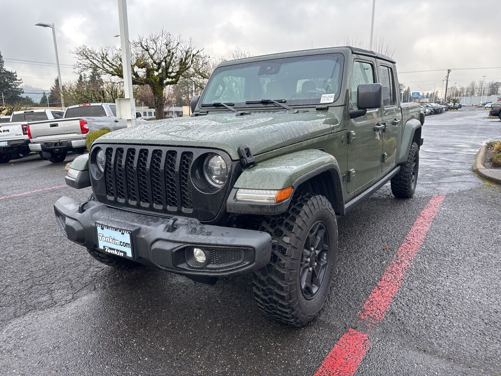 Recent Arrival! CARFAX One-Owner. Clean CARFAX. 2023 Jeep Gladiator Willys 3.6L V6 24V VVT 8-Speed Automatic 4WD 4D Crew Cab Sarge Green Clearcoat 4WD, 1-Year SiriusXM Guardian Trial, 115V Auxiliary Power Outlet, 220 Amp Alternator, 240 Amp Alternator, 4-Wheel Drive Decal, 400W Inverter, 4G LTE Wi-Fi Hot Spot, 5-Year SiriusXM Traffic Service, 5-Year SiriusXM Travel Link Service, 8.4" Radio & Premium Audio Group, 8.4" Touchscreen Display, 97 MPH Vehicle Max Speed Calibration, Adaptive Cruise Control w/Stop, Advanced Brake Assist, Advanced Safety Group, Air Conditioning w/Auto Temperature Control, Alpine Premium Audio System, Anti-Spin Differential Rear Axle, Apple CarPlay, Auto High Beam Headlamp Control, Auto-Dimming Rear-View Mirror, Automatic Headlamps, Auxiliary Switch Group, Auxiliary Switches, Black Grille, Blind Spot & Cross Path Detection, Body Color Fender Flares (2-Piece), Class IV Receiver Hitch, Cluster 7.0" TFT Color Display, Cold Weather Group, Console Bin Task Light, Convenience Group, Daytime Running Lamp System, Daytime Running Lamps LED Accents, Deep Tint Sunscreen Windows, Emergency/Assistance Call, Enhanced Adaptive Cruise Control, For More Info, Call 800-643-2112, Front 1-Touch Down Power Windows, Front Door Locks 2-Door Passive Entry, Front Heavy Duty Red Accent Shock Absorbers, Front LED Fog Lamps, Full Speed Forward Collision Warning Plus, Google Android Auto, GPS Antenna Input, GPS Navigation, HD Radio, Heated Front Seats, Heated Steering Wheel, Heavy-Duty Engine Cooling, Integrated Center Stack Radio, Integrated Voice Command w/Bluetooth, LED Headlamp & Fog Lamp Group, LED Premium Reflector Headlamps, LED Taillamps, Media Hub w/2 Charge Only USBs, Mold In Color Bumper w/Gloss Black, MOPAR All-Weather Slush Mats, Off-Road Info Pages, ParkSense Rear Park Assist System, Power Heated Mirrors, Power Tailgate Lock, Premium Wrapped Steering Wheel, Protection Sill Rails, Quick Order Package 24W Willys, Radio: Uconnect 4C Nav w/8.4" Display, Rear Heavy Duty Red Accent Shock Absorbers, Remote Keyless Entry, Safety Group, Security Alarm, SiriusXM Radio Service, SiriusXM Satellite Radio, SiriusXM Traffic Plus, SiriusXM Travel Link, Speed Sensitive Power Locks, Sun Visors w/Illuminated Vanity Mirrors, Technology Group, Trailer Hitch Zoom, Trailer Tow Package, Universal Garage Door Opener, USB Host Flip, Wheels: 17" x 7.5" Black Aluminum, Willys, Willys Hood Decal, 3.73 Rear Axle Ratio, 4-Wheel Disc Brakes, 8 Speakers, ABS brakes, Air Conditioning, AM/FM radio, Apple CarPlay/Android Auto, Black 3-Piece Hard Top, Brake assist, Cloth Low-Back Bucket Seats, Compass, Delay-off headlights, Driver door bin, Driver vanity mirror, Dual front impact airbags, Dual front side impact airbags, Electronic Stability Control, Emergency communication system, Front anti-roll bar, Front Bucket Seats, Front Center Armrest w/Storage, Front Door Locks 2-Door Passive Entry (DISC), Front fog lights, Front License Plate Bracket, Front reading lights, Integrated roll-over protection, Low tire pressure warning, MOPAR Doors Off Mirror Kit, MOPAR Hard Tri-Fold Tonneau Cover, MOPAR Hardtop Headliner, MOPAR Plastic Door Sill Guards, MOPAR Spray In Bedliner, MOPAR Sunrider For Hardtop, MOPAR Windshield Tie Down Strap, Normal Duty Suspension, Occupant sensing airbag, Outside temperature display, ParkView Rear Back-Up Camera, Passenger door bin, Passenger vanity mirror, Power steering, Radio data system, Radio: Uconnect 4 w/7" Display, Rear anti-roll bar, Rear reading lights, Speed control, Split folding rear seat, Steering wheel mounted audio controls, Tachometer, Telescoping steering wheel, Tilt steering wheel, Traction control, Trip computer, Variably intermittent wipers, Wheels: 17" x 7.5" Black Aluminum w/Gray Pad (DISC), Wheels: 17" x 7.5" Black Steel Styled, 4WD, 1-Year SiriusXM Guardian Trial, 115V Auxiliary Power Outlet, 220 Amp Alternator, 240 Amp Alternator, 4-Wheel Drive Decal, 400W Inverter, 4G LTE Wi-Fi Hot Spot, 5-Year SiriusXM Traffi