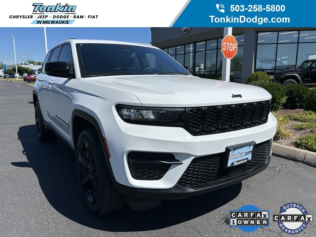 CARFAX One-Owner. Clean CARFAX. 2023 Jeep Grand Cherokee Altitude X 3.6L V6 24V VVT 8-Speed Automatic 4WD 4D Sport Utility Bright White Clearcoat 4WD, 115V Auxiliary Power Outlet, ABS brakes, Altitude Appearance Package, Black Headliner, Capri Leatherette/Suede Seats, Compass, Custom Fuel Wheels and Off-Road Tires, Delete Laredo Badge, Electronic Stability Control, Emergency communication system, Front dual zone A/C, Gloss Black Exterior Accents, Heated door mirrors, Heated Front Seats, Heated Steering Wheel, Illuminated entry, Low tire pressure warning, Molded In Color Black/Gloss Black Roof Rails, ParkView Rear Back-Up Camera, Power Liftgate, Quick Order Package 23B Altitude, Rain Sensitive Windshield Wipers, Remote keyless entry, Remote Start System, Secondary Active Grille Shutters, Selectable Tire Fill Alert, Traction control, Wheels: 18" x 8" Fully Painted Aluminum 1, Wireless Charging Pad. ***Call (503) 258-5800 to speak to a Sales Professional*** Come in to Ron Tonkin Chrysler Jeep Dodge Ram Fiat in Milwaukie to test drive today! DL0087.