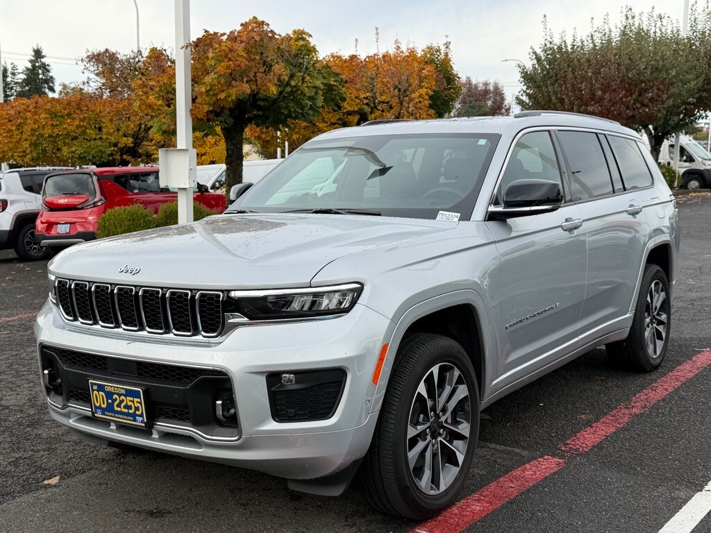 CARFAX One-Owner. 2023 Jeep Grand Cherokee L Overland 3.6L V6 24V VVT 8-Speed Automatic 4WD 4D Sport Utility Silver Zynith 4WD, Navigation System, Quick Order Package 23N, 10 Speakers, 19 Speakers High Performance Audio, 2nd Row 60/40 Bench w/Manual Tip/Slide, 2nd Row Seat Center Armrest/Cupholders, 3 Rear Seat Head Restraints, 3.45 Rear Axle Ratio, 3rd row seats: split-bench, 4-Wheel Disc Brakes, 7-Passenger Seating, 950 Watt Amplifier, ABS brakes, Active Noise Control System, Adaptive suspension, Air Conditioning, AM/FM radio: SiriusXM with 360L, Anti-whiplash front head restraints, Audio memory, Auto High-beam Headlights, Auto-dimming door mirrors, Auto-dimming Rear-View mirror, Auto-leveling suspension, Automatic temperature control, Brake assist, Bumpers: body-color, Center Rear 3-Point Seat Belt, Compass, Custom Fuel Wheels and Off-Road Tires, Delay-off headlights, Driver door bin, Driver vanity mirror, Dual front impact airbags, Dual front side impact airbags, Electronic Stability Control, Emergency communication system, Four wheel independent suspension, Front anti-roll bar, Front Bucket Seats, Front Center Armrest w/Storage, Front dual zone A/C, Front fog lights, Front License Plate Bracket, Front Passenger Interactive Display, Front reading lights, Fully automatic headlights, Garage door transmitter, Heated door mirrors, Heated front seats, Heated rear seats, Heated steering wheel, Illuminated entry, Knee airbag, Low tire pressure warning, Memory seat, Nappa Leather Seats, Normal Duty Suspension, Occupant sensing airbag, Outside temperature display, Overhead airbag, Overhead console, Panic alarm, Passenger door bin, Passenger vanity mirror, Power door mirrors, Power driver seat, Power Fold Seatbacks, Power Liftgate, Power moonroof, Power passenger seat, Power steering, Power windows, Radio data system, Radio: Uconnect 5 Nav w/10.1" Display, Rain sensing wipers, Rear air conditioning, Rear anti-roll bar, Rear reading lights, Rear window defroster, Rear window wiper, Reclining 3rd row seat, Remote keyless entry, Security system, Speed control, Speed-Sensitive Wipers, Split folding rear seat, Spoiler, Steering wheel memory, Steering wheel mounted audio controls, Tachometer, Telescoping steering wheel, Tilt steering wheel, Traction control, Trip computer, Turn signal indicator mirrors, Variably intermittent wipers, Ventilated front seats, Voltmeter, Wheels: 20" x 8.5" Machined Face Aluminum, 4WD, Navigation System, Quick Order Package 23N. ***Call (503) 258-5800 to speak to a Sales Professional*** Come in to Ron Tonkin Chrysler Jeep Dodge Ram Fiat in Milwaukie to test drive today! DL0087.