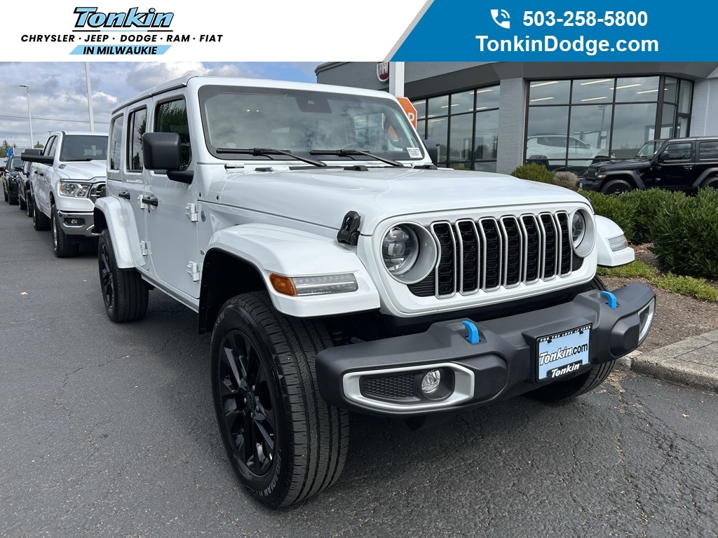 CARFAX One-Owner. Clean CARFAX. 2024 Jeep Wrangler Sahara 4xe 2.0L I4 DOHC 8-Speed Automatic 4WD 4D Sport Utility Bright White Clearcoat 4WD, Quick Order Package 29P Sahara, 12.3" Touchscreen Display, 3.73 Rear Axle Ratio, 4-Wheel Disc Brakes, 4G LTE Wi-Fi Hot Spot, 8 Speakers, ABS brakes, Air Conditioning, AM/FM radio: SiriusXM, Apple CarPlay, Apple CarPlay/Android Auto, Automatic temperature control, Body Color 3-Piece Hard Top, Brake assist, Cloth Low-Back Bucket Seats, Compass, Connectivity - US/Canada, Custom Fuel Wheels and Off-Road Tires, Delay-off headlights, Disassociated Touchscreen Display, Driver door bin, Driver vanity mirror, Dual front impact airbags, Dual front side impact airbags, Electronic Stability Control, Emergency communication system: Jeep Connect, Freedom Panel Storage Bag, Front anti-roll bar, Front Bucket Seats, Front Center Armrest w/Storage, Front dual zone A/C, Front fog lights, Front License Plate Bracket, Front reading lights, Fully automatic headlights, Google Android Auto, Heated door mirrors, Heated front seats, Heated steering wheel, Illuminated entry, Integrated Center Stack Radio, Integrated roll-over protection, Integrated Voice Command w/Bluetooth, Low tire pressure warning, No Soft Top, Occupant sensing airbag, Outside temperature display, Overhead airbag, Panic alarm, ParkView Rear Back-Up Camera, Passenger door bin, Passenger vanity mirror, Power door mirrors, Power steering, Power windows, Radio data system, Radio: Uconnect 5 w/12.3" Display, Rear anti-roll bar, Rear reading lights, Rear seat center armrest, Rear Window Defroster, Rear Window Wiper/Washer, Remote keyless entry, Security system, Speed control, Split folding rear seat, Sport Suspension, Steering wheel mounted audio controls, Tachometer, Telescoping steering wheel, Tilt steering wheel, Traction control, Trip computer, Variably intermittent wipers, Voltmeter, Wheels: 20" x 8" Painted Black Aluminum, 4WD, Quick Order Package 29P Sahara. ***Call (503) 258-5800 to speak to a Sales Professional*** Come in to Ron Tonkin Chrysler Jeep Dodge Ram Fiat in Milwaukie to test drive today! DL0087.