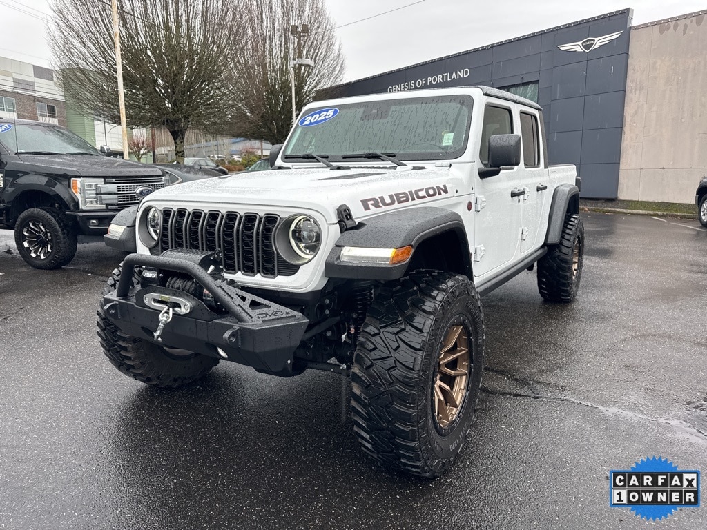 ONLY 3,856 MILES *** LIFTED *** CUSTOM BUMPER WITH WINCH *** CUSTOM WHEEL TIRES *** RUBICON *** 2025 Jeep Gladiator Rubicon 4D Crew Cab 3.6L V6 24V VVT 8-Speed Automatic 4WD Bright White Clearcoat CARFAX One-Owner. Apple CarPlay/Android Auto, Black 3-Piece Hard Top, Convenience Group, Front Bucket Seats, Heated door mirrors, Heated Front Seats, Heated Steering Wheel, Radio: Uconnect 5 w/12.3" Display, Rear Sliding Window, Rear Window Defroster, Remote Start System, SiriusXM Radio Service, SiriusXM w/360L, Universal Garage Door Opener, 12.3" Touchscreen Display, 4-Wheel Disc Brakes, 4.10 Rear Axle Ratio, 4G LTE Wi-Fi Hot Spot, ABS brakes, Alexa Built-In, Alloy wheels, Automatic temperature control, Brake assist, Compass, Delay-off headlights, Dual front impact airbags, Dual front side impact airbags, Electronic Stability Control, Emergency communication system: Jeep Connect, Front anti-roll bar, Front dual zone A/C, Front fog lights, Fully automatic headlights, Integrated roll-over protection, Low tire pressure warning, MOPAR All-Weather Slush Mats, Occupant sensing airbag, Outside temperature display, Overhead airbag, Panic alarm, Performance Suspension, Power door mirrors, Quick Order Package 24R Rubicon, Rear anti-roll bar, Remote keyless entry, Security system, Speed control, Steering wheel mounted audio controls, Telescoping steering wheel, Tilt steering wheel, Traction control, Trip computer, Variably intermittent wipers, Apple CarPlay/Android Auto, Black 3-Piece Hard Top, Convenience Group, Front Bucket Seats, Heated door mirrors, Heated Front Seats, Heated Steering Wheel, Radio: Uconnect 5 w/12.3" Display, Rear Sliding Window, Rear Window Defroster, Remote Start System, SiriusXM Radio Service, SiriusXM w/360L, Universal Garage Door Opener.