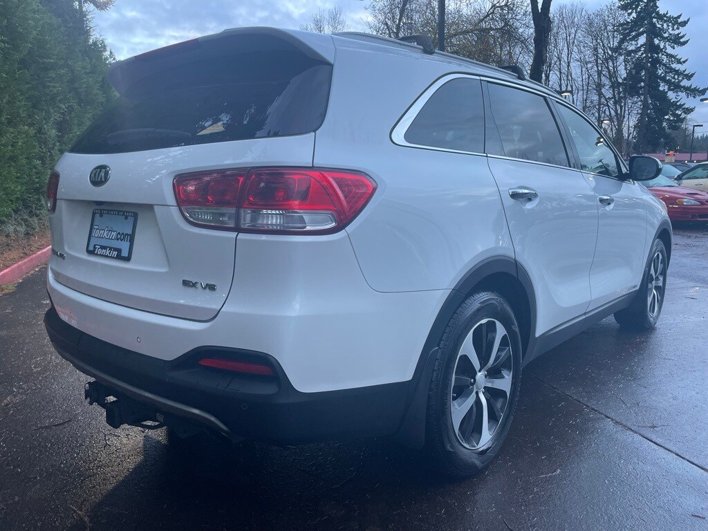 2016 Kia Sorento EX Snow White Pearl 3.3L DOHC 3.32 Axle Ratio, 3rd row seats: split-bench, 4-Wheel Disc Brakes, 6 Speakers, ABS brakes, Air Conditioning, Alloy wheels, AM/FM radio: SiriusXM, Auto-dimming Rear-View mirror, Automatic temperature control, Brake assist, Bumpers: body-color, Carpet Floor Mats (7 Seat), CD player, Delay-off headlights, Driver door bin, Driver vanity mirror, Dual front impact airbags, Dual front side impact airbags, Electronic Stability Control, Exterior Parking Camera Rear, Four wheel independent suspension, Front anti-roll bar, Front Bucket Seats, Front Center Armrest, Front dual zone A/C, Front fog lights, Front reading lights, Fully automatic headlights, Heated door mirrors, Heated Front Bucket Seats, Heated front seats, Illuminated entry, Leather Seat Trim, Low tire pressure warning, Occupant sensing airbag, Outside temperature display, Overhead airbag, Overhead console, Panic alarm, Passenger door bin, Passenger vanity mirror, Power door mirrors, Power driver seat, Power passenger seat, Power steering, Power windows, Radio: AM/FM/CD/MP3/SiriusXM, Rear air conditioning, Rear anti-roll bar, Rear Parking Sensors, Rear seat center armrest, Rear window defroster, Rear window wiper, Remote keyless entry, Roof rack: rails only, Security system, Speed control, Speed-sensing steering, Split folding rear seat, Spoiler, Steering wheel mounted audio controls, Tachometer, Telescoping steering wheel, Tilt steering wheel, Traction control, Trip computer, Turn signal indicator mirrors, Variably intermittent wipers, Wheels: 18" x 7.5 Alloy.