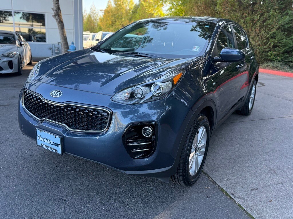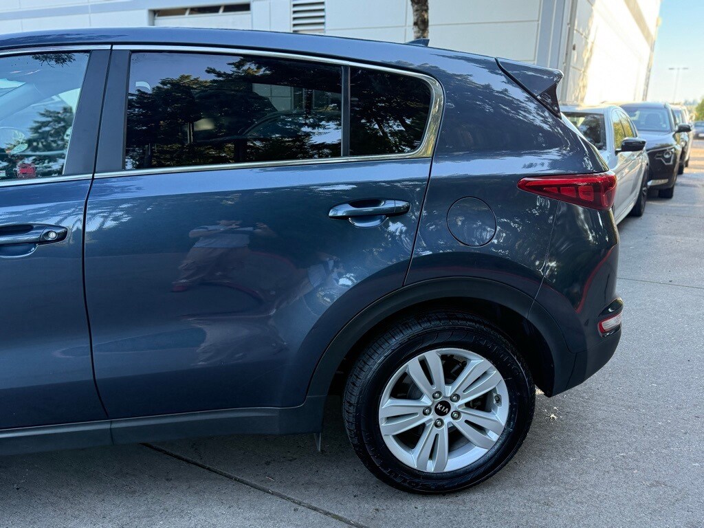 2017 Kia Sportage LX Blue Metallic 2.4L I4 DGI DOHC 16V 17" Alloy Wheels, 3.195 Axle Ratio, 4-Wheel Disc Brakes, 6 Speakers, ABS brakes, Air Conditioning, Alloy wheels, AM/FM radio: SiriusXM, Brake assist, Bumpers: body-color, Carpet Floor Mats, CD player, Cloth Seat Trim, Delay-off headlights, Driver door bin, Driver vanity mirror, Dual front impact airbags, Dual front side impact airbags, Electronic Stability Control, Exterior Parking Camera Rear, Four wheel independent suspension, Front anti-roll bar, Front Bucket Seats, Front Center Armrest, Front reading lights, Fully automatic headlights, Illuminated entry, Low tire pressure warning, Occupant sensing airbag, Outside temperature display, Overhead airbag, Overhead console, Panic alarm, Passenger door bin, Passenger vanity mirror, Power door mirrors, Power steering, Power windows, Radio: AM/FM/CD/MP3/SiriusXM, Rear anti-roll bar, Rear seat center armrest, Rear window defroster, Rear window wiper, Remote keyless entry, Security system, Speed control, Speed-sensing steering, Split folding rear seat, Spoiler, Steering wheel mounted audio controls, Tachometer, Telescoping steering wheel, Tilt steering wheel, Traction control, Trip computer, Variably intermittent wipers.