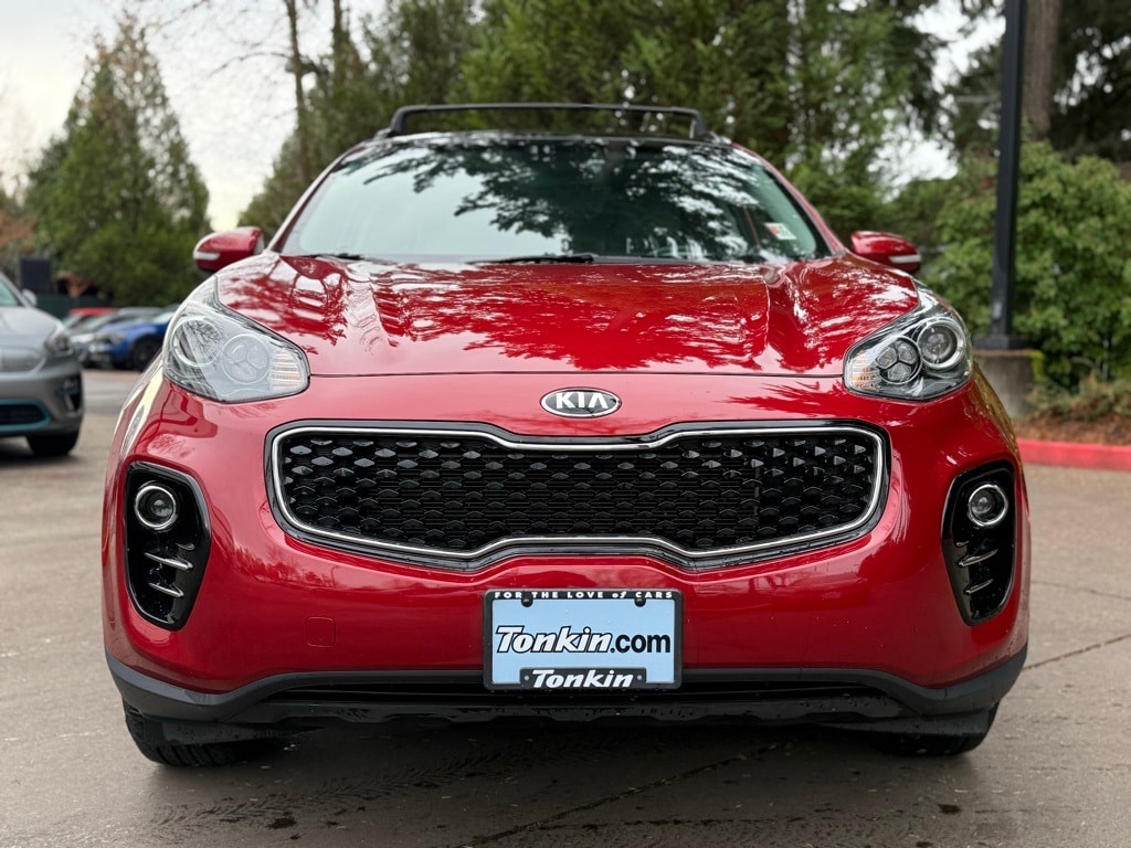 2018 Kia Sportage EX Hyper Red 2.4L I4 DGI DOHC 16V 18" Alloy Wheels, 3.20 Axle Ratio, 4-Wheel Disc Brakes, 6 Speakers, ABS brakes, Air Conditioning, Alloy wheels, AM/FM radio: SiriusXM, Apple CarPlay & Android Auto, Auto-Dimming Rear View Mirror w/HomeLink, Automatic temperature control, Brake assist, Bumpers: body-color, Cargo Net, Cross Bars, Delay-off headlights, Driver door bin, Driver vanity mirror, Dual front impact airbags, Dual front side impact airbags, Electronic Stability Control, Emergency communication system: 911 Connect, EX Premium Package, Exterior Parking Camera Rear, Four wheel independent suspension, Front anti-roll bar, Front Bucket Seats, Front Center Armrest, Front dual zone A/C, Front fog lights, Front reading lights, Fully automatic headlights, Heated door mirrors, Heated Front Bucket Seats, Heated front seats, Heated Steering Wheel, Illuminated entry, Leather Seat Trim, Leather Shift Knob, LED Interior Lighting, Low tire pressure warning, Occupant sensing airbag, Outside temperature display, Overhead airbag, Overhead console, Panic alarm, Panoramic Sunroof, Passenger door bin, Passenger vanity mirror, Power door mirrors, Power driver seat, Power steering, Power windows, Radio: AM/FM/MP3/SiriusXM, Radio: AM/FM/SiriusXM, Rear anti-roll bar, Rear seat center armrest, Rear window defroster, Rear window wiper, Remote keyless entry, Roof rack: rails only, Security system, Speed control, Speed-sensing steering, Split folding rear seat, Spoiler, Steering wheel mounted audio controls, Tachometer, Telescoping steering wheel, Tilt steering wheel, Traction control, Trip computer, Turn signal indicator mirrors, Variably intermittent wipers.