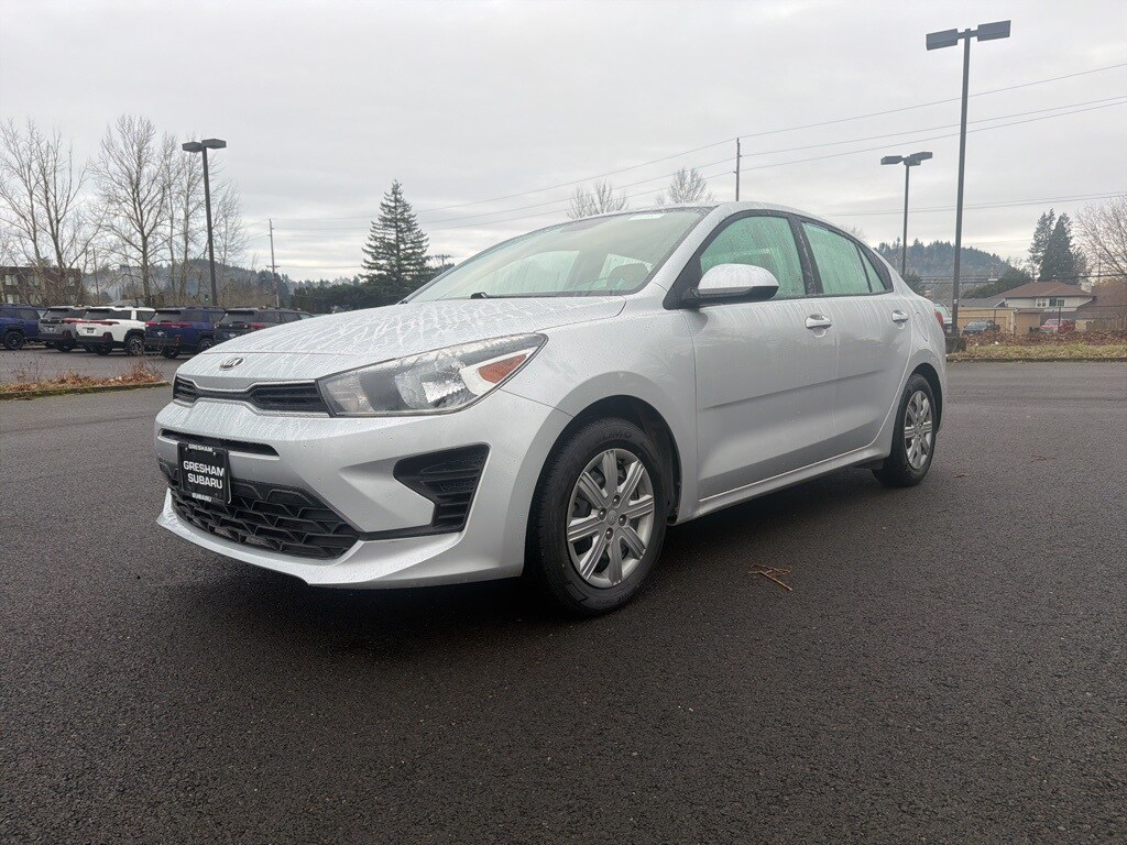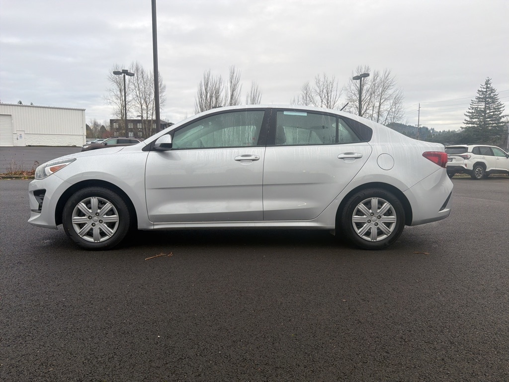 Black Cloth, 6 Speakers, ABS brakes, Air Conditioning, AM/FM radio, Apple CarPlay & Android Auto, Brake assist, Bumpers: body-color, Driver door bin, Driver vanity mirror, Dual front impact airbags, Dual front side impact airbags, Electronic Stability Control, Front anti-roll bar, Front Bucket Seats, Front reading lights, Front wheel independent suspension, Fully automatic headlights, Heated door mirrors, Illuminated entry, Low tire pressure warning, Occupant sensing airbag, Outside temperature display, Overhead airbag, Overhead console, Panic alarm, Passenger door bin, Passenger vanity mirror, Power door mirrors, Power steering, Power windows, Radio: AM/FM/MP3 Audio System, Rear window defroster, Speed-sensing steering, Steering wheel mounted audio controls, Tachometer, Tilt steering wheel, Traction control, Trip computer, Variably intermittent wipers, Wheels: 15" x 5.5J Steel w/Full Covers, Woven Cloth Seat Trim, Black Cloth. 2021 Kia Rio LX 4D Sedan 1.6L 4-Cylinder CVT FWD Silky Silver Clean CARFAX.