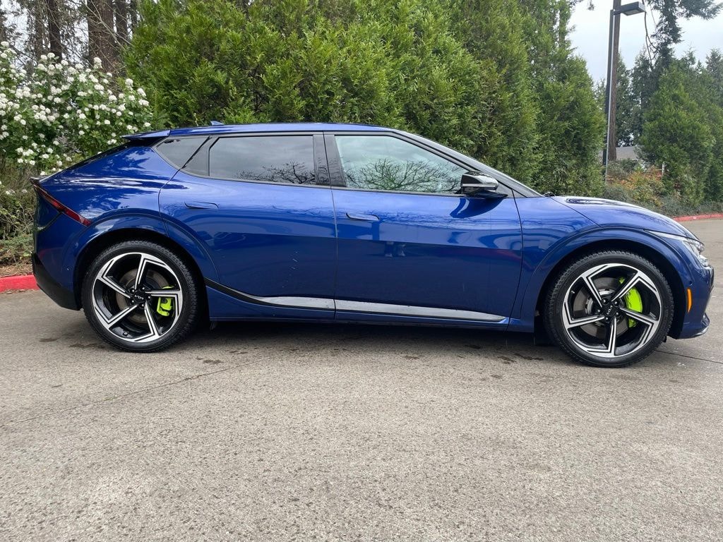 2023 Kia EV6 GT Yacht Blue Electric Motor Backup Camera, Bluetooth, Cruise Control, Heated Seats, Leather Seats, Premium Audio, Premium Wheels, Steering Wheel Controls, One Owner, Local Trade, Clean CarFax, AWD/4WD, Sunroof/Moonroof, 14 Speakers, 4-Wheel Disc Brakes, ABS brakes, Adaptive suspension, Air Conditioning, Alloy wheels, AM/FM radio: SiriusXM, Apple CarPlay & Android Auto, Auto High-beam Headlights, Auto-dimming Rear-View mirror, Automatic temperature control, Axle Ratio: 10.650, Brake assist, Bumpers: body-color, Cargo Mat w/Luggage Board, Delay-off headlights, Driver door bin, Driver vanity mirror, Dual front impact airbags, Dual front side impact airbags, Electronic Stability Control, Emergency communication system, Four wheel independent suspension, Front anti-roll bar, Front Bucket Seats, Front Center Armrest, Front dual zone A/C, Front reading lights, Fully automatic headlights, Garage door transmitter: HomeLink, GT Carpeted Floor Mats, Heads-Up Display, Heated door mirrors, Heated front seats, Heated rear seats, Heated Sport Front Bucket Seats, Heated steering wheel, Illuminated entry, Knee airbag, Low tire pressure warning, Navigation system: AVN 5.0 Navigation System, Occupant sensing airbag, Outside temperature display, Overhead airbag, Overhead console, Panic alarm, Passenger door bin, Passenger vanity mirror, Power door mirrors, Power Liftgate, Power moonroof, Power steering, Power windows, Radio: Meridian Premium Audio System, Rain sensing wipers, Rear anti-roll bar, Rear seat center armrest, Rear window defroster, Remote keyless entry, Security system, Speed control, Speed-sensing steering, Split folding rear seat, Spoiler, Sport steering wheel, Steering wheel mounted audio controls, Suede Seat Trim, Telescoping steering wheel, Tilt steering wheel, Traction control, Trip computer, Turn signal indicator mirrors, Variably intermittent wipers, Wheels: 8.5J x 21" Black Painted Alloy.