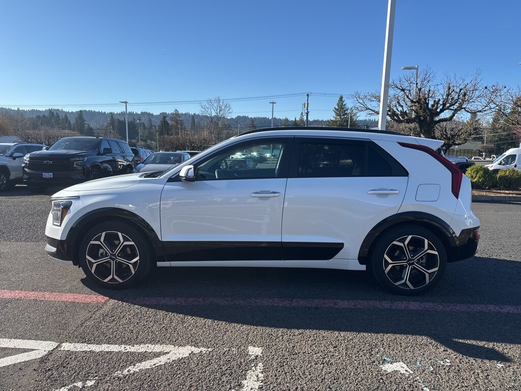 Recent Arrival! CARFAX One-Owner. Clean CARFAX. 2023 Kia Niro SX Touring 1.6L I4 DGI Hybrid DOHC 16V LEV3-SULEV30 6-Speed Automatic FWD 4D Sport Utility Snow White Pearl 4-Wheel Disc Brakes, 4.438 Axle Ratio, 8 Speakers, ABS brakes, Air Conditioning, AM/FM radio: SiriusXM, Apple CarPlay & Android Auto, Auto High-beam Headlights, Auto-dimming Rear-View mirror, Automatic temperature control, Brake assist, Bumpers: body-color, Carpet Floor Mats, Custom Fuel Wheels and Off-Road Tires, Delay-off headlights, Driver door bin, Driver vanity mirror, Dual front impact airbags, Dual front side impact airbags, Electronic Stability Control, Emergency communication system: Kia Connect (includes 1 year free trial), Exterior Parking Camera Rear, Four wheel independent suspension, Front anti-roll bar, Front Bucket Seats, Front Center Armrest, Front dual zone A/C, Front fog lights, Front reading lights, Fully automatic headlights, harman/kardon® Speakers, Heated & Ventilated Front Bucket Seats, Heated door mirrors, Heated front seats, Heated steering wheel, Illuminated entry, Knee airbag, Leather Shift Knob, Low tire pressure warning, Memory seat, Navigation System, Occupant sensing airbag, Outside temperature display, Overhead airbag, Overhead console, Panic alarm, Passenger door bin, Passenger vanity mirror, Perforated Vegan Leather-Trimmed Seats, Power door mirrors, Power driver seat, Power Liftgate, Power moonroof, Power steering, Power windows, Radio: AM/FM/HD/SiriusXM, Rain sensing wipers, Rear anti-roll bar, Rear seat center armrest, Rear window defroster, Rear window wiper, Remote keyless entry, Security system, Smart Key w/ Push Button and Remote Start, Speed control, Speed-sensing steering, Split folding rear seat, Spoiler, Steering wheel mounted audio controls, Telescoping steering wheel, Tilt steering wheel, Traction control, Trip computer, Turn signal indicator mirrors, Variably intermittent wipers, Ventilated front seats, Wheels: 18" Alloy w/Machined Finish. ***Call (503) 258-5800 to speak to a Sales Professional*** Come in to Ron Tonkin Chrysler Jeep Dodge Ram Fiat in Milwaukie to test drive today! DL0087.