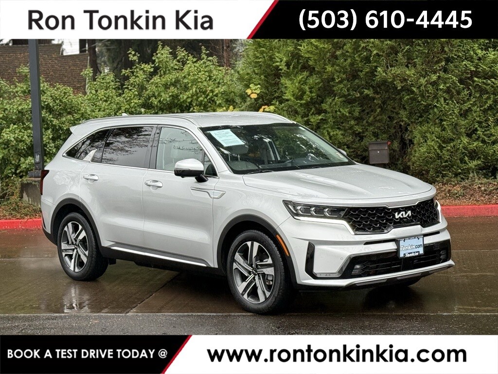 2023 Kia Sorento Hybrid SX Prestige Silky Silver 1.6L I4 DGI Hybrid Turbocharged DOHC 16V LEV3-ULEV70 12 Speakers, 3rd row seats: split-bench, 4-Wheel Disc Brakes, ABS brakes, Air Conditioning, Alloy wheels, AM/FM radio: SiriusXM, Apple CarPlay & Android Auto, Auto High-beam Headlights, Auto-dimming Rear-View mirror, Automatic temperature control, Axle Ratio: 3.510, Brake assist, Bumpers: body-color, Cargo Cover, Carpet Floor Mats, Delay-off headlights, Driver door bin, Driver vanity mirror, Dual front impact airbags, Dual front side impact airbags, Electronic Stability Control, Emergency communication system, Folding Cargo Tray, Four wheel independent suspension, Front anti-roll bar, Front Bucket Seats, Front Center Armrest, Front dual zone A/C, Front fog lights, Front reading lights, Fully automatic headlights, Garage door transmitter: HomeLink, Heated & Ventilated Front Bucket Seats, Heated door mirrors, Heated front seats, Heated rear seats, Heated steering wheel, Illuminated entry, Knee airbag, Leather steering wheel, Low tire pressure warning, Memory seat, Navigation System, Occupant sensing airbag, Outside temperature display, Overhead airbag, Overhead console, Panic alarm, Passenger door bin, Passenger vanity mirror, Perforated Genuine Leather Seat Trim, Power door mirrors, Power driver seat, Power Liftgate, Power passenger seat, Power steering, Power windows, Radio data system, Radio: AM/FM/HD Radio/SiriusXM Audio System, Rain sensing wipers, Rear air conditioning, Rear anti-roll bar, Rear reading lights, Rear window defroster, Rear window wiper, Remote keyless entry, Roof rack: rails only, Security system, Smart Key w/ Push Button and Remote Start, Speed control, Speed-sensing steering, Split folding rear seat, Spoiler, Steering wheel mounted audio controls, Tachometer, Telescoping steering wheel, Tilt steering wheel, Traction control, Trip computer, Turn signal indicator mirrors, Variably intermittent wipers, Ventilated front seats, Wheels: 19" Machine-Finished Alloy.