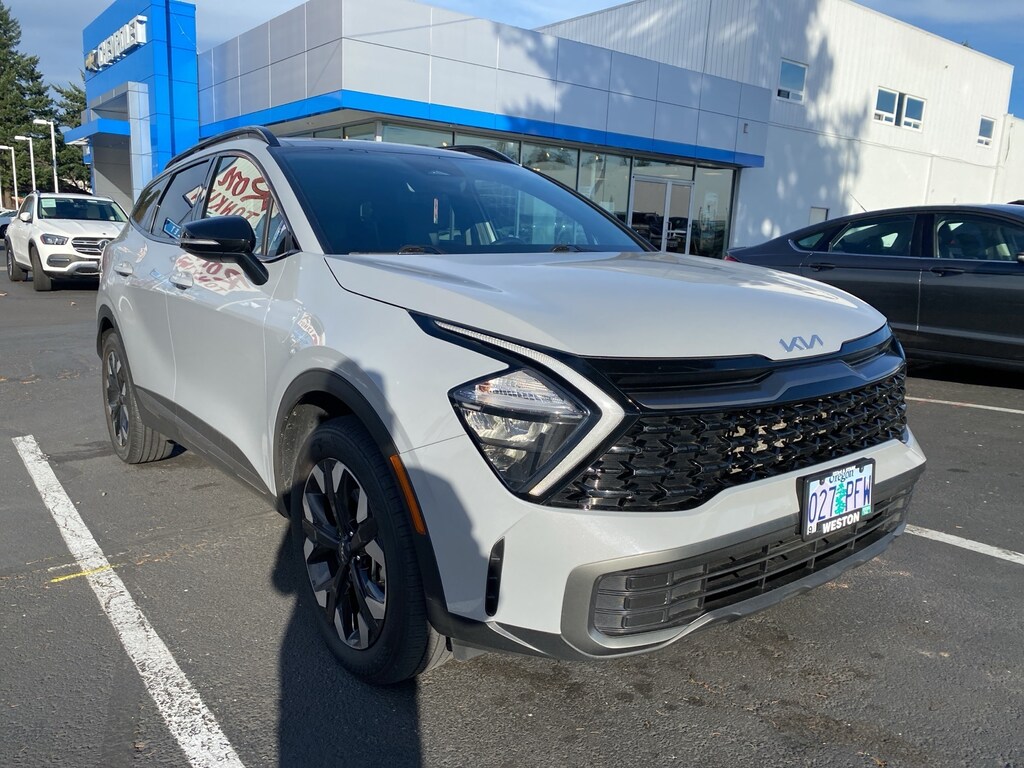 Just Traded! Rugged & Loaded: 2023 Kia Sportage X-Line AWD Get ready for adventure with this nearly new 2023 Kia Sportage X-Line AWD trade! With its distinctive, rugged styling and comprehensive feature set, the X-Line trim perfectly blends off-road looks with premium daily driving comfort.This vehicle comes equipped with the sought-after X-Line Premium Package, adding some fantastic luxury and convenience features.X-Line & Premium Package HighlightsStandard All-Wheel Drive (AWD): Features a center locking differential and raised suspension for improved traction and 8.3 inches of ground clearance for light off-road capability.1Rugged X-Line Styling: Distinctive exterior elements, including 19" Gloss Black Alloy Wheels, unique body styling, and High Utility Roof Rails.2Tech & Comfort:Panoramic Sunroof with Power Sunshade (part of the Premium Package).3Smart Power Liftgate (part of the Premium Package) for hands-free cargo access.4Navigation System and Apple CarPlay & Android Auto integration.5harman/kardon Audio System and LED Interior Lighting.6Heated Front Bucket Seats and Dual-Zone Automatic Climate Control.7Fuel Economy: A very respectable 23/28 City/Highway MPG for an AWD compact SUV.8Detailed SpecificationsFeatureDetailEngine2.5L 4-Cylinder (187 hp, 178 lb-ft of torque)DrivetrainActive All-Wheel Drive (AWD)Interior TrimPremium Leatherette Seat Trim, Leather Shift Knob, Leather Steering WheelSafetyABS, Electronic Stability Control, Dual Front/Side/Overhead/Knee Airbags, Emergency Communication SystemConvenienceSmart Key w/ Remote Keyless Entry, Power Driver and Passenger Seats, Rain-Sensing WipersThis 2023 Sportage X-Line offers a tremendous combination of modern design, technology, and all-weather capability!