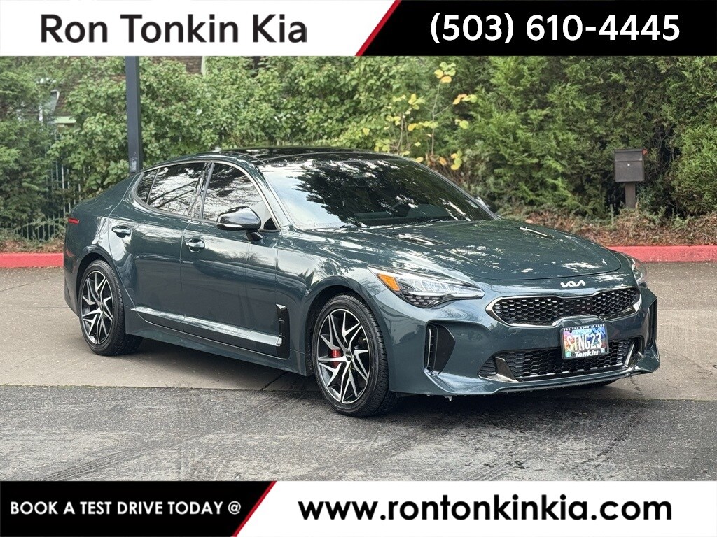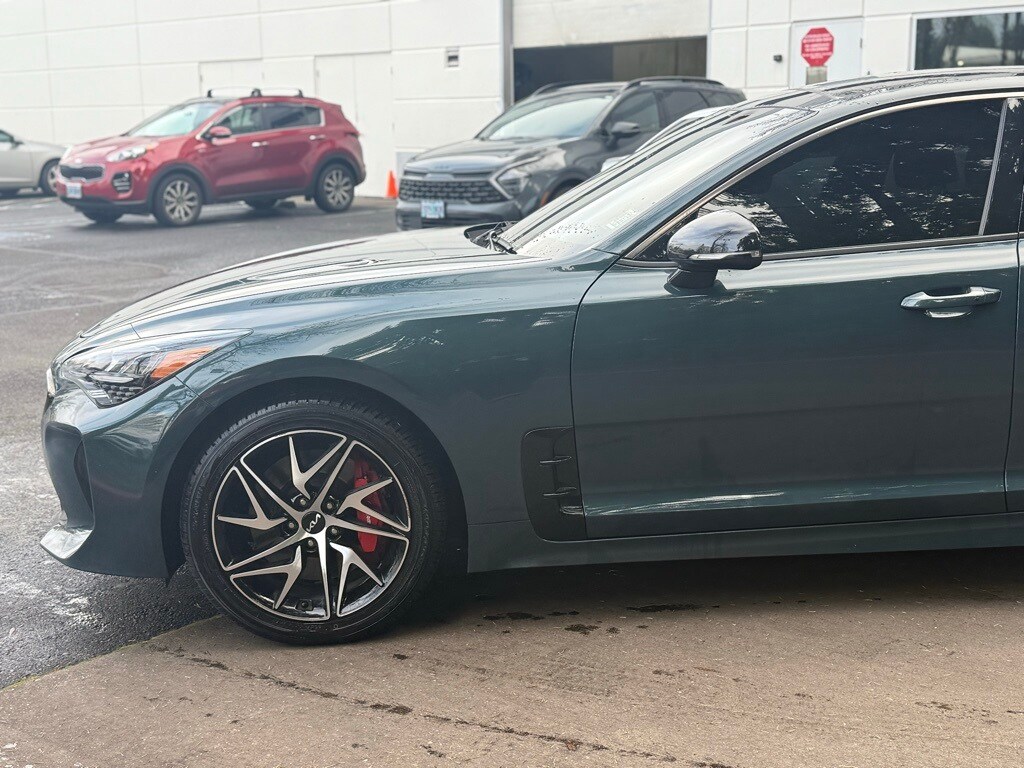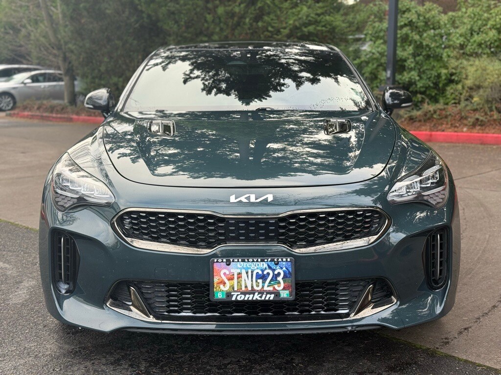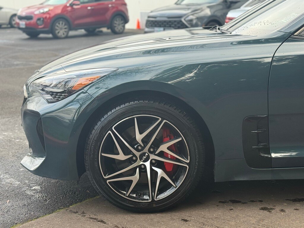 2023 Kia Stinger GT-Line Ascot Green I4 4-Wheel Disc Brakes, 8-Way Power Adjustable Passenger Seat, 9 Speakers, ABS brakes, Air Conditioning, Alloy wheels, AM/FM radio: SiriusXM, Anti-whiplash front head restraints, Apple CarPlay & Android Auto, Auto High-beam Headlights, Auto-dimming Rear-View mirror, Automatic temperature control, Black Exhaust Tips, Black Exterior Mirrors, Black Fender Garnish, Brake assist, Brembo Brakes, Bumpers: body-color, Carbon Fiber Interior Trim, Carpeted Floor Mat, Delay-off headlights, Driver door bin, Driver vanity mirror, Dual front impact airbags, Dual front side impact airbags, Electronic Stability Control, Emergency communication system, Exterior Parking Camera Rear, Four wheel independent suspension, Front anti-roll bar, Front Bucket Seats, Front Center Armrest, Front dual zone A/C, Front reading lights, Fully automatic headlights, GT-Line Apex Special Edition Package, Heated door mirrors, Heated Front Bucket Seats, Heated front seats, Heated steering wheel, Illuminated entry, Knee airbag, Leather Seat Trim, Low tire pressure warning, Navigation System, Occupant sensing airbag, Outside temperature display, Overhead airbag, Overhead console, Panic alarm, Passenger door bin, Passenger vanity mirror, Power door mirrors, Power driver seat, Power steering, Power Tilt & Slide Sunroof w/One-Touch, Power windows, Radio: AM/FM/MP3/HD Audio System, Radio: harmon/kardon AM/FM/MP3/HD Audio System, Rain sensing wipers, Rear air conditioning, Rear anti-roll bar, Rear seat center armrest, Rear window defroster, Remote keyless entry, Security system, Smart Key w/ Push Button and Remote Start, Speed control, Speed-Sensitive Wipers, Split folding rear seat, Sport steering wheel, Steering wheel mounted audio controls, Sun & Sound Package, Tachometer, Telescoping steering wheel, Tilt steering wheel, Traction control, Trip computer, Turn signal indicator mirrors, Variably intermittent wipers, Wheels: 8.0J x 18 Vertex Alloy.
