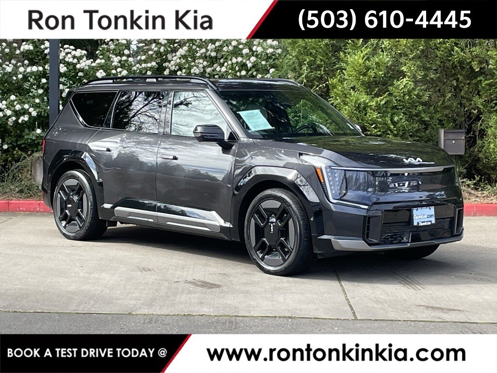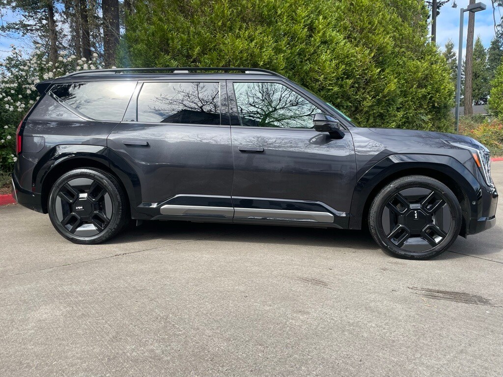 2024 Kia EV9 GT-Line Panthera Metal Electric Motor 13.16 Axle Ratio, 14 Speakers, 3rd row seats: split-bench, 4-Wheel Disc Brakes, ABS brakes, Air Conditioning, Alloy wheels, AM/FM radio: SiriusXM, Apple CarPlay & Android Auto, Auto High-beam Headlights, Auto-dimming door mirrors, Auto-dimming Rear-View mirror, Automatic temperature control, Brake assist, Bumpers: body-color, Cargo Cover, Carpeted Floor Mat, 6-Passenger, Delay-off headlights, Digital Key Card, Driver door bin, Driver vanity mirror, Dual front impact airbags, Dual front side impact airbags, Electronic Stability Control, Emergency communication system: 911 Connect, Exterior Parking Camera Rear, Four wheel independent suspension, Front anti-roll bar, Front Bucket Seats, Front Center Armrest w/Storage, Front dual zone A/C, Front reading lights, Fully automatic headlights, Garage door transmitter: HomeLink, Heads-Up Display, Heated & Ventilated Front Bucket Seats, Heated door mirrors, Heated front seats, Heated rear seats, Heated steering wheel, Illuminated entry, Knee airbag, Low tire pressure warning, Memory seat, Navigation System, Occupant sensing airbag, Outside temperature display, Overhead airbag, Overhead console, Panic alarm, Passenger door bin, Passenger vanity mirror, Power door mirrors, Power driver seat, Power Liftgate, Power moonroof, Power passenger seat, Power steering, Power windows, Radio data system, Radio: AM/FM/MP3/HD Radio/SiriusXM Meridian Audio, Rain sensing wipers, Rear air conditioning, Rear anti-roll bar, Rear reading lights, Rear seat center armrest, Rear window defroster, Rear window wiper, Reclining 3rd row seat, Remote keyless entry, Security system, Speed control, Speed-sensing steering, Split folding rear seat, Spoiler, Steering wheel memory, Steering wheel mounted audio controls, SynTex Leather Seats, Telescoping steering wheel, Tilt steering wheel, Traction control, Trip computer, Turn signal indicator mirrors, Variably intermittent wipers, Ventilated front seats, Ventilated rear seats, Wheels: 21" Black & Dark Silver Finish Alloy.