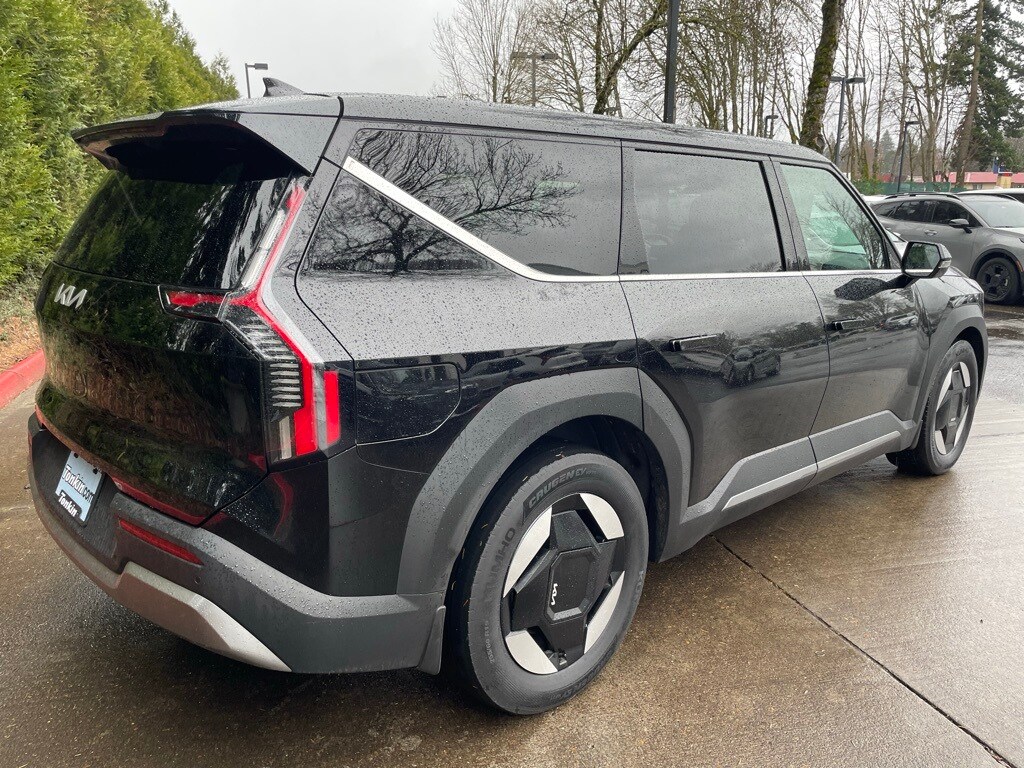 2024 Kia EV9 Light Long Range Aurora Black Pearl Electric Motor 13.16 Axle Ratio, 3rd row seats: split-bench, 4-Wheel Disc Brakes, 8 Speakers, ABS brakes, Air Conditioning, Alloy wheels, AM/FM radio: SiriusXM, Apple CarPlay & Android Auto, Auto High-beam Headlights, Auto-dimming Rear-View mirror, Automatic temperature control, Brake assist, Bumpers: body-color, Delay-off headlights, Digital Key Card, Driver door bin, Driver vanity mirror, Dual front impact airbags, Dual front side impact airbags, Electronic Stability Control, Emergency communication system: 911 Connect, Exterior Parking Camera Rear, Four wheel independent suspension, Front anti-roll bar, Front Bucket Seats, Front Center Armrest w/Storage, Front dual zone A/C, Front reading lights, Fully automatic headlights, Garage door transmitter: HomeLink, Heated & Ventilated Front Bucket Seats, Heated door mirrors, Heated front seats, Illuminated entry, Knee airbag, Low tire pressure warning, Navigation System, Occupant sensing airbag, Outside temperature display, Overhead airbag, Overhead console, Panic alarm, Passenger door bin, Passenger vanity mirror, Power door mirrors, Power driver seat, Power Liftgate, Power passenger seat, Power steering, Power windows, Radio data system, Radio: AM/FM/MP3/HD Radio/SiriusXM, Rain sensing wipers, Rear air conditioning, Rear anti-roll bar, Rear reading lights, Rear seat center armrest, Rear window defroster, Rear window wiper, Reclining 3rd row seat, Remote keyless entry, Security system, Speed control, Speed-sensing steering, Split folding rear seat, Spoiler, Steering wheel mounted audio controls, SynTex Leather Seats, Telescoping steering wheel, Tilt steering wheel, Traction control, Trip computer, Turn signal indicator mirrors, Variably intermittent wipers, Ventilated front seats, Wheels: 19" Black & Machined Finished Alloy.