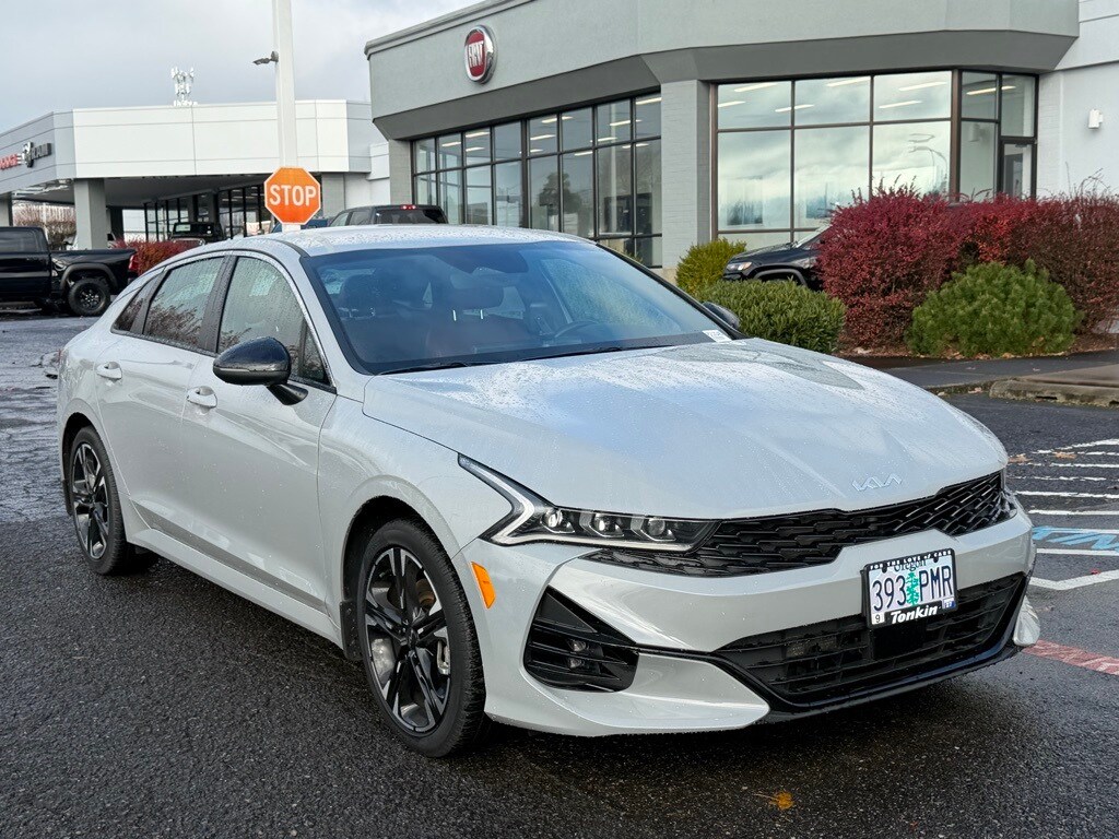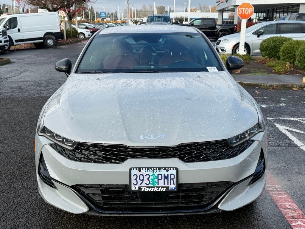 CARFAX One-Owner. 2024 Kia K5 GT-Line 1.6L I4 DGI Turbocharged DOHC 16V LEV3-ULEV70 180hp 8-Speed Automatic AWD 4D Sedan Wolf Gray AWD, Forward Collision Avoidance-Assist, GT-Line Premium Package, GT-Line Red Interior Package, Highway Driving Assist, LED Projection Headlamps, Navigation System, Smart Cruise Control w/Stop & Go, 4-Wheel Disc Brakes, 6 Speakers, ABS brakes, Air Conditioning, AM/FM radio: SiriusXM, Apple CarPlay & Android Auto, Auto High-beam Headlights, Automatic temperature control, Brake assist, Bumpers: body-color, Cargo Net, Carpeted Floor Mats, Cloth/SynTex Seat Trim, Custom Fuel Wheels and Off-Road Tires, Delay-off headlights, Driver door bin, Driver vanity mirror, Dual front impact airbags, Dual front side impact airbags, Electronic Stability Control, Four wheel independent suspension, Front anti-roll bar, Front Bucket Seats, Front Center Armrest, Front dual zone A/C, Front fog lights, Front reading lights, Fully automatic headlights, Heated door mirrors, Heated Front Bucket Seats, Heated front seats, Heated steering wheel, Illuminated entry, Knee airbag, Leather steering wheel, Low tire pressure warning, Mud Guards, Occupant sensing airbag, Outside temperature display, Overhead airbag, Overhead console, Panic alarm, Passenger door bin, Passenger vanity mirror, Power door mirrors, Power driver seat, Power steering, Power windows, Radio data system, Radio: AM/FM/MP3 Audio System, Rear anti-roll bar, Rear seat center armrest, Rear side impact airbag, Rear window defroster, Remote keyless entry, Security system, Speed control, Speed-sensing steering, Split folding rear seat, Spoiler, Sport steering wheel, Steering wheel mounted audio controls, Tachometer, Telescoping steering wheel, Tilt steering wheel, Traction control, Trip computer, Turn signal indicator mirrors, Variably intermittent wipers, Wheels: 18" Gloss Black Machined Finish Alloy, AWD, Forward Collision Avoidance-Assist, GT-Line Premium Package, GT-Line Red Interior Package, Highway Driving Assist, LED Projection Headlamps, Navigation System, Smart Cruise Control w/Stop & Go. ***Call (503) 258-5800 to speak to a Sales Professional*** Come in to Ron Tonkin Chrysler Jeep Dodge Ram Fiat in Milwaukie to test drive today! DL0087.
