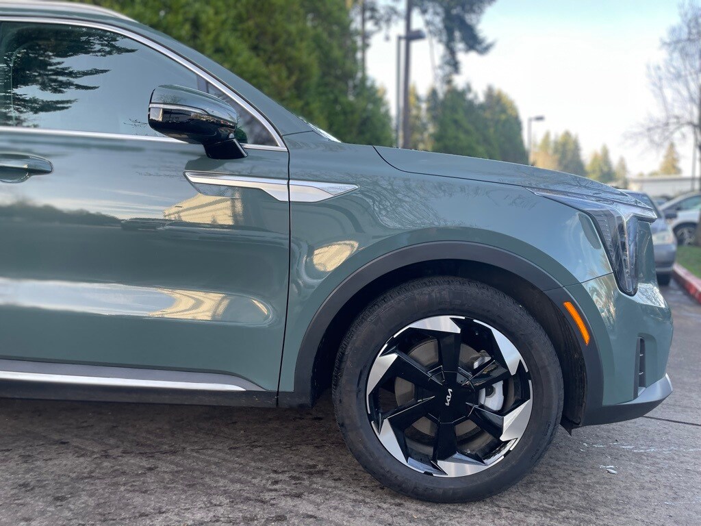 2025 Kia Sorento Hybrid EX Cityscape Green 1.6L Turbo GDI 4-Cylinder 3rd row seats: split-bench, 4-Wheel Disc Brakes, 6 Speakers, ABS brakes, Air Conditioning, Alloy wheels, AM/FM radio: SiriusXM, Apple CarPlay & Android Auto, Auto High-beam Headlights, Automatic temperature control, Brake assist, Bumpers: body-color, Cargo Cover, Carpeted Floor Mats, Delay-off headlights, Driver door bin, Driver vanity mirror, Dual front impact airbags, Dual front side impact airbags, Electronic Stability Control, Emergency communication system: 911 Connect, Exterior Parking Camera Rear, Four wheel independent suspension, Front anti-roll bar, Front Bucket Seats, Front Center Armrest, Front dual zone A/C, Front fog lights, Front reading lights, Fully automatic headlights, Heated door mirrors, Heated Front Bucket Seats, Heated front seats, Illuminated entry, Knee airbag, Leather steering wheel, Low tire pressure warning, Navigation System, Occupant sensing airbag, Outside temperature display, Overhead airbag, Overhead console, Panic alarm, Passenger door bin, Passenger vanity mirror, Power door mirrors, Power driver seat, Power Liftgate, Power passenger seat, Power steering, Power windows, Radio data system, Radio: AM/FM/SiriusXM Audio System, Rear air conditioning, Rear anti-roll bar, Rear reading lights, Rear window defroster, Rear window wiper, Remote keyless entry, Security system, Speed control, Speed-sensing steering, Split folding rear seat, Spoiler, Steering wheel mounted audio controls, SynTex Artificial Leather Seat Trim, Tachometer, Telescoping steering wheel, Tilt steering wheel, Traction control, Trip computer, Turn signal indicator mirrors, Variably intermittent wipers, Wheels: 19" Machine-Finished Aero Alloy.