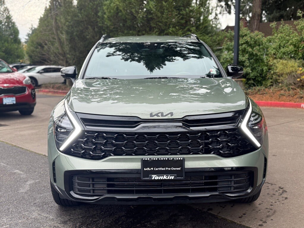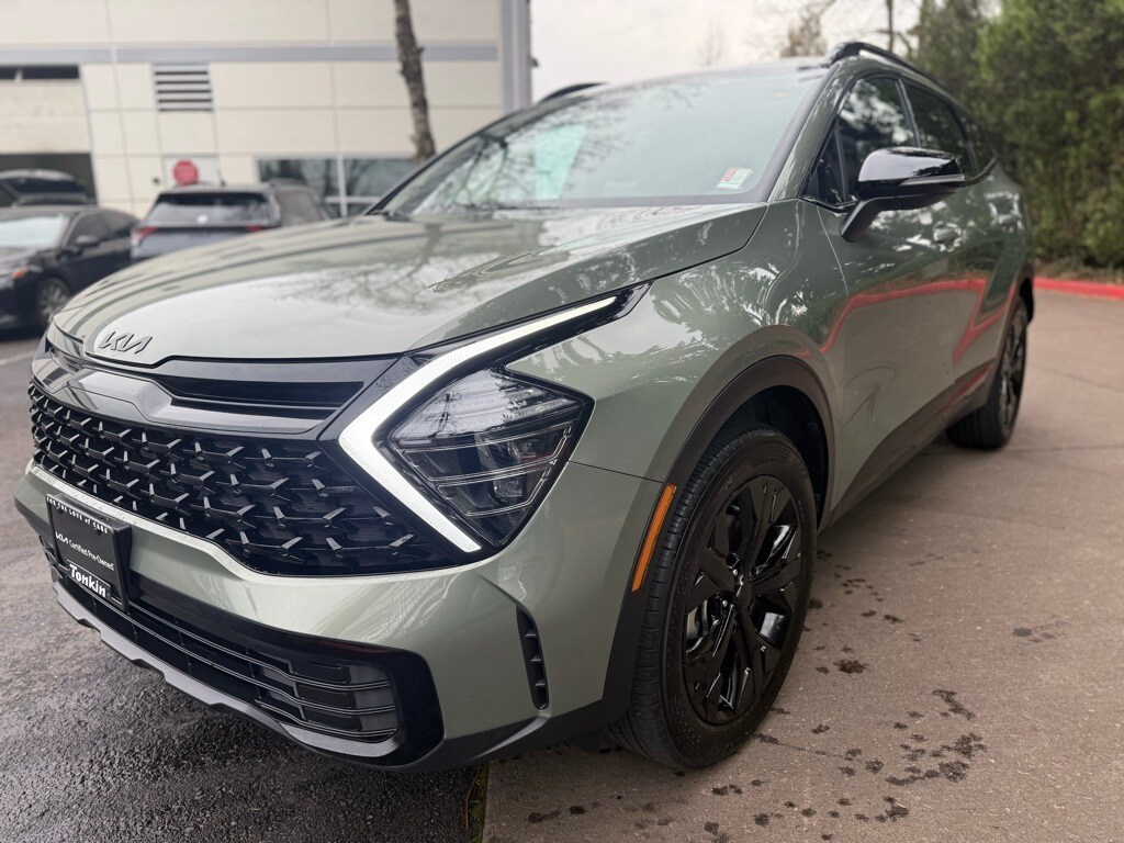 2025 Kia Sportage X-Line Jungle Green I4 4-Wheel Disc Brakes, 6 Speakers, ABS brakes, Air Conditioning, Alloy wheels, AM/FM radio: SiriusXM, Apple CarPlay & Android Auto, Auto High-beam Headlights, Automatic temperature control, Brake assist, Bumpers: body-color, Cargo Cover, Carpet Floor Mats X-Line, Compass, Delay-off headlights, Driver door bin, Driver vanity mirror, Dual front impact airbags, Dual front side impact airbags, Electronic Stability Control, Emergency communication system, Four wheel independent suspension, Front anti-roll bar, Front Bucket Seats, Front Center Armrest, Front dual zone A/C, Fully automatic headlights, Heated door mirrors, Heated Front Bucket Seats, Heated front seats, Illuminated entry, Leather steering wheel, Low tire pressure warning, Navigation System, Occupant sensing airbag, Outside temperature display, Overhead airbag, Overhead console, Panic alarm, Passenger door bin, Passenger vanity mirror, Power door mirrors, Power driver seat, Power steering, Power windows, Premium Leatherette Seat Trim, Radio: AM/FM/HD Audio System, Rain sensing wipers, Rear anti-roll bar, Rear seat center armrest, Rear side impact airbag, Rear window defroster, Rear window wiper, Remote keyless entry, Security system, Speed control, Speed-sensing steering, Split folding rear seat, Spoiler, Steering wheel mounted audio controls, Tachometer, Telescoping steering wheel, Tilt steering wheel, Traction control, Trip computer, Turn signal indicator mirrors, Variably intermittent wipers, Wheels: 19" x 7.5J Gloss Black Alloy.