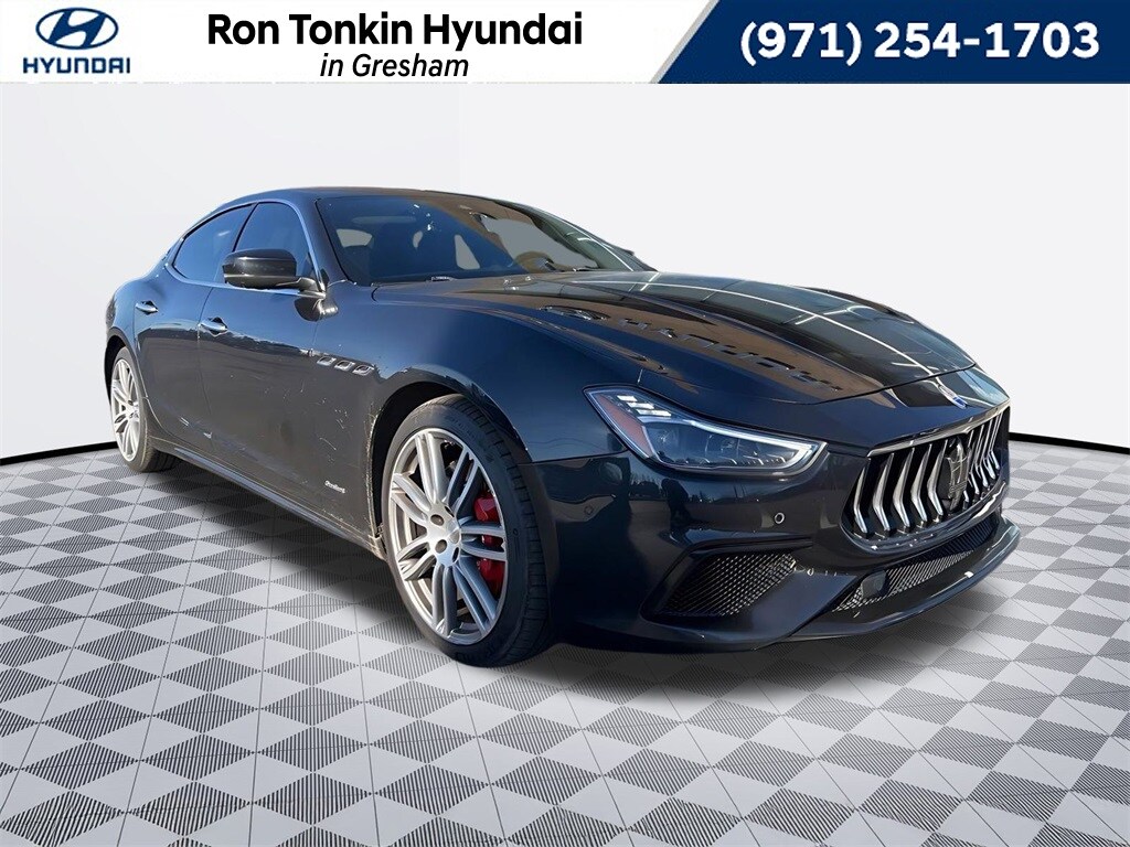New Price! 2018 Maserati Ghibli S Q4 GranSport 3.0L V6 ZF 8-Speed Automatic AWD 4D Sedan Black Clean Carfax, low miles, 10 Speakers, 4-Wheel Disc Brakes, 8-Way Power Heated Sport Seats, ABS brakes, Adaptive suspension, Air Conditioning, Alloy wheels, AM/FM radio, Anti-whiplash front head restraints, Apple CarPlay/Android Auto, Auto High-beam Headlights, Auto-dimming door mirrors, Auto-dimming Rear-View mirror, Automatic temperature control, Brake assist, Bumpers: body-color, Compass, Delay-off headlights, Driver door bin, Driver vanity mirror, Dual front impact airbags, Dual front side impact airbags, Electronic Stability Control, Extended Leather w/Contrast Stitching, Exterior Parking Camera Rear, Four wheel independent suspension, Front anti-roll bar, Front Bucket Seats, Front Center Armrest w/Storage, Front dual zone A/C, Front reading lights, Full Premium Drilled Leather Upholstery, Garage door transmitter, Gearshift Paddles, harman/kardon 900 Watts Premium Sound System, harman/kardon® Speakers, Headlight cleaning, Heated door mirrors, Heated front seats, Illuminated entry, Knee airbag, Leather Shift Knob, Leather steering wheel, Low tire pressure warning, Memory seat, Navigation System, Occupant sensing airbag, Outside temperature display, Overhead airbag, Overhead console, Panic alarm, Passenger door bin, Passenger vanity mirror, Power door mirrors, Power driver seat, Power moonroof, Power passenger seat, Power steering, Power windows, Radio data system, Radio: Maserati Touch Control Plus, Rain sensing wipers, Rear anti-roll bar, Rear fog lights, Rear reading lights, Rear window defroster, Remote keyless entry, Security system, Speed control, Speed-sensing steering, Speed-Sensitive Wipers, Split folding rear seat, Sport steering wheel, Steering wheel memory, Steering wheel mounted audio controls, Tachometer, Telescoping steering wheel, Tilt steering wheel, Traction control, Trip computer, Turn signal indicator mirrors, Variably intermittent wipers, Voltmeter, Wheels: 20" Urano Machined Polished Alloy. Clean CARFAX. Call for availability. Come in to Ron Tonkin Gresham Hyundai to test drive today! DA2028 View our entire inventory at https://www.rontonkinhyundai.com/