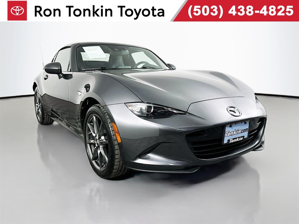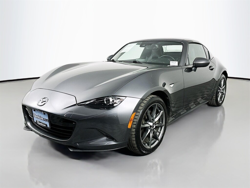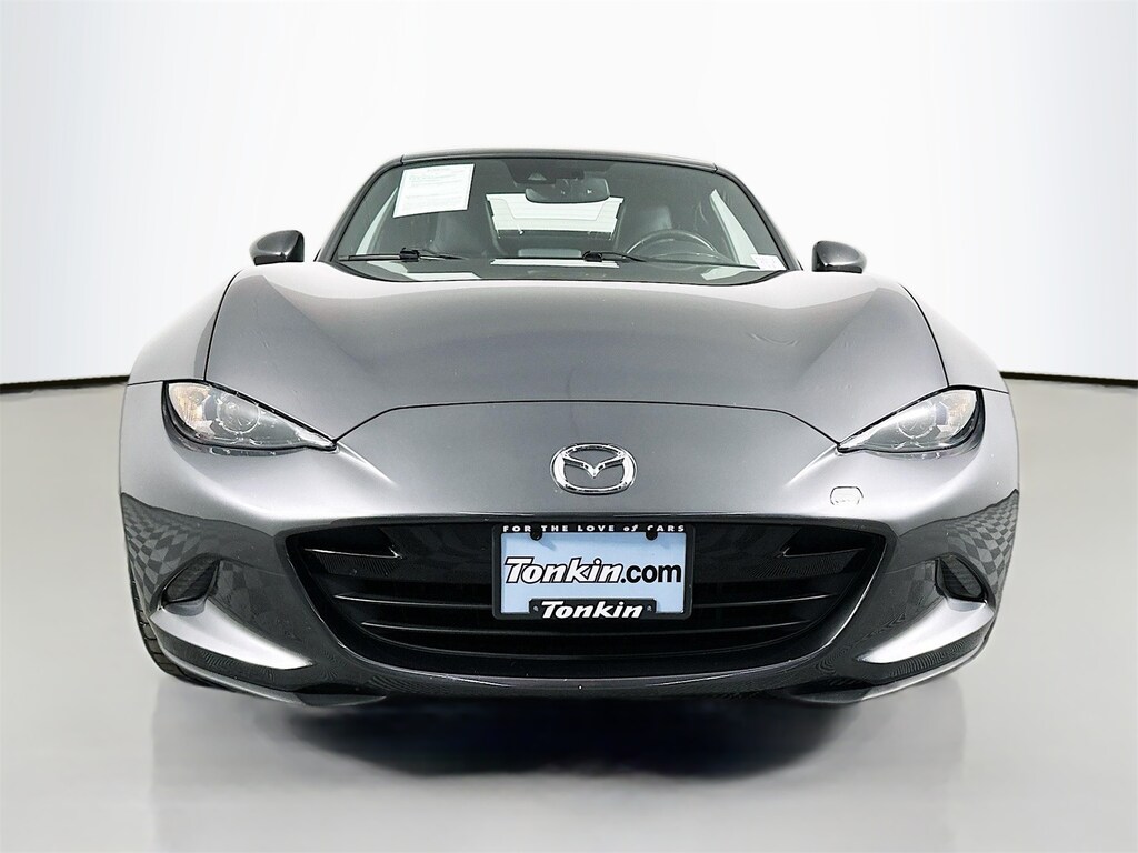 Leather, Keyless Entry, Blind Spot, Back Up Camera, Heated Seats, Bluetooth, 4-Wheel Disc Brakes, 9 Speakers, ABS brakes, Air Conditioning, Alloy wheels, AM/FM radio: SiriusXM, AM/FM Sound System w/Navigation, Auto High-beam Headlights, Auto-dimming door mirrors, Auto-dimming Rear-View mirror, Automatic temperature control, BOSE Audio System, Brake assist, Bumpers: body-color, Convertible HardTop, Convertible roof lining, Convertible roof wind blocker, Delay-off headlights, Driver vanity mirror, Dual front impact airbags, Dual front side impact airbags, Electronic Stability Control, Emergency communication system: MAZDA CONNECT, Exterior Parking Camera Rear, Four wheel independent suspension, Front anti-roll bar, Front Bucket Seats, Front Center Armrest, Fully automatic headlights, Garage door transmitter: HomeLink, Glass rear window, Heated door mirrors, Heated front seats, Illuminated entry, Leather Shift Knob, Leather Upholstery, Low tire pressure warning, Machine Gray Paint Charge, MAZDA CONNECT Infotainment System, Navigation System, Occupant sensing airbag, Outside temperature display, Panic alarm, Passenger vanity mirror, Power convertible roof, Power door mirrors, Power steering, Power windows, Radio data system, Rain sensing wipers, Rear anti-roll bar, Rear window defroster, Reclining Heated Front Bucket Seats, Remote keyless entry, Speed control, Speed-sensing steering, Sport steering wheel, Steering wheel mounted audio controls, Tachometer, Telescoping steering wheel, Tilt steering wheel, Traction control, Trip computer, Variably intermittent wipers, Wheels: 17" x 7" Dark Silver Aluminum Alloy.