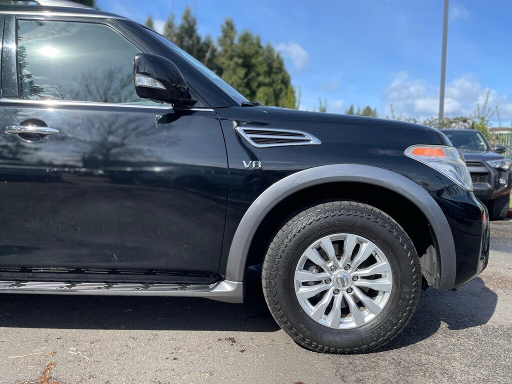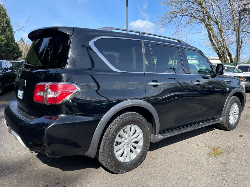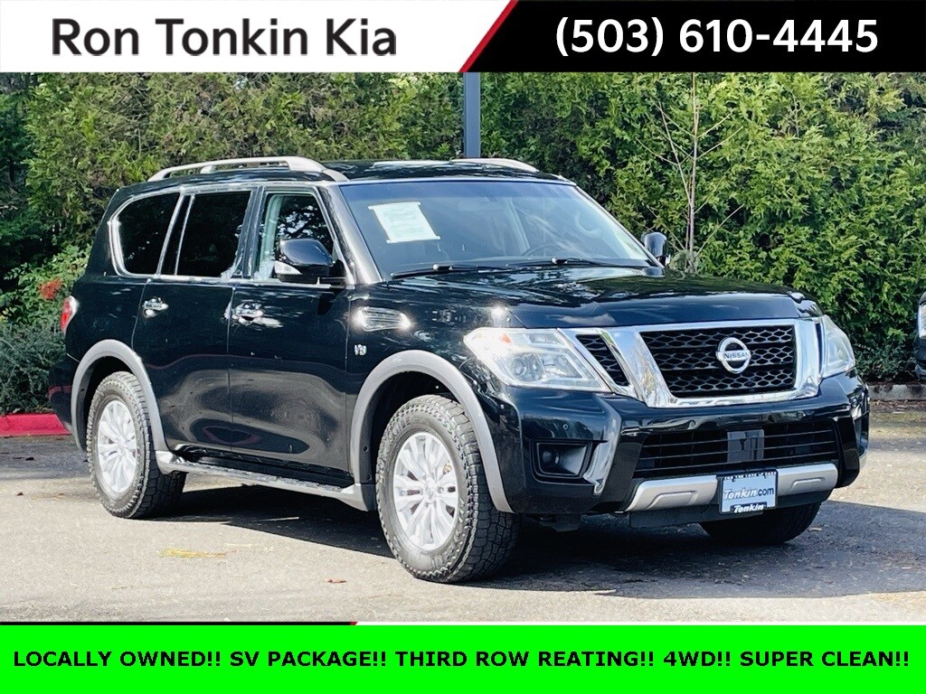 2017 Nissan Armada SV Super Black 5.6L V8 DOHC 32V Endurance 13 Speakers, 18" Alloy Wheels, 2.937 Axle Ratio, 2nd & 3rd Row Carpeted Mats, 3rd row seats: split-bench, 4-Wheel Disc Brakes, ABS brakes, Activation Disclaimer, Air Conditioning, Alloy wheels, AM/FM radio: SiriusXM, Anti-whiplash front head restraints, Auto-leveling suspension, Automatic temperature control, Brake assist, Bumpers: body-color, CD player, Delay-off headlights, Driver door bin, Driver vanity mirror, Dual front impact airbags, Dual front side impact airbags, Electronic Stability Control, Four wheel independent suspension, Front anti-roll bar, Front Bucket Seats, Front Center Armrest, Front dual zone A/C, Front reading lights, Fully automatic headlights, Heated door mirrors, Heated Front Bucket Seats, Heated front seats, Illuminated entry, Leather Shift Knob, Low tire pressure warning, Navigation System, Occupant sensing airbag, Outside temperature display, Overhead airbag, Overhead console, Panic alarm, Passenger door bin, Passenger vanity mirror, Power door mirrors, Power driver seat, Power Liftgate, Power passenger seat, Power steering, Power windows, Premium Cloth Seat Trim, Radio data system, Radio: Bose AM/FM/SXM/CD/MP3 Audio System, Rear air conditioning, Rear anti-roll bar, Rear reading lights, Rear seat center armrest, Rear window defroster, Rear window wiper, Reclining 3rd row seat, Remote keyless entry, Roof rack: rails only, Security system, Speed control, Speed-sensing steering, Speed-Sensitive Wipers, Split folding rear seat, Steering wheel mounted audio controls, Tachometer, Tilt steering wheel, TPMS Activation, Traction control, Trip computer, Turn signal indicator mirrors, Variably intermittent wipers, Voltmeter.