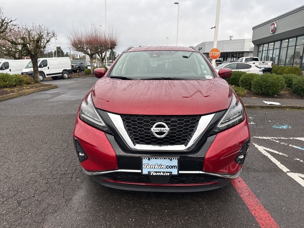 2022 Nissan Murano SV 3.5L V6 DOHC 24V CVT with Xtronic AWD 4D Sport Utility Scarlet Ember Tintcoat AWD, 4-Wheel Disc Brakes, 4.667 Axle Ratio, 6 Speakers, ABS brakes, Air Conditioning, AM/FM radio: SiriusXM, AM/FM/CD/MP3/WMA Audio System, Auto High-beam Headlights, Auto-dimming Rear-View mirror, Automatic temperature control, Blind Spot Warning, Brake assist, Bumpers: body-color, Carpeted Floor Mats & Carpeted Cargo Mat, CD player, Child-Seat-Sensing Airbag, Custom Fuel Wheels and Off-Road Tires, Delay-off headlights, Driver door bin, Driver vanity mirror, Dual front impact airbags, Dual front side impact airbags, Electronic Stability Control, Four wheel independent suspension, Front anti-roll bar, Front Bucket Seats, Front Center Armrest, Front dual zone A/C, Front fog lights, Front reading lights, Fully automatic headlights, Heated door mirrors, Heated Front Bucket Seats, Heated front seats, Illuminated entry, Knee airbag, Leatherette-Appointed Seat Trim, Low tire pressure warning, NissanConnect featuring Apple CarPlay and Android Auto, Occupant sensing airbag, Outside temperature display, Overhead airbag, Overhead console, Panic alarm, Passenger door bin, Passenger vanity mirror, Power door mirrors, Power driver seat, Power passenger seat, Power steering, Power windows, Radio data system, Rear anti-roll bar, Rear Bumper Protector, Rear reading lights, Rear seat center armrest, Rear side impact airbag, Rear window defroster, Rear window wiper, Remote keyless entry, Roof rack, Security system, Speed control, Speed-sensing steering, Speed-Sensitive Wipers, Splash Guards (B92), Split folding rear seat, Spoiler, Steering wheel mounted audio controls, Tachometer, Telescoping steering wheel, Tilt steering wheel, Traction control, Trip computer, Turn signal indicator mirrors, Variably intermittent wipers, Wheels: 18" Machined Aluminum-Alloy, AWD. ***Call (503) 258-5800 to speak to a Sales Professional*** Come in to Ron Tonkin Chrysler Jeep Dodge Ram Fiat in Milwaukie to test drive today! DL0087.