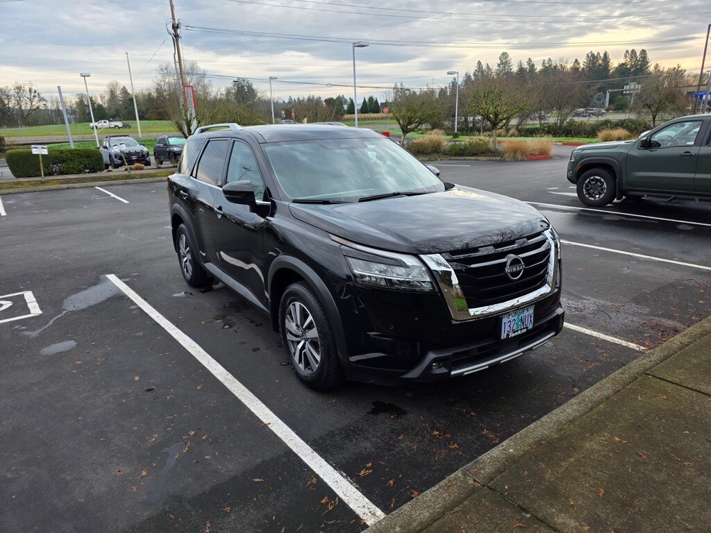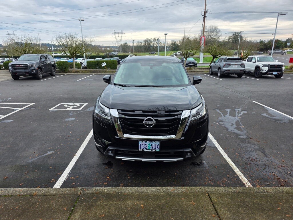 2022 Nissan Pathfinder SL Super Black V6 21/27 City/Highway MPG 4WD, 18" Machined Alloy Wheels, 3rd row seats: bench, 4-Wheel Disc Brakes, 6 Speakers, ABS brakes, Air Conditioning, Alloy wheels, AM/FM radio: SiriusXM, Auto High-beam Headlights, Auto-dimming Rear-View mirror, Automatic temperature control, Axle Ratio: TBD, Bench Seat Carpeted Floor Mats (Set of 4), Black Splash Guards (Set of 4), Brake assist, Bumpers: body-color, Delay-off headlights, Driver door bin, Driver vanity mirror, Dual front impact airbags, Dual front side impact airbags, Electronic Stability Control, Emergency communication system: NissanConnect Services, Exterior Parking Camera Rear, Four wheel independent suspension, Front anti-roll bar, Front Bucket Seats, Front Center Armrest, Front dual zone A/C, Front fog lights, Front reading lights, Fully automatic headlights, Garage door transmitter: HomeLink, Heated door mirrors, Heated Front Bucket Seats, Heated front seats, Heated steering wheel, Illuminated entry, Knee airbag, Leather Seating Surfaces, Leather steering wheel, Low tire pressure warning, Navigation system: NissanConnect Navigation, NissanConnect w/Navigation & Services, Occupant sensing airbag, Outside temperature display, Overhead airbag, Overhead console, Panic alarm, Passenger door bin, Passenger vanity mirror, Power door mirrors, Power driver seat, Power Liftgate, Power passenger seat, Power steering, Power windows, Radio data system, Radio: AM/FM Audio System, Rear air conditioning, Rear anti-roll bar, Rear reading lights, Rear seat center armrest, Rear side impact airbag, Rear window defroster, Rear window wiper, Reclining 3rd row seat, Remote keyless entry, Security system, Speed control, Speed-sensing steering, Split folding rear seat, Spoiler, Steering wheel mounted audio controls, Tachometer, Telescoping steering wheel, Tilt steering wheel, Traction control, Trip computer, Turn signal indicator mirrors, Variably intermittent wipers, 4WD. Clean CARFAX. Odometer is 20197 miles below market average! Our Best Price Up Front, No Games or Gimmicks. Our advertised price is for a retail type purchase and may not be available for Fleet or Commercial use type purchase; please call us to confirm.