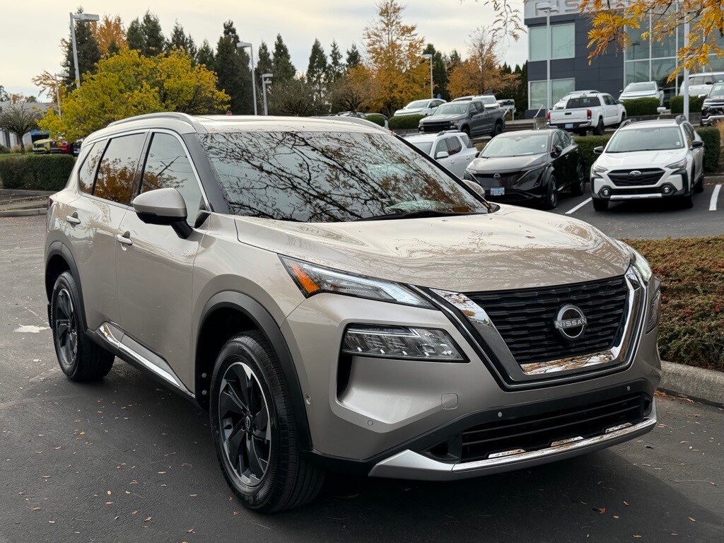 2022 Nissan Rogue Platinum Champagne Silver Metallic 1.5L I3 Turbocharged DOHC 12V LEV3-ULEV50 201hp 29/36 City/Highway MPG 10 Speakers, 19" Aluminum Alloy Wheels, 4-Wheel Disc Brakes, 5.604 Axle Ratio, ABS brakes, Air Conditioning, Alloy wheels, AM/FM radio: SiriusXM, Apple CarPlay/Android Auto, Auto High-beam Headlights, Auto-dimming Rear-View mirror, Automatic temperature control, Black Splash Guards (Set of 4), Bose Premium Audio System, Brake assist, Bumpers: body-color, Chrome Rear Bumper Protector, Delay-off headlights, Driver door bin, Driver vanity mirror, Dual front impact airbags, Dual front side impact airbags, Electronic Stability Control, Emergency communication system: NissanConnect Services, First Aid Kit, Floor Mats w/2-Piece Cargo Area Protector, Four wheel independent suspension, Frameless Rearview Mirror w/Universal Remote, Front anti-roll bar, Front Bucket Seats, Front Center Armrest, Front dual zone A/C, Front fog lights, Front reading lights, Fully automatic headlights, Head-Up Display Package, Heads-Up Display, Heated door mirrors, Heated Front Bucket Seats, Heated front seats, Heated rear seats, Heated steering wheel, Illuminated entry, Illuminated Kick Plates, Knee airbag, Low tire pressure warning, Memory seat, Navigation system: NissanConnect Navigation, Occupant sensing airbag, Outside temperature display, Overhead airbag, Overhead console, Panic alarm, Passenger door bin, Passenger vanity mirror, Power door mirrors, Power driver seat, Power Liftgate, Power moonroof, Power passenger seat, Power steering, Power windows, Quilted Semi-Aniline Leather Seat Trim, Radio data system, Radio: AM/FM NissanConnect w/Navigation, Rear air conditioning, Rear anti-roll bar, Rear reading lights, Rear seat center armrest, Rear side impact airbag, Rear window defroster, Rear window wiper, Remote keyless entry, Roof rack: rails only, Security system, Speed control, Speed-Sensitive Wipers, Split folding rear seat, Spoiler, Steering wheel mounted audio controls, Tachometer, Telescoping steering wheel, Tilt steering wheel, Traction control, Trip computer, Turn signal indicator mirrors, Variably intermittent wipers. Priced below KBB Fair Purchase Price! Odometer is 8669 miles below market average! Our Best Price Up Front, No Games or Gimmicks. Our advertised price is for a retail type purchase and may not be available for Fleet or Commercial use type purchase; please call us to confirm.