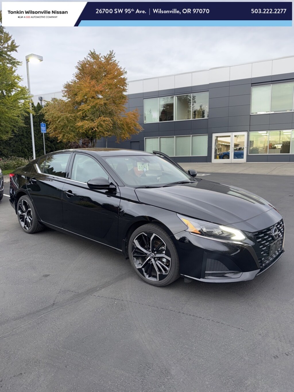 2023 Nissan Altima 2.5 SR Super Black Clearcoat 2.5L 4-Cylinder DOHC 16V 26/36 City/Highway MPG CVT with Xtronic, 4-Wheel Disc Brakes, 6 Speakers, ABS brakes, Air Conditioning, Alloy wheels, AM/FM radio: SiriusXM, Auto High-beam Headlights, Black Outside Mirrors, Blind Spot Warning, Body-Colored Rear Spoiler, Body-Colored Splash Guards, Brake assist, Bumpers: body-color, Chrome Bumper Protector, Delay-off headlights, Driver door bin, Driver vanity mirror, Dual front impact airbags, Dual front side impact airbags, Electronic Stability Control, Four wheel independent suspension, Front anti-roll bar, Front Bucket Seats, Front Center Armrest, Front reading lights, Front Sport Bucket Seats, Fully automatic headlights, Heated Front Seats, Illuminated entry, Knee airbag, Leather Shift Knob, Leather-Appointed Seat Trim, Low tire pressure warning, NissanConnect, NissanConnect featuring Apple CarPlay and Android Auto, Occupant sensing airbag, Outside temperature display, Overhead airbag, Overhead console, Panic alarm, Passenger door bin, Passenger vanity mirror, Power door mirrors, Power driver seat, Power steering, Power windows, Premium Sport Interior Finishers, Radio data system, Radio: AM/FM Audio System, Rear anti-roll bar, Rear Parking Sensors, Rear reading lights, Rear seat center armrest, Rear side impact airbag, Rear window defroster, Remote keyless entry, Security system, Single Panel Moonroof, Speed control, Speed-sensing steering, Speed-Sensitive Wipers, Split folding rear seat, Sport Seat Trim, SR Floor Mats/Trunk Mat/Hideaway Nets, SR Premium Package, Steering wheel mounted audio controls, Tachometer, Telescoping steering wheel, Tilt steering wheel, Traction control, Trip computer, Trunk Organizer Tray, Variably intermittent wipers, Wheels: 19" Sport Alloy, CVT with Xtronic. CARFAX One-Owner. Clean CARFAX. Our Best Price Up Front, No Games or Gimmicks. Our advertised price is for a retail type purchase and may not be available for Fleet or Commercial use type purchase; please call us to confirm.