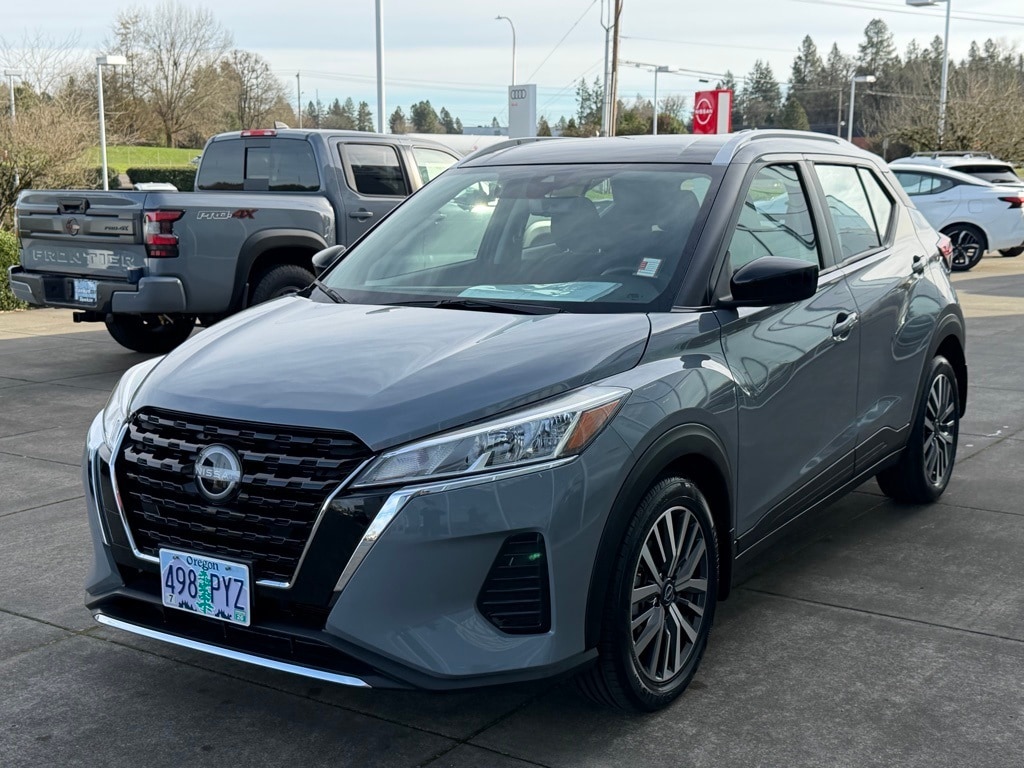 2023 Nissan Kicks SV Gray/Super Black 1.6L 4-Cylinder DOHC 16V 31/36 City/Highway MPG 17" Alloy Wheels, 3.93 Axle Ratio, 4-Wheel Disc Brakes, 6 Speakers, ABS brakes, Air Conditioning, Alloy wheels, AM/FM radio: SiriusXM, Apple CarPlay/Android Auto, Auto High-beam Headlights, Blind Spot Warning, Brake assist, Bumpers: body-color, Carpeted Floor Mats w/Cargo Mat, Cloth Seat Trim, Door Pocket Light, Driver door bin, Driver vanity mirror, Dual front impact airbags, Dual front side impact airbags, Electronic Stability Control, External Ground Lighting, Frameless Auto-Dimming Mirror, Front anti-roll bar, Front Bucket Seats, Front Center Armrest, Front reading lights, Front wheel independent suspension, Fully automatic headlights, Heated door mirrors, Illuminated entry, Illuminated Kick Plates, Interior Electronics Package, Knee airbag, Low tire pressure warning, Occupant sensing airbag, Outside temperature display, Overhead airbag, Panic alarm, Passenger door bin, Passenger vanity mirror, Power door mirrors, Power steering, Power windows, Radio data system, Radio: AM/FM Audio System, Rear Parking Sensors, Rear reading lights, Rear side impact airbag, Rear window defroster, Rear window wiper, Remote keyless entry, Speed control, Splash Guards Grain (4 Piece), Split folding rear seat, Sport steering wheel, Steering wheel mounted audio controls, Tachometer, Telescoping steering wheel, Tilt steering wheel, Traction control, Trip computer, Universal Remote, Variably intermittent wipers. Priced below KBB Fair Purchase Price! Odometer is 16267 miles below market average! Our Best Price Up Front, No Games or Gimmicks. Our advertised price is for a retail type purchase and may not be available for Fleet or Commercial use type purchase; please call us to confirm.