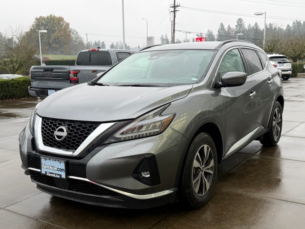 2023 Nissan Murano SV Gun Metallic 3.5L V6 DOHC 24V 20/28 City/Highway MPG CVT with Xtronic, AWD, 4-Wheel Disc Brakes, 4.667 Axle Ratio, 6 Speakers, ABS brakes, Air Conditioning, Alloy wheels, AM/FM radio: SiriusXM, AM/FM/CD/MP3/WMA Audio System, Auto High-beam Headlights, Auto-dimming Rear-View mirror, Automatic temperature control, Blind Spot Warning, Brake assist, Bumpers: body-color, Carpeted Floor Mats & Carpeted Cargo Mat, CD player, Child-Seat-Sensing Airbag, Delay-off headlights, Driver door bin, Driver vanity mirror, Dual front impact airbags, Dual front side impact airbags, Electronic Stability Control, Four wheel independent suspension, Front anti-roll bar, Front Bucket Seats, Front Center Armrest, Front dual zone A/C, Front fog lights, Front reading lights, Fully automatic headlights, Heated door mirrors, Heated Front Bucket Seats, Heated front seats, Illuminated entry, Knee airbag, Leatherette-Appointed Seat Trim, Low tire pressure warning, NissanConnect featuring Apple CarPlay and Android Auto, Occupant sensing airbag, Outside temperature display, Overhead airbag, Overhead console, Panic alarm, Passenger door bin, Passenger vanity mirror, Power door mirrors, Power driver seat, Power passenger seat, Power steering, Power windows, Radio data system, Rear anti-roll bar, Rear reading lights, Rear seat center armrest, Rear side impact airbag, Rear window defroster, Rear window wiper, Remote keyless entry, Security system, Speed control, Speed-sensing steering, Speed-Sensitive Wipers, Split folding rear seat, Spoiler, Steering wheel mounted audio controls, Tachometer, Telescoping steering wheel, Tilt steering wheel, Traction control, Trip computer, Turn signal indicator mirrors, Variably intermittent wipers, Wheels: 18" Machined Aluminum-Alloy, CVT with Xtronic, AWD. CARFAX One-Owner. Clean CARFAX. Odometer is 4139 miles below market average! Our Best Price Up Front, No Games or Gimmicks. Our advertised price is for a retail type purchase and may not be available for Fleet or Commercial use type purchase; please call us to confirm.