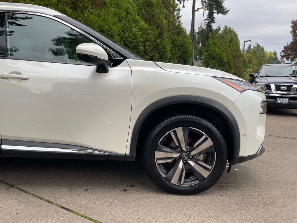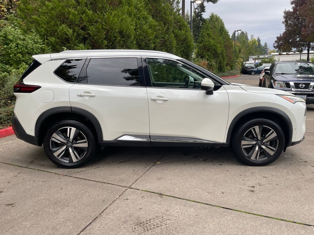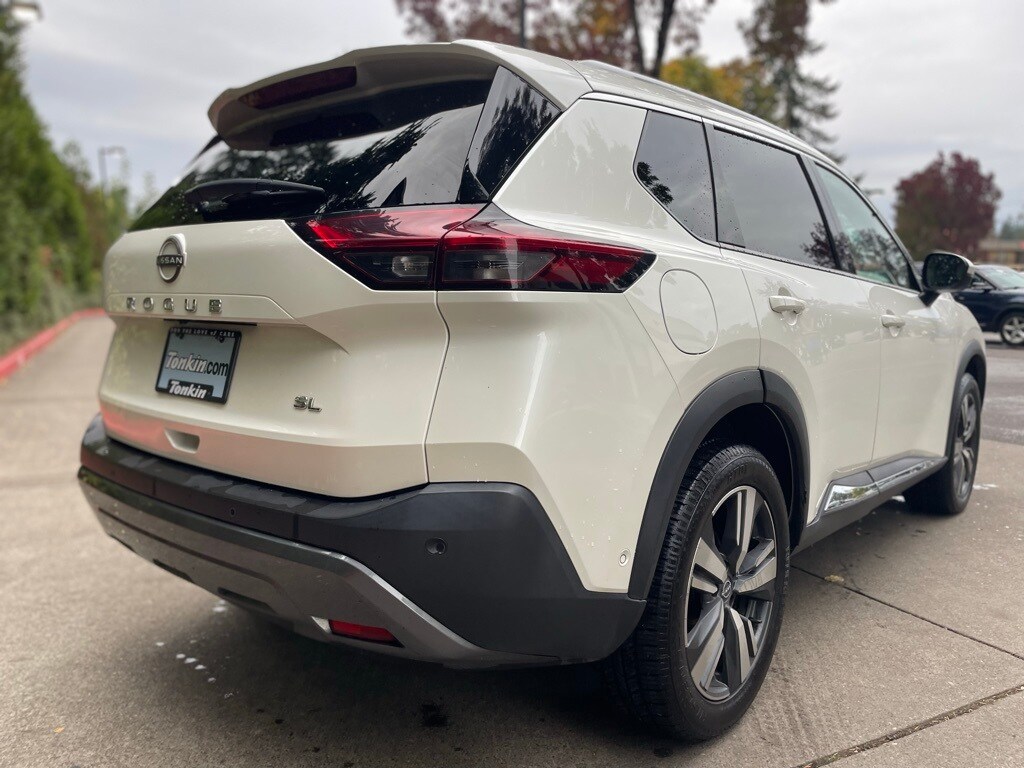 2023 Nissan Rogue SL Pearl White Tricoat 1.5L I3 Turbocharged DOHC 12V LEV3-ULEV50 201hp 19" Aluminum Alloy Wheels, 4-Wheel Disc Brakes, 5.604 Axle Ratio, 6 Speakers, ABS brakes, Air Conditioning, Alloy wheels, AM/FM Radio, AM/FM radio: SiriusXM, Auto High-beam Headlights, Auto-dimming Rear-View mirror, Automatic temperature control, Bose Premium Audio System, Brake assist, Bumpers: body-color, Delay-off headlights, Driver door bin, Driver vanity mirror, Dual front impact airbags, Dual front side impact airbags, Electronic Stability Control, Emergency communication system: NissanConnect Services, First Aid Kit, Floor Mats w/2-Piece Cargo Area Protector, Four wheel independent suspension, Front anti-roll bar, Front Bucket Seats, Front Center Armrest, Front dual zone A/C, Front reading lights, Front, Side & Rear Sonar, Fully automatic headlights, Heated door mirrors, Heated Front Bucket Seats, Heated front seats, Heated steering wheel, Illuminated entry, Knee airbag, Leather steering wheel, Leather-Appointed Seat Trim, Low tire pressure warning, Memory seat, Motion Activated Power Liftgate, NissanConnect featuring Apple CarPlay and Android Auto, Occupant sensing airbag, Outside temperature display, Overhead airbag, Overhead console, Panic alarm, Passenger door bin, Passenger vanity mirror, Power door mirrors, Power driver seat, Power Liftgate, Power moonroof, Power passenger seat, Power steering, Power windows, ProPILOT Assist w/Navi-link, Radio data system, Radio: AM/FM NissanConnect w/Navigation, Rear anti-roll bar, Rear Door Sunshades, Rear Parking Sensors, Rear reading lights, Rear seat center armrest, Rear side impact airbag, Rear window defroster, Rear window wiper, Remote keyless entry, Security system, SL Premium Package, Speed control, Speed-Sensitive Wipers, Split folding rear seat, Spoiler, Steering wheel mounted audio controls, Tachometer, Telescoping steering wheel, Tilt steering wheel, Traction control, Traffic Sign Recognition, Tri-Zone HVAC, Trip computer, Turn signal indicator mirrors, Variably intermittent wipers.