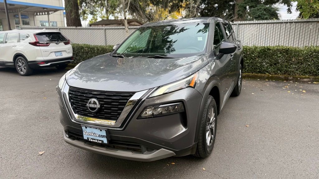 2023 Nissan Rogue S, 1.5L I3 Turbocharged DOHC 12V LEV3-ULEV50 201hp, CVT with Xtronic, AWD, Gun Metallic, 17" Aluminum Alloy Wheels, AM/FM radio: SiriusXM, Blind Spot Warning, Dual front impact airbags, Dual front side impact airbags, Front anti-roll bar, Front Bucket Seats, Knee airbag, Low tire pressure warning, NissanConnect featuring Apple CarPlay and Android Auto, Occupant sensing airbag, Outside temperature display, Overhead airbag, Rear anti-roll bar, Rear Parking Sensors, Rear side impact airbag, 4 Speakers, 4-Wheel Disc Brakes, 5.604 Axle Ratio, ABS brakes, Air Conditioning, Alloy wheels, AM/FM Radio, Auto High-beam Headlights, Brake assist, Bumpers: body-color, Cloth Seat Trim, Delay-off headlights, Driver door bin, Driver vanity mirror, Electronic Stability Control, First Aid Kit, Floor Mats w/1-Piece Cargo Area Protector, Four wheel independent suspension, Front Center Armrest, Front reading lights, Fully automatic headlights, Illuminated entry, Overhead console, Panic alarm, Passenger door bin, Passenger vanity mirror, Power door mirrors, Power steering, Power windows, Radio data system, Rear seat center armrest, Rear window defroster, Rear window wiper, Remote keyless entry, Speed control, Speed-Sensitive Wipers, Split folding rear seat, Spoiler, Steering wheel mounted audio controls, Tachometer, Telescoping steering wheel, Tilt steering wheel, Traction control, Trip computer, Variably intermittent wipers.