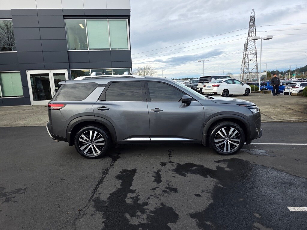 2024 Nissan Pathfinder Platinum Gun Metallic 3.5L V6 DOHC 20/25 City/Highway MPG 4WD, 13 Speakers, 2nd-Row Rear Headrest, 3rd row seats: bench, 4-Wheel Disc Brakes, ABS brakes, Air Conditioning, Alloy wheels, AM/FM radio: SiriusXM, Auto High-beam Headlights, Auto tilt-away steering wheel, Auto-dimming Rear-View mirror, Automatic temperature control, Axle Ratio: 4.334, Black Splash Guards (Set of 4), Bodyside moldings, Bose Premium Audio System, Brake assist, Bumpers: body-color, Captain's Chairs Carpeted Floor Mats (Set of 4), Cargo Area Protector, Cargo Package, Cross Bars, Delay-off headlights, Driver door bin, Driver vanity mirror, Dual front impact airbags, Dual front side impact airbags, Electronic Stability Control, Emergency communication system, Exterior Parking Camera Rear, Four wheel independent suspension, Front anti-roll bar, Front Bucket Seats, Front Center Armrest, Front dual zone A/C, Front reading lights, Fully automatic headlights, Garage door transmitter: HomeLink, Heads-Up Display, Heated & Cooled Front Bucket Seats, Heated door mirrors, Heated front seats, Heated rear seats, Heated steering wheel, Illuminated entry, Knee airbag, Leather steering wheel, Low tire pressure warning, Memory seat, Navigation system: NissanConnect with Navigation and Services, NissanConnect featuring Apple CarPlay and Android Auto, NissanConnect w/Navigation & Services, Occupant sensing airbag, Outside temperature display, Overhead airbag, Overhead console, Panic alarm, Passenger door bin, Passenger vanity mirror, Platinum Captain Chairs Package, Power door mirrors, Power driver seat, Power Liftgate, Power moonroof, Power passenger seat, Power steering, Power windows, Radio data system, Radio: AM/FM Audio System, Rain sensing wipers, Rear air conditioning, Rear anti-roll bar, Rear reading lights, Rear seat center armrest, Rear side impact airbag, Rear window defroster, Rear window wiper, Reclining 3rd row seat, Remote keyless entry, Security system, Semi-Aniline Leather-Appointed Seating Surfaces, Speed control, Speed-sensing steering, Speed-Sensitive Wipers, Split folding rear seat, Spoiler, Steering wheel memory, Steering wheel mounted audio controls, Tachometer, Telescoping steering wheel, Tilt steering wheel, Traction control, Trip computer, Turn signal indicator mirrors, Variably intermittent wipers, Ventilated front seats, Wheels: 20" x 8J Machined Alloy, 4WD. CARFAX One-Owner. Clean CARFAX. Priced below KBB Fair Purchase Price! Our Best Price Up Front, No Games or Gimmicks. Our advertised price is for a retail type purchase and may not be available for Fleet or Commercial use type purchase; please call us to confirm.