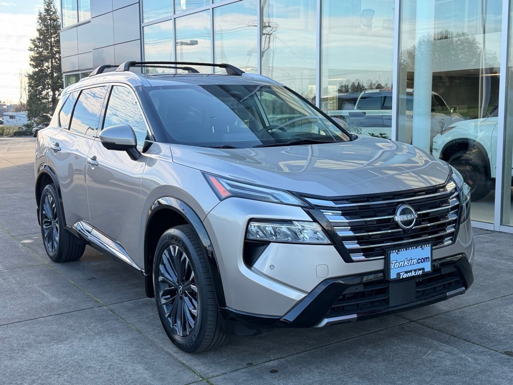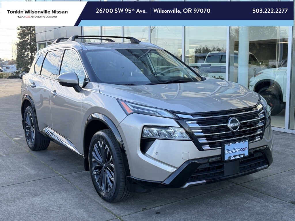 2024 Nissan Rogue Platinum Champagne Silver Metallic 1.5L DOHC 28/34 City/Highway MPG AWD, 10 Speakers, 4-Wheel Disc Brakes, 5.676 Axle Ratio, ABS brakes, Air Conditioning, Alloy wheels, AM/FM radio: SiriusXM w/360L, Auto High-beam Headlights, Auto-dimming Rear-View mirror, Automatic temperature control, Bose Premium Audio System, Brake assist, Bumpers: body-color, Chrome Rear Bumper Protector, Delay-off headlights, Driver door bin, Driver vanity mirror, Dual front impact airbags, Dual front side impact airbags, Electronic Stability Control, Emergency communication system: NissanConnect Services, External Ground Lighting, First Aid Kit, Floor Mats w/2-Piece Cargo Area Protector, Four wheel independent suspension, Frameless Rearview Mirror w/Universal Remote, Front anti-roll bar, Front Bucket Seats, Front Center Armrest, Front dual zone A/C, Front reading lights, Fully automatic headlights, Head-Up Display, Heated door mirrors, Heated Front Bucket Seats, Heated front seats, Heated steering wheel, Illuminated entry, Illuminated Kick Plates, Interior Accent Lighting, Knee airbag, Leather steering wheel, Low tire pressure warning, Memory seat, Motion-Activated Power Liftgate, Navigation system: NissanConnect with Navigation and Services, NissanConnect featuring Apple CarPlay and Android Auto, Occupant sensing airbag, Outside temperature display, Overhead airbag, Overhead console, Panic alarm, Passenger door bin, Passenger vanity mirror, Platinum Premium Package, Power door mirrors, Power driver seat, Power Liftgate, Power moonroof, Power passenger seat, Power steering, Power windows, Quilted Semi-Aniline Leather-Appointed Seat Trim, Radio data system, Radio: AM/FM NissanConnect w/Navigation, Rear anti-roll bar, Rear Door Sunshades, Rear Heated Seats, Rear reading lights, Rear seat center armrest, Rear side impact airbag, Rear window defroster, Rear window wiper, Remote keyless entry, Retractable Cargo Cover, Roof Rail Cross Bars, Security system, Speed control, Speed-Sensitive Wipers, Splash Guards (Black - Set of 4), Split folding rear seat, Spoiler, Steering wheel mounted audio controls, Tachometer, Telescoping steering wheel, Tilt steering wheel, Traction control, Tri-Zone Automatic Temperature Control, Trip computer, Turn signal indicator mirrors, USB Charging Cable Set - Nissan, Variably intermittent wipers, Wheels: 19" Unique Dark Painted Aluminum Alloy, AWD. CARFAX One-Owner. Clean CARFAX. Our Best Price Up Front, No Games or Gimmicks. Our advertised price is for a retail type purchase and may not be available for Fleet or Commercial use type purchase; please call us to confirm.