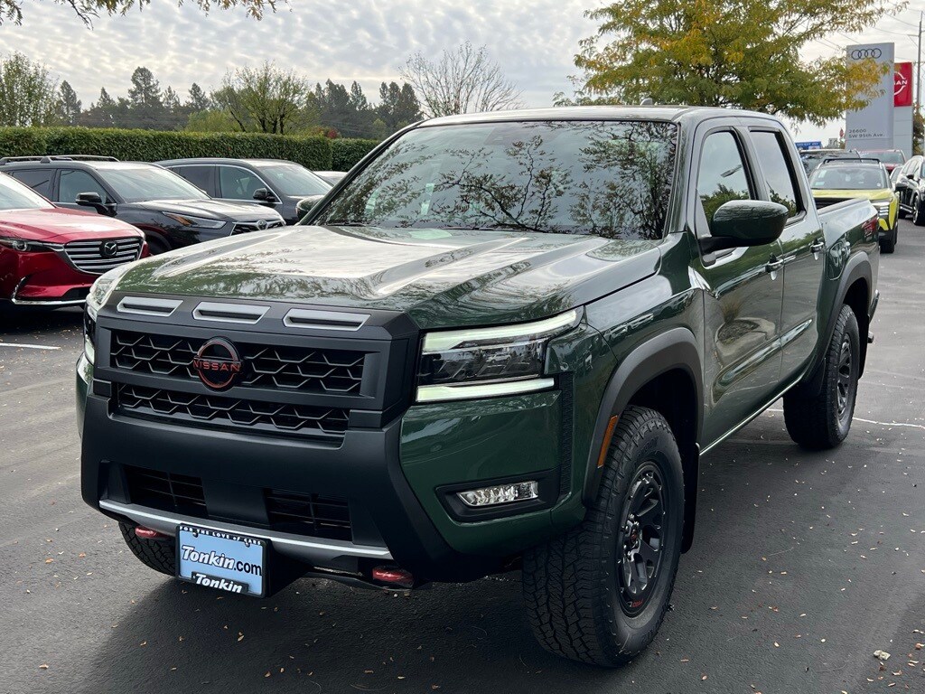 2025 Frontier Nissan PRO-4X Tactical Green Metallic 3.8L DI DOHC 24V V6 4WD 18/22 City/Highway MPG 4WD, 17" Painted Alloy Wheels, 3.692 Axle Ratio, 4-Wheel Disc Brakes, 6 Speakers, ABS brakes, Air Conditioning, Alloy wheels, AM/FM radio: SiriusXM, Anti-whiplash front head restraints, Auto High-beam Headlights, Automatic temperature control, Blind Spot Warning, Brake assist, Bumpers: body-color, Delay-off headlights, Driver door bin, Driver vanity mirror, Drop-In Bed Liner & Bumper Step, Dual front impact airbags, Dual front side impact airbags, Electronic Stability Control, Electronic Tailgate Lock, Emergency communication system, Essentials Kit, Front anti-roll bar, Front Bucket Seats, Front Center Armrest, Front dual zone A/C, Front fog lights, Front reading lights, Front wheel independent suspension, Fully automatic headlights, Illuminated entry, Knee airbag, Leather Shift Knob, Leather steering wheel, Low tire pressure warning, Mud Flap Accessory, Occupant sensing airbag, Overhead airbag, Overhead console, Panic alarm, Passenger door bin, Passenger vanity mirror, Power door mirrors, Power driver seat, Power passenger seat, Power steering, Power windows, Premium Paint, PRO Embroidered Premium Cloth Seat Trim, PRO-4X Carpeted Floor Mats (DISC), Radio data system, Radio: SXM/AM/FM/AUX/USB Audio System, Rear anti-roll bar, Rear seat center armrest, Rear side impact airbag, Rear step bumper, Remote Engine Starter, Remote Engine Starter Accessory, Remote keyless entry, Security system, Speed control, Speed-sensing steering, Split folding rear seat, Steering wheel mounted audio controls, Tachometer, Telescoping steering wheel, Tilt steering wheel, Traction control, Trip computer, Variably intermittent wipers, Voltmeter, Wireless Apple CarPlay/Wireless Android Auto, 4WD.