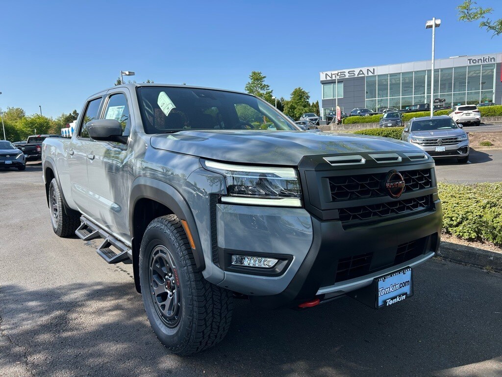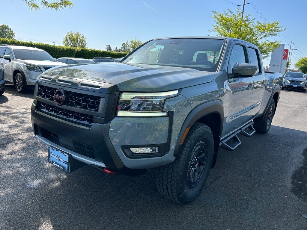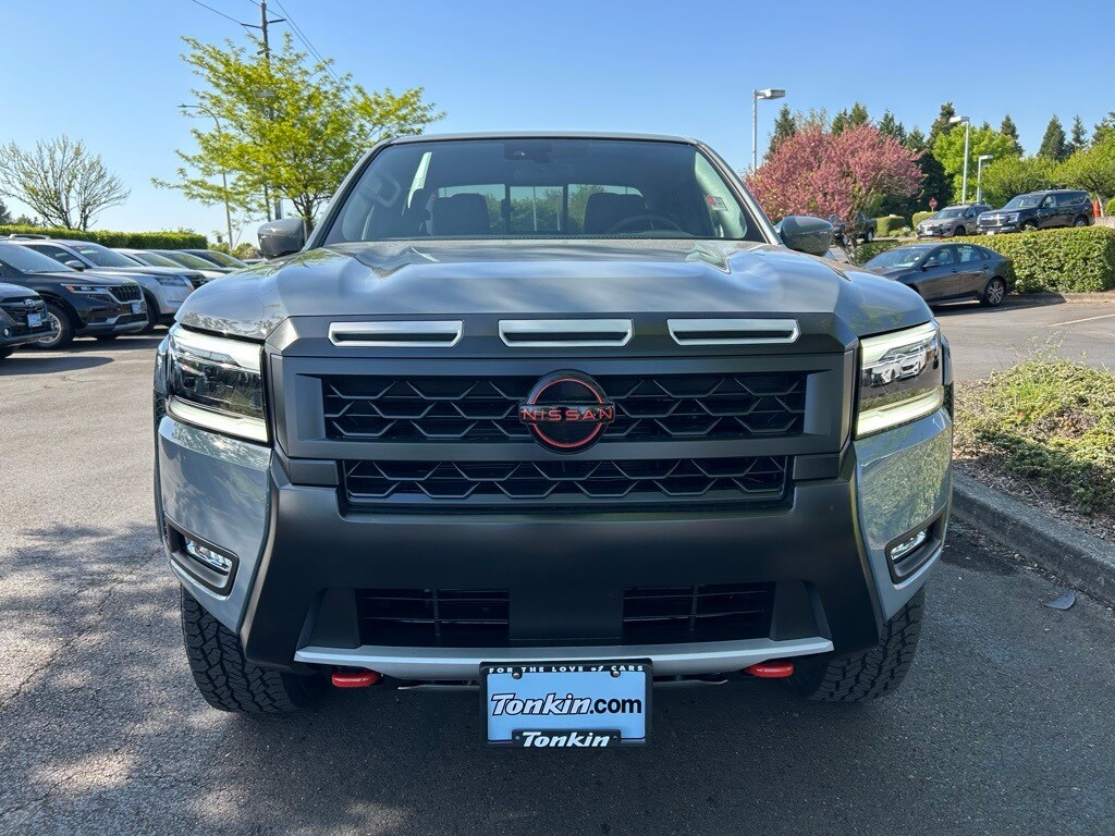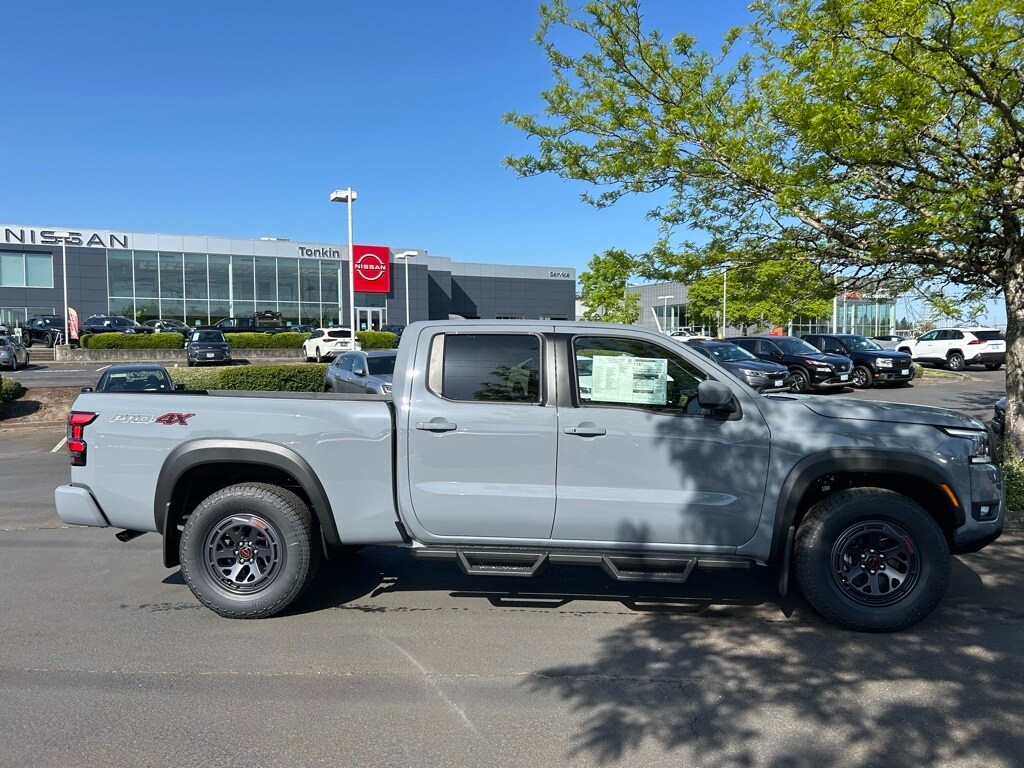 2025 Frontier Nissan PRO-4X Boulder Gray Pearl 3.8L DI DOHC 24V V6 4WD 18/22 City/Highway MPG 4WD, 17" Painted Alloy Wheels, 3.692 Axle Ratio, 4-Wheel Disc Brakes, 6 Speakers, ABS brakes, Air Conditioning, Alloy wheels, AM/FM radio: SiriusXM, Anti-whiplash front head restraints, Auto High-beam Headlights, Automatic temperature control, Blind Spot Warning, Brake assist, Bumpers: body-color, Delay-off headlights, Driver door bin, Driver vanity mirror, Dual front impact airbags, Dual front side impact airbags, Electronic Stability Control, Electronic Tailgate Lock, Emergency communication system, Essentials Kit, Front anti-roll bar, Front Bucket Seats, Front Center Armrest, Front dual zone A/C, Front fog lights, Front reading lights, Front wheel independent suspension, Fully automatic headlights, Illuminated entry, Knee airbag, Leather Shift Knob, Leather steering wheel, Low tire pressure warning, Mud Flap Accessory, Occupant sensing airbag, Off-Road Style Step Rails, Overhead airbag, Overhead console, Panic alarm, Passenger door bin, Passenger vanity mirror, Power door mirrors, Power driver seat, Power passenger seat, Power steering, Power windows, Premium Paint, PRO Embroidered Premium Cloth Seat Trim, Radio data system, Radio: SXM/AM/FM/AUX/USB Audio System, Rear anti-roll bar, Rear seat center armrest, Rear side impact airbag, Rear step bumper, Remote Engine Starter Accessory, Remote keyless entry, Security system, Speed control, Speed-sensing steering, Splash Guards (DISC), Split folding rear seat, Steering wheel mounted audio controls, Tachometer, Telescoping steering wheel, Tilt steering wheel, Traction control, Trip computer, USB Charging Cable Kit, Variably intermittent wipers, Voltmeter, Wireless Apple CarPlay/Wireless Android Auto, 4WD.