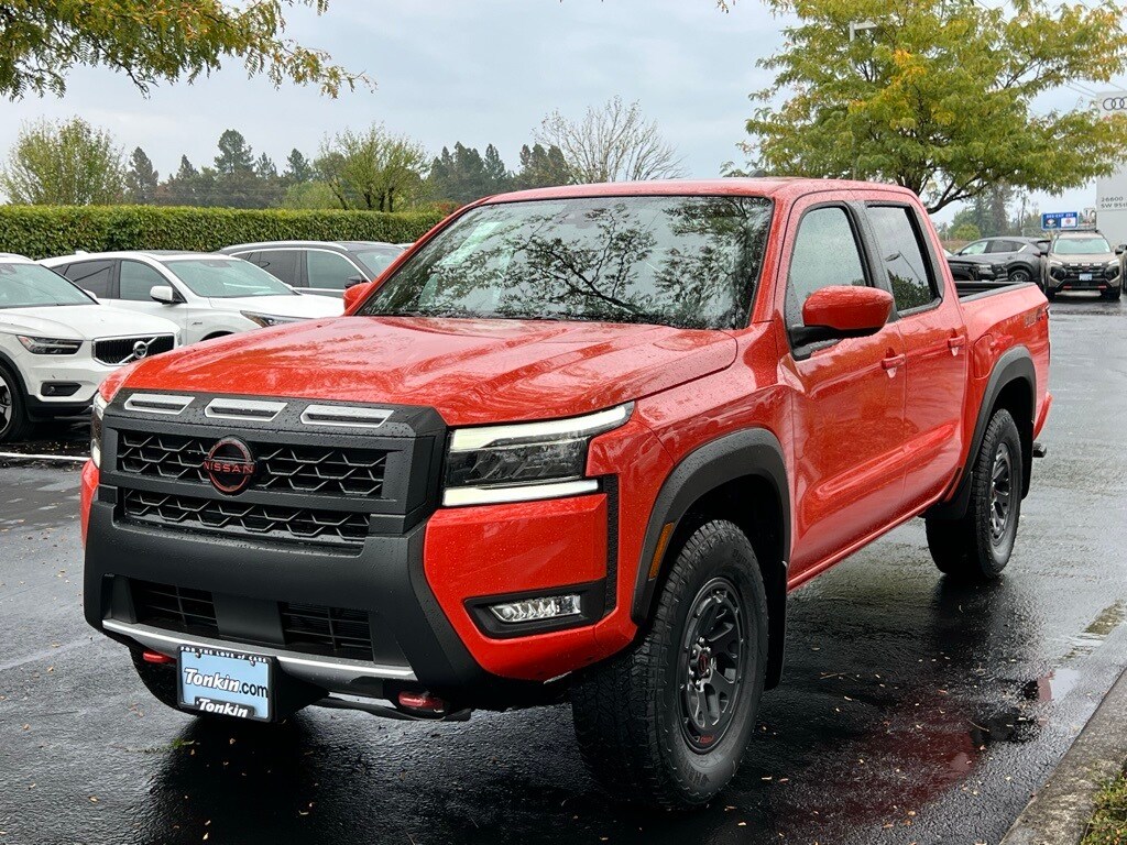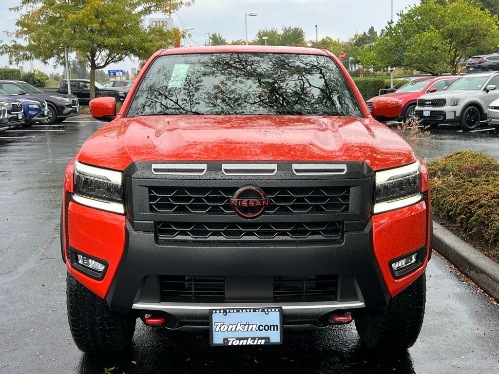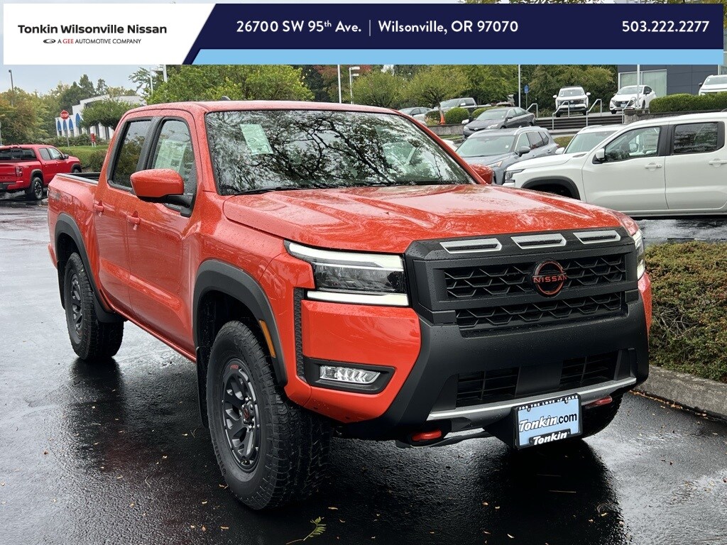 2025 Frontier Nissan PRO-4X Afterburn Orange 3.8L DI DOHC 24V V6 4WD 18/22 City/Highway MPG 4WD, 17" Painted Alloy Wheels, 3.692 Axle Ratio, 4-Wheel Disc Brakes, 6 Speakers, ABS brakes, Air Conditioning, Alloy wheels, AM/FM radio: SiriusXM, Anti-whiplash front head restraints, Auto High-beam Headlights, Automatic temperature control, Blind Spot Warning, Brake assist, Bumpers: body-color, Delay-off headlights, Driver door bin, Driver vanity mirror, Drop-In Bed Liner & Bumper Step, Dual front impact airbags, Dual front side impact airbags, Electronic Stability Control, Electronic Tailgate Lock, Emergency communication system, Essentials Kit, Front anti-roll bar, Front Bucket Seats, Front Center Armrest, Front dual zone A/C, Front fog lights, Front reading lights, Front wheel independent suspension, Fully automatic headlights, Illuminated entry, Interior Protection Package, Knee airbag, Leather Shift Knob, Leather steering wheel, Low tire pressure warning, Mud Flap Accessory, Occupant sensing airbag, Overhead airbag, Overhead console, Panic alarm, Passenger door bin, Passenger vanity mirror, Power door mirrors, Power driver seat, Power passenger seat, Power steering, Power windows, Premium Paint, PRO Embroidered Premium Cloth Seat Trim, PRO-4X Carpeted Floor Mats (DISC), Radio data system, Radio: SXM/AM/FM/AUX/USB Audio System, Rear anti-roll bar, Rear seat center armrest, Rear side impact airbag, Rear step bumper, Remote Engine Starter, Remote Engine Starter Accessory, Remote keyless entry, Security system, Speed control, Speed-sensing steering, Split folding rear seat, Steering wheel mounted audio controls, Tachometer, Telescoping steering wheel, Tilt steering wheel, Traction control, Trip computer, USB Charging Cable Kit, Variably intermittent wipers, Voltmeter, Wireless Apple CarPlay/Wireless Android Auto, 4WD.