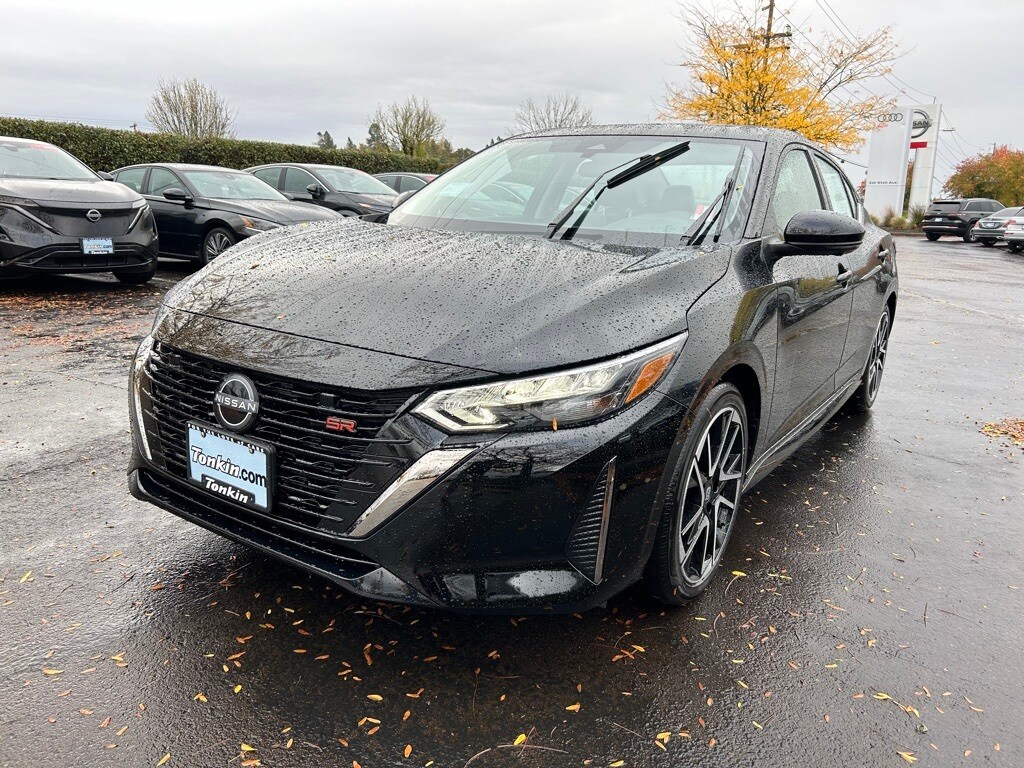 2025 Sentra Nissan SR Super Black 2.0L I4 DOHC FWD 30/38 City/Highway MPG CVT with Xtronic, Sport Cloth, 6-Way Power Driver's Seat, Bose Premium Audio System w/8 Speakers, Carpeted Floor Mats w/Trunk Mat, Clear Rear Bumper Protector, Door Sill Plates, Intelligent Around View Monitor (I-AVM), Leather Heated Steering Wheel, Leatherette Seat Trim, Map Pocket Lighting, Nissan USB Charging Cable Set, NissanConnect Services, Power Sliding Glass Moonroof w/Tilt Feature, SR Premium Package, Sunvisors w/Illuminated Vanity Mirrors, Wi-Fi Hotspot, 18" Alloy Wheels, 4-Wheel Disc Brakes, 8 Speakers, ABS brakes, Air Conditioning, Alloy wheels, AM/FM radio: SiriusXM, Auto High-beam Headlights, Automatic temperature control, Blind Spot Warning, Brake assist, Bumpers: body-color, Delay-off headlights, Driver door bin, Driver vanity mirror, Dual front impact airbags, Dual front side impact airbags, Electronic Stability Control, Four wheel independent suspension, Front anti-roll bar, Front Bucket Seats, Front Center Armrest, Front dual zone A/C, Front reading lights, Fully automatic headlights, Heated door mirrors, Heated Front Bucket Seats, Heated front seats, Illuminated entry, Knee airbag, Leather Shift Knob, Low tire pressure warning, NissanConnect featuring Apple CarPlay and Android Auto, Occupant sensing airbag, Outside temperature display, Overhead airbag, Overhead console, Panic alarm, Passenger door bin, Passenger vanity mirror, Power door mirrors, Power steering, Power windows, Radio data system, Radio: AM/FM w/RDS/MP3/Aux-In, Rear anti-roll bar, Rear Parking Sensors, Rear seat center armrest, Rear side impact airbag, Rear window defroster, Remote keyless entry, Security system, Speed control, Speed-sensing steering, Split folding rear seat, Spoiler, Sport Cloth Seat Trim, Steering wheel mounted audio controls, Tachometer, Telescoping steering wheel, Tilt steering wheel, Traction control, Trip computer, Turn signal indicator mirrors, Variably intermittent wipers, CVT with Xtronic, Sport Cloth, 6-Way Power Driver's Seat, Bose Premium Audio System w/8 Speakers, Carpeted Floor Mats w/Trunk Mat, Clear Rear Bumper Protector, Door Sill Plates, Intelligent Around View Monitor (I-AVM), Leather Heated Steering Wheel, Leatherette Seat Trim, Map Pocket Lighting, Nissan USB Charging Cable Set, NissanConnect Services, Power Sliding Glass Moonroof w/Tilt Feature, SR Premium Package, Sunvisors w/Illuminated Vanity Mirrors, Wi-Fi Hotspot.