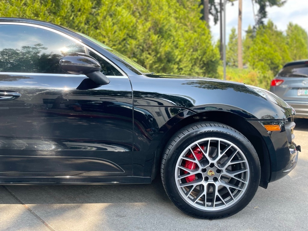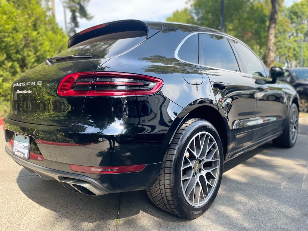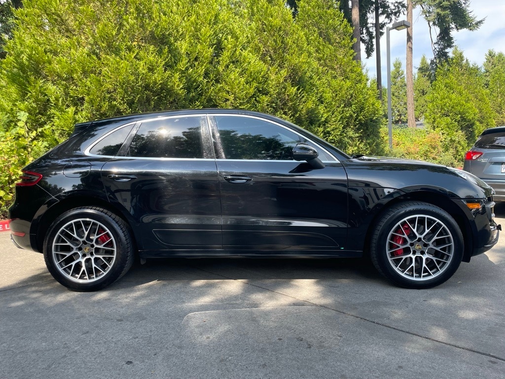 2018 Porsche Macan Turbo Black 3.6L V6 14 Speakers, 18-Way Adaptive Sport Seats, 4-Wheel Disc Brakes, ABS brakes, Adaptive suspension, Air Conditioning, Alloy wheels, AM/FM radio: SiriusXM, Automatic temperature control, Axle Ratio: 4.13, Brake assist, Bumpers: body-color, CD player, Comfort Memory Package, Delay-off headlights, Driver door bin, Driver vanity mirror, Dual front impact airbags, Dual front side impact airbags, DVD-Audio, Electronic Stability Control, Exterior Parking Camera Rear, Four wheel independent suspension, Front anti-roll bar, Front Bucket Seats, Front Center Armrest, Front dual zone A/C, Front fog lights, Front reading lights, Fully automatic headlights, Garage door transmitter: HomeLink, Headlight cleaning, Heated door mirrors, Heated front seats, Heated steering wheel, High intensity discharge headlights: Bi-Xenon, Illuminated entry, Knee airbag, Leather Shift Knob, Low tire pressure warning, Memory seat, Navigation System, Occupant sensing airbag, Outside temperature display, Overhead airbag, Overhead console, Panic alarm, Passenger door bin, Passenger vanity mirror, Porsche Communication Management, Power door mirrors, Power driver seat, Power Liftgate, Power passenger seat, Power steering, Power windows, Radio data system, Rain sensing wipers, Rear air conditioning, Rear anti-roll bar, Rear reading lights, Rear seat center armrest, Rear side impact airbag, Rear window defroster, Rear window wiper, Remote keyless entry, Security system, Smooth-Finish Partial Leather Seat Trim, Speed control, Speed-sensing steering, Split folding rear seat, Spoiler, Sport steering wheel, Steering wheel mounted audio controls, Tachometer, Telescoping steering wheel, Tilt steering wheel, Traction control, Trip computer, Variably intermittent wipers, Wheels: 19" Macan Turbo.