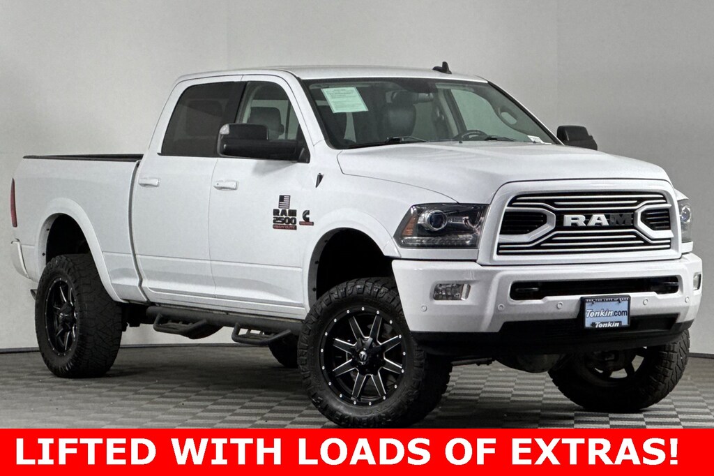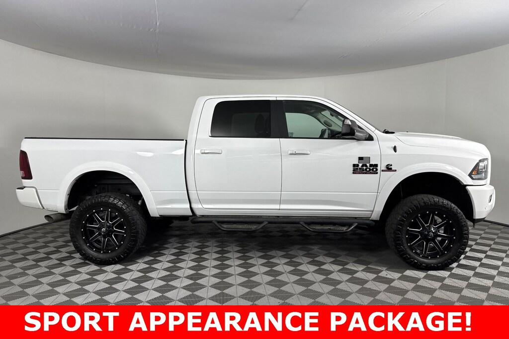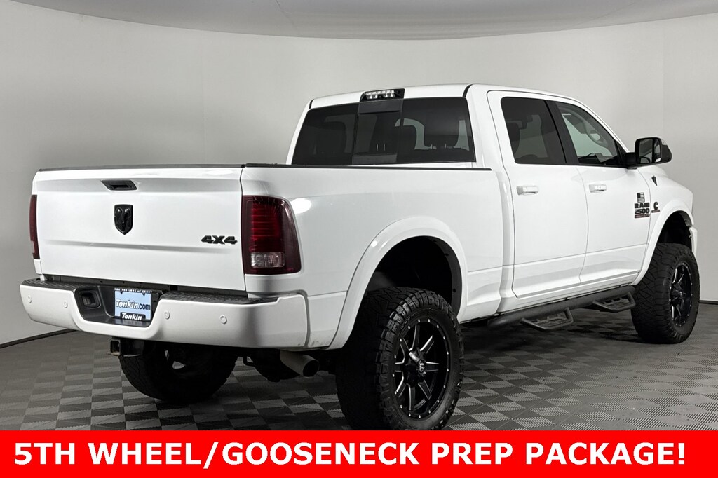 10 Speakers, 115V Auxiliary Power Outlet, 180 Amp Alternator, 3.42 Axle Ratio, 4-Wheel Disc Brakes, 5th Wheel/Gooseneck Towing Prep Group, 8.4" Touchscreen Display, ABS brakes, Air Conditioning, AM/FM radio: SiriusXM, Anti-Spin Differential Rear Axle, Apple CarPlay/Android Auto, Audio memory, Auto High Beam Headlamp Control, Auto-dimming door mirrors, Auto-dimming Rear-View mirror, Automatic temperature control, Bi-Function Black Projector Headlamp, Black Exterior Mirrors, Black MIC Exterior Mirrors, Black Painted Exterior Mirrors, Black Power Fold-Away Mirrors, Black Premium Tail Lamp, Black Tubular Side Steps, Body Color Door Handles, Body-Color Grille w/RAM, Brake assist, Bucket Seats, Compass, Convenience Group, CTR Stop Lamp w/Cargo View Camera, Delay-off headlights, Diesel Exhaust Brake, Driver door bin, Driver vanity mirror, Dual front impact airbags, Dual front side impact airbags, Electronic Stability Control, Electronically Controlled Throttle, Emergency communication system: SiriusXM Guardian, Exterior Mirrors Courtesy Lamps, Exterior Mirrors w/Heating Element, Exterior Mirrors w/Memory, Exterior Mirrors w/Supplemental Signals, Flat Black Cummins Diesel Badge, Folding Flat Load Floor Storage, Front anti-roll bar, Front Armrest w/Cupholders, Front Center Armrest w/Storage, Front Center Seat Cushion Storage, Front dual zone A/C, Front fog lights, Front Performance Tuned Shock Absorbers, Front reading lights, Full Length Upgraded Floor Console, Fully automatic headlights, Garage door transmitter, GPS Antenna Input, GPS Navigation, HD Radio, Heated door mirrors, Heated Front Seats, Heated Second Row Seats, Heated steering wheel, High Back Seats, Highline Door Trim Panel, Illuminated entry, Instrument Panel Premium Bezel, Integrated Center Stack Radio, Integrated Voice Command w/Bluetooth, Keyless Enter-N-Go, Keyless Go w/32C Discount, Leather steering wheel, Leather Trim Sport Front Bench Seat, Leather Trimmed Sport Bucket Seats, Locking Tailgate, Low tire pressure warning, Media Hub (2 USB, AUX), Memory seat, Occupant sensing airbag, Outside temperature display, Overhead airbag, Overhead console, Painted Front Bumper, Painted Rear Bumper, Panic alarm, ParkView Rear Back-Up Camera, Passenger door bin, Passenger vanity mirror, Power 10-Way Memory Driver & 6-Way Passenger Seats, Power door mirrors, Power driver seat, Power Fold Black Trailer Tow Mirror w/Memory, Power Folding Mirrors, Power Lumbar Adjust, Power passenger seat, Power steering, Power windows, Protection Group, Quick Order Package 2FH Laramie, Radio data system, Radio: Uconnect 4C Nav w/8.4" Display, Radio/Driver Seat/Mirrors/Pedals Memory, Rain Sensitive Windshield Wipers, RAM Active Air, Rear 60/40 Split Folding Seat, Rear Performance Tuned Shock Absorbers, Rear seat center armrest, Rear step bumper, Remote keyless entry, Remote Proximity Keyless Entry, Remote Start System, Security system, Selective Catalytic Reduction (Urea), SiriusXM Satellite Radio, SiriusXM Traffic Plus, SiriusXM Travel Link, Speed control, Split folding rear seat, Sport Appearance Group, Spray In Bedliner, Steering wheel mounted audio controls, Storage Tray, Tachometer, Tilt steering wheel, Tip Start, Tow Hooks, Traction control, Trailer Tow Mirrors, Trip computer, Turn signal indicator mirrors, Variably intermittent wipers, Vendor Painted Cargo Box Tracking, Ventilated Front Seats, Voltmeter, Lifted Suspension Kit, Custom Wheels & Off-Road Tires.