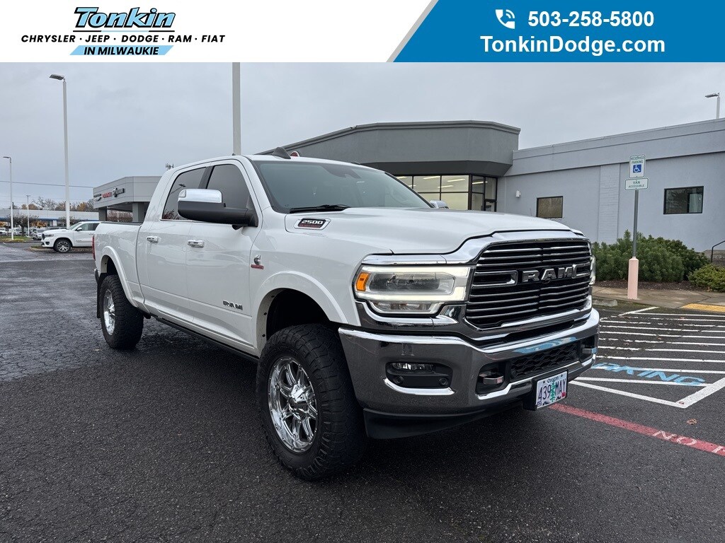 Recent Arrival! CARFAX One-Owner. Clean CARFAX. 2019 Ram 2500 Laramie Cummins 6.7L I6 Turbodiesel 6-Speed Automatic 4WD 4D Mega Cab Bright White Clearcoat 4WD, 1-Year SiriusXM Guardian Trial, 17 Speaker High Performance Audio, 5-Year SiriusXM Traffic Service, 5-Year SiriusXM Travel Link Service, Adaptive Cruise Control w/Stop, Auto High Beam Headlamp Control, Blind Spot & Cross Path Detection, Center Stop Lamp w/Cargo View Camera, Chrome Appearance Group, Chrome Belt Moldings, Chrome Flat Wheel-to-Wheel Side Steps, Chrome Tow Hooks, Disassociated Touchscreen Display, Exterior Mirrors w/Memory, Foam Bottle Insert (Door Trim Panel), For Details Visit DriveUconnect.com, Full Speed Forward Collision Warning Plus, GPS Navigation, HD Radio, Heated Second Row Seats, Laramie Level 2 Equipment Group, Media Hub w/2 Charge Only USBs, Mirror-Mounted Aux Reverse Lamps, Power Adjustable Convex Aux Mirrors, Power Adjustable Pedals w/Memory, Pwr Convenience Chrome Tow Mirrors w/Spotter & Memory, Quick Order Package 2HH Laramie, Radio: Uconnect 4C Nav w/8.4" Display, Radio/Driver Seat/Mirrors/Pedals Memory, Rain Sensitive Windshield Wipers, Ramcharger Wireless Charging Pad, Remote Tailgate Release, Safety Group, Selectable Tire Fill Alert, Single Disc Remote CD Player, SiriusXM Satellite Radio, SiriusXM Traffic Plus, SiriusXM Travel Link, Surround View Camera System, Towing Technology Group, Trailer Reverse Guidance, Ventilated Front Seats, #1 Seat Foam Cushion, 10 Speakers, 115V Auxiliary Rear Power Outlet, 12" Touchscreen Display, 2 Way Rear Headrest Seat, 220 Amp Alternator, 3.73 Axle Ratio, 4 Way Front Headrests, 4-Wheel Disc Brakes, ABS brakes, Active Noise Control System, Adjustable pedals, Air Conditioning, AM/FM radio: SiriusXM, Anti-Spin Differential Rear Axle, Apple CarPlay, Apple CarPlay/Android Auto, Auto-dimming Rear-View mirror, Automatic temperature control, Brake assist, Bumpers: chrome, Center Hub, Compass, Custom Fuel Wheels and Off-Road Tires, Delay-off headlights, Driver door bin, Driver vanity mirror, Dual front impact airbags, Dual front side impact airbags, Electronic Stability Control, Electronically Controlled Throttle, Front anti-roll bar, Front Center Armrest w/Storage, Front dual zone A/C, Front fog lights, Front reading lights, Front Seat Back Map Pockets, Fully automatic headlights, Garage door transmitter, Google Android Auto, GPS Antenna Input, Heated door mirrors, Heated Front Seats, Heated front seats, Heated Steering Wheel, Heated steering wheel, High Back Seats, Illuminated entry, Integrated Voice Command w/Bluetooth, Leather steering wheel, Leather Trim 40/20/40 Bench Seat, LED Bed Lighting, Low tire pressure warning, Occupant sensing airbag, Outside temperature display, Overhead airbag, Overhead console, Panic alarm, ParkSense Front/Rear Park Assist System, ParkView Rear Back-Up Camera, Passenger door bin, Passenger vanity mirror, Power 2-Way Driver Lumbar Adjust, Power 2-Way Passenger Lumbar Adjust, Power Adjust 8-Way Driver Seat, Power Adjust 8-Way Front Passenger Seat, Power Deployable Running Boards, Power door mirrors, Power driver seat, Power passenger seat, Power steering, Power Sunroof, Power windows, Radio data system, Radio: Uconnect 12 w/Navigation, Radio: Uconnect 4 w/8.4" Display, Rear 60/40 Folding Seat, Rear anti-roll bar, Rear reading lights, Rear seat center armrest, Rear step bumper, Rear window defroster, Remote keyless entry, Security system, Selectable Tire Fill Alert (DISC), SiriusXM w/360L, Speed control, Split folding rear seat, Spray In Bedliner, Steering wheel mounted audio controls, Tachometer, Tilt steering wheel, Tip Start, Tire Fill Alert (DISC), Traction control, Trip computer, Turn signal indicator mirrors, USB Host Flip, Variably intermittent wipers, Vendor Painted Cargo Box Tracking, Voltmeter, Wheels: 18" x 8.0" Polished Aluminum, Wheels: 20" x 8.0" Painted Aluminum w/Chrome Inserts, 4WD, 1-Year SiriusXM Guardian Trial, 17 Speaker High Performance Audio, 5-Year SiriusXM T