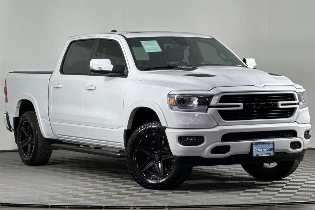 Sport Appearance Package! Android Auto, Apple CarPlay, Dual Moon Roofs, Keyless Entry, Blind Spot, Back Up Camera, Heated Seats, Bluetooth, 8.4" Touchscreen Display, #1 Seat Foam Cushion, 10 Speakers, 12" Touchscreen Display, 3 Rear Seat Head Restraints, 4 Way Front Headrests, 4-Wheel Disc Brakes, 48V Belt Starter Generator, 4G LTE Wi-Fi Hot Spot, ABS brakes, Adjustable pedals, Air Conditioning, AM/FM radio: SiriusXM, Apple CarPlay, Apple CarPlay/Android Auto, Audio memory, Auto-dimming door mirrors, Auto-dimming Rear-View mirror, Automatic temperature control, Brake assist, Bumpers: chrome, Compass, Delay-off headlights, Disassociated Touchscreen Display, Dome Dual LED Reading Lamp, Driver door bin, Driver Seat Memory, Driver vanity mirror, Dual front impact airbags, Dual front side impact airbags, Dual-Pane Panoramic Sunroof, Electronic Stability Control, For Details, Visit DriveUconnect.com, Front & Rear Rubber Floor Mats, Front anti-roll bar, Front Center Armrest w/Storage, Front dual zone A/C, Front fog lights, Front reading lights, Front Seat Back Map Pockets, Front wheel independent suspension, Fully automatic headlights, Garage door transmitter, Google Android Auto, GPS Antenna Input, GPS Navigation, HD Radio, Heated door mirrors, Heated Front Seats, Heated front seats, Heated Steering Wheel, Heated steering wheel, Illuminated entry, Integrated Center Stack Radio, Laramie Level 1 Equipment Group, Leather steering wheel, Leather Trim 40/20/40 Bench Seat, LED Dome/Reading Lamp, Low tire pressure warning, Manufacturer's Statement of Origin, Memory seat, Occupant sensing airbag, Outside temperature display, Overhead airbag, Overhead console, Panic alarm, ParkSense Front/Rear Park Assist w/Stop (DISC), ParkView Rear Back-Up Camera, Passenger door bin, Passenger vanity mirror, Pedal memory, Power 4-Way Driver Lumbar Adjust, Power 4-Way Passenger Lumbar Adjust, Power 8-Way Driver & Passenger Seats, Power door mirrors, Power driver seat, Power passenger seat, Power steering, Power windows, Quick Order Package 25H Laramie, Radio data system, Radio: Uconnect 12 w/Navigation, Radio: Uconnect 4 w/8.4" Display, Rear anti-roll bar, Rear seat center armrest, Rear step bumper, Rear window defroster, Remote keyless entry, Security system, SiriusXM Satellite Radio, SiriusXM Traffic Plus, SiriusXM Travel Link, SiriusXM w/360L, Speed control, Split folding rear seat, Sport Appearance Package, Steering wheel mounted audio controls, Tachometer, Telescoping steering wheel, Tilt steering wheel, Traction control, Trip computer, Turn signal indicator mirrors, USB Host Flip, Variably intermittent wipers, Ventilated Front Seats, Ventilated front seats, Voltmeter, 8.4" Touchscreen Display.