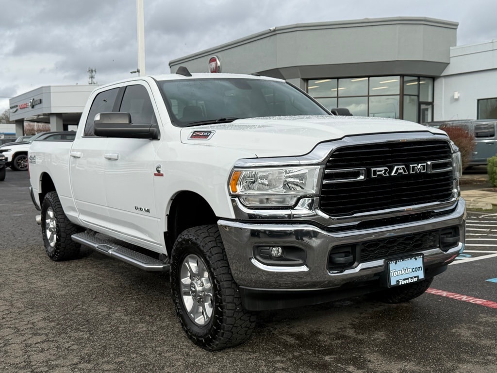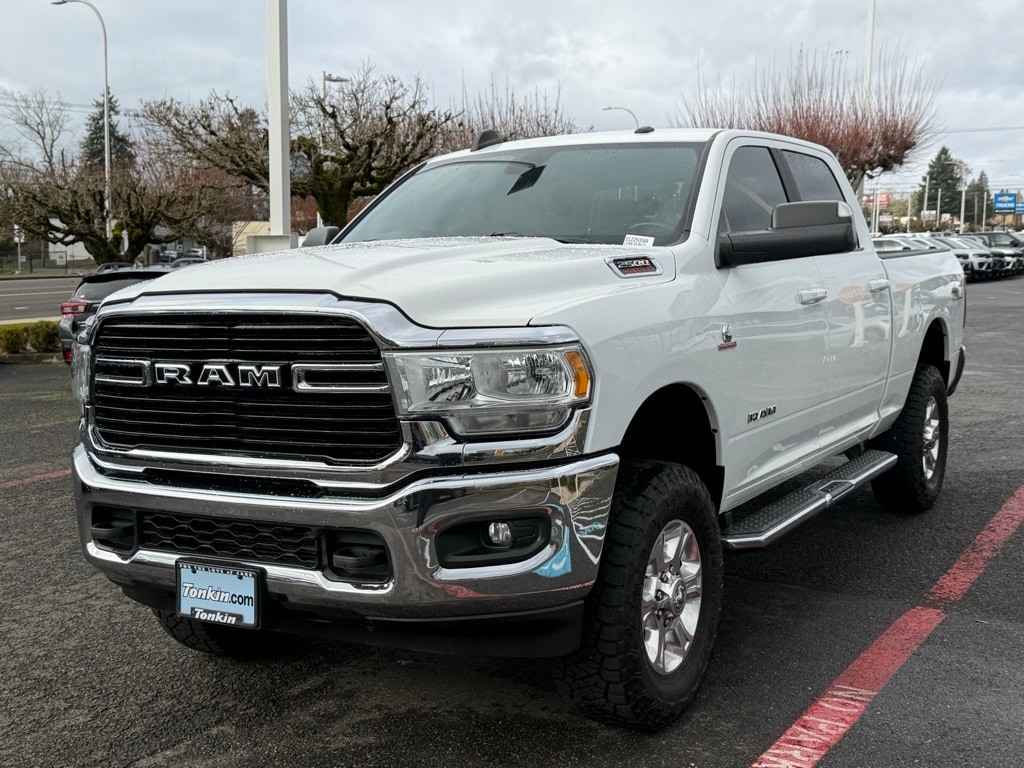 Clean CARFAX. 2021 Ram 2500 Big Horn Cummins 6.7L I6 Turbodiesel 6-Speed Automatic 4WD 4D Crew Cab Bright White Clearcoat 4WD, 2 Way Rear Headrest Seat, 220 Amp Alternator, 2nd Row In Floor Storage Bins, 4 Way Front Headrests, 40/20/40 Split Bench Seat, 8.4" Touchscreen Display, Apple CarPlay, Auto-Dimming Rear-View Mirror, Big Horn IP Badge, Center Hub, Center Stack Storage Drawer, Cluster 3.5" TFT Color Display, Cold Weather Group, Dual Glove Boxes, Engine Block Heater, Foam Bottle Insert (Door Trim Panel), Folding Flat Load Floor Storage, Footwell Courtesy Lamp, Front Armrest w/Cupholders, Front Center Seat Cushion Storage, Front Fog Lamps, Front Performance Tuned Shock Absorbers, Front Seat Back Map Pockets, Glove Box Lamp, Google Android Auto, GPS Antenna Input, Heavy Duty Snow Plow Prep Group, Hill Descent Control, Integrated Center Stack Radio, Integrated Voice Command w/Bluetooth, Leather Wrapped Steering Wheel, Level 1 Equipment Group, Locking Lower Glove Box, Manual Adjust 4-Way Front Passenger Seat, MOPAR Winter Front Grille Cover, Off Road Decal, Off Road Package, Off-Road Information Pages, Power 2-Way Driver Lumbar Adjust, Power Adjust 8-Way Driver Seat, Power Adjust/Fold & Heated Black Tow Mirrors, Power Adjustable Pedals, Power Folding Mirrors, Premium Cloth 40/20/40 Bench Seat, Quick Order Package 2HZ Big Horn, Radio: Uconnect 4 w/8.4" Display, Rear 60/40 Folding Seat, Rear Dome w/On/Off Switch Lamp, Rear Performance Tuned Shock Absorbers, SiriusXM Satellite Radio, Steering Wheel Mounted Audio Controls, Sun Visors w/Illuminated Vanity Mirrors, Tow Hooks, Universal Garage Door Opener, Wheels: 18" x 8.0" Polished Aluminum, 1 Year Telematics Service, 3.73 Axle Ratio, 4-Wheel Disc Brakes, 6 Speakers, ABS brakes, Active Noise Control System, Air Conditioning, AM/FM radio, Anti-Spin Differential Rear Axle, Brake assist, Bumpers: chrome, Chrome Flat Cab-Length Side Steps, Cloth 40/20/40 Bench Seat, Compass, Delay-off headlights, Driver door bin, Dual front impact airbags, Dual front side impact airbags, Electronic Stability Control, Electronically Controlled Throttle, Front anti-roll bar, Front Center Armrest w/Storage, Front License Plate Bracket, Front reading lights, Fully automatic headlights, Heated door mirrors, Illuminated entry, Low tire pressure warning, Manual Adjust 4-Way Driver Seat, Occupant sensing airbag, Outside temperature display, Overhead airbag, Overhead console, Panic alarm, ParkSense Rear Park Assist System, ParkView Rear Back-Up Camera, Passenger door bin, Passenger vanity mirror, Power door mirrors, Power steering, Power windows, Premium Wheels, Radio data system, Radio: Uconnect 3 w/5" Display, RAM Telematics, Rear anti-roll bar, Rear Backup Alarm, Rear Folding Seat, Rear seat center armrest, Rear step bumper, Rear Window Defroster, Remote keyless entry, Speed control, Tachometer, Tilt steering wheel, Tip Start, Traction control, Trip computer, Turn signal indicator mirrors, Variably intermittent wipers, Vendor Painted Cargo Box Tracking, Voltmeter, 4WD, 2 Way Rear Headrest Seat, 220 Amp Alternator, 2nd Row In Floor Storage Bins, 4 Way Front Headrests, 40/20/40 Split Bench Seat, 8.4" Touchscreen Display, Apple CarPlay, Auto-Dimming Rear-View Mirror, Big Horn IP Badge, Center Hub, Center Stack Storage Drawer, Cluster 3.5" TFT Color Display, Cold Weather Group, Dual Glove Boxes, Engine Block Heater, Foam Bottle Insert (Door Trim Panel), Folding Flat Load Floor Storage, Footwell Courtesy Lamp, Front Armrest w/Cupholders, Front Center Seat Cushion Storage, Front Fog Lamps, Front Performance Tuned Shock Absorbers, Front Seat Back Map Pockets, Glove Box Lamp, Google Android Auto, GPS Antenna Input, Heavy Duty Snow Plow Prep Group, Hill Descent Control, Integrated Center Stack Radio, Integrated Voice Command w/Bluetooth, Leather Wrapped Steering Wheel, Level 1 Equipment Group, Locking Lower Glove Box, Manual Adjust 4-Way Front Passenger Seat, MOPAR Winter Front Grille Cover, Off Road Decal, Off Road