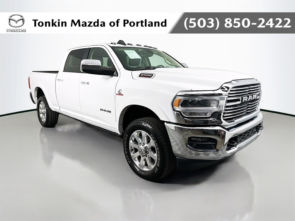 CARFAX One-Owner. Clean CARFAX. Bright White Clearcoat 2022 Ram 2500 Laramie 4D Crew Cab Cummins 6.7L I6 Turbodiesel 6-Speed Automatic 4WD 10 Speakers, 115V Auxiliary Rear Power Outlet, 12" Touchscreen Display, 17 Speaker harman kardon Premium Sound, 2 Way Rear Headrest Seat, 220 Amp Alternator, 2nd Row In Floor Storage Bins, 4 Way Front Headrests, 4-Wheel Disc Brakes, 4G LTE Wi-Fi Hot Spot, 8.4" Touchscreen Display, ABS brakes, Active Noise Control System, Adjustable pedals, Air Conditioning, Air Suspension Decal, Alexa Built-In, All R1 High Radios, All Radio Equipped Vehicles, AM/FM radio: SiriusXM, Apple CarPlay, Apple CarPlay/Android Auto, Auto High Beam Headlamp Control, Auto Level Rear Air Suspension, Auto-dimming Rear-View mirror, Automatic temperature control, Bluetooth Handsfree Phone & Audio, Brake assist, Bumpers: chrome, Chrome Exterior Mirrors, Clearance Lamps, Cold Weather Group, Compass, Connected Travel & Traffic Services, Connectivity - US/Canada, Delay-off headlights, Digital Rearview Mirror, Disassociated Touchscreen Display, Driver door bin, Driver vanity mirror, Dual front impact airbags, Dual front side impact airbags, Electronic Stability Control, Electronically Controlled Throttle, Engine Block Heater, Exterior Mirrors Courtesy Lamps, Exterior Mirrors w/Heating Element, Exterior Mirrors w/Memory, Exterior Mirrors w/Supplemental Signals, Foam Bottle Insert (Door Trim Panel), For Details, Visit DriveUconnect.com, For More Info, Call 800-643-2112, Front anti-roll bar, Front Center Armrest w/Storage, Front dual zone A/C, Front fog lights, Front License Plate Bracket, Front reading lights, Front Seat Back Map Pockets, Fully automatic headlights, Garage door transmitter, Global Telematics Box Module (TBM), Google Android Auto, GPS Antenna Input, GPS Navigation, HD Radio, Heated door mirrors, Heated Front Seats, Heated front seats, Heated Second Row Seats, Heated Steering Wheel, Heated steering wheel, Heavy Duty Snow Plow Prep Group, Illuminated entry, Integrated Center Stack Radio, Integrated Voice Command w/Bluetooth, Keyless Entry, Laramie Level B Equipment Group (DISC), Leather, Leather steering wheel, Leather Trim 40/20/40 Bench Seat, Low tire pressure warning, Manufacturer's Statement of Origin, Mirror Running Lights, Mirror-Mounted Aux Reverse Lamps, MOPAR Winter Front Grille Cover, Nav, Occupant sensing airbag, Off-Road Information Pages, Outside temperature display, Overhead airbag, Overhead console, Panic alarm, ParkView Rear Back-Up Camera, Passenger door bin, Passenger vanity mirror, Power 2-Way Driver Lumbar Adjust, Power 2-Way Passenger Lumbar Adjust, Power Adjust 8-Way Driver Seat, Power Adjust 8-Way Front Passenger Seat, Power Adjustable Convex Aux Mirrors, Power Adjustable Pedals w/Memory, Power Chrome Tow Mirrors w/Convex Spotter & Memory, Power Deployable Running Boards, Power door mirrors, Power driver seat, Power Folding Mirrors, Power passenger seat, Power steering, Power Sunroof, Power windows, Protection Group, Quick Order Package 2HH Laramie, Radio data system, Radio: Uconnect 5 Nav w/12.0" Display, Radio: Uconnect 5 Nav w/8.4" Display, Radio: Uconnect 5 W w/8.4" Display, Radio/Driver Seat/Mirrors/Pedals Memory, Rain Sensitive Windshield Wipers, Rear 60/40 Folding Seat, Rear anti-roll bar, Rear Backup Alarm, Rear reading lights, Rear seat center armrest, Rear step bumper, Rear window defroster, Remote keyless entry, Remote Tailgate Release, Security system, Selectable Tire Fill Alert, SiriusXM Radio Service, SiriusXM w/360L, Speed control, Split folding rear seat, Steering wheel mounted audio controls, Tachometer, Tilt steering wheel, Tip Start, Tow-Mode Camera (Wired) (DISC), Tow-Mode Digital Rearview Mirror Package (DISC), Traction control, Trailer Tow Mirrors, Trip computer, Turn signal indicator mirrors, Vendor Painted Cargo Box, Vendor Painted Cargo Box Tracking, Voltmeter.