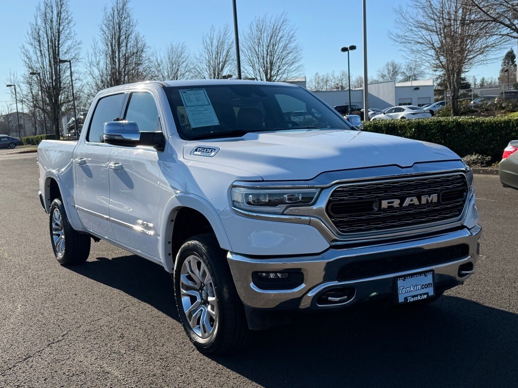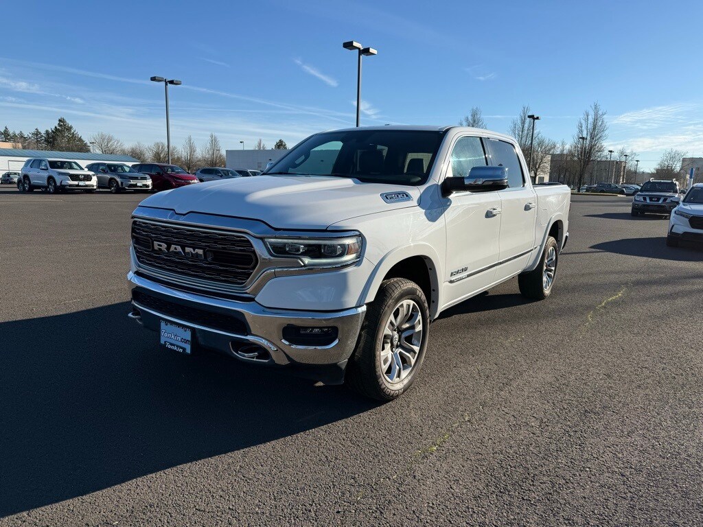 10 Speakers, 3.21 Rear Axle Ratio, 4 Way Front Headrests, 4-Wheel Disc Brakes, 48V Belt Starter Generator, ABS brakes, Active Noise Control System, Adjustable pedals, Air Conditioning, Alloy wheels, AM/FM radio: SiriusXM with 360L, Apple CarPlay/Android Auto, Audio memory, Auto High-beam Headlights, Auto-dimming door mirrors, Auto-Dimming Exterior Driver Mirror, Auto-dimming Rear-View mirror, Auto-leveling suspension, Automatic temperature control, Bodyside moldings, Brake assist, Bucket Seats, Bumpers: chrome, Chrome Exterior Mirrors, Compass, Convex Wide-Angle Exterior Mirror Insert, Delay-off headlights, Driver door bin, Driver Seat Memory, Driver vanity mirror, Dual front impact airbags, Dual front side impact airbags, Dual Rear Exhaust w/Bright Tips, Electronic Stability Control, Exterior Mirrors Courtesy Lamps, Exterior Mirrors w/Heating Element, Exterior Mirrors w/Memory, Exterior Mirrors w/Supplemental Signals, Front anti-roll bar, Front Bucket Seats, Front Center Armrest w/Storage, Front dual zone A/C, Front fog lights, Front License Plate Bracket, Front reading lights, Front Seat Back Map Pockets, Front wheel independent suspension, Full Length Premium Floor Console, Fully automatic headlights, Garage door transmitter, Genuine wood console insert, Genuine wood dashboard insert, Genuine wood door panel insert, Heated door mirrors, Heated Front Seats, Heated front seats, Heated rear seats, Heated Second Row Seats, Heated Steering Wheel, Heated steering wheel, Heavy-Duty Engine Cooling, HEMI Badge, Illuminated entry, Leather steering wheel, Low tire pressure warning, Memory seat, Navigation System, Occupant sensing airbag, Outside temperature display, Overhead airbag, Overhead console, Panic alarm, ParkView Rear Back-Up Camera, Passenger door bin, Passenger vanity mirror, Passive Tuned Mass Damper, Pedal memory, Power 4-Way Driver Lumbar Adjust, Power 4-Way Passenger Lumbar Adjust, Power 8-Way Driver & Passenger Seats, Power door mirrors, Power driver seat, Power passenger seat, Power steering, Power windows, Power-Folding Mirrors, Premium Leather Trimmed Bucket Seats, Quick Order Package 27M Limited, Radio data system, Radio: Uconnect 5 Nav w/12.0" Display, Rain sensing wipers, Rear 60/40 Folding Split Recline Seat, Rear anti-roll bar, Rear seat center armrest, Rear step bumper, Rear window defroster, Remote keyless entry, Security system, Speed control, Split folding rear seat, Steering wheel mounted audio controls, Tachometer, Telescoping steering wheel, Tilt steering wheel, Traction control, Trip computer, Turn signal indicator mirrors, Variably intermittent wipers, Ventilated Front Seats, Ventilated front seats, Ventilated Rear Seats, Ventilated rear seats, Voltmeter, Wheels: 20" x 9" Aluminum Painted/Polished.