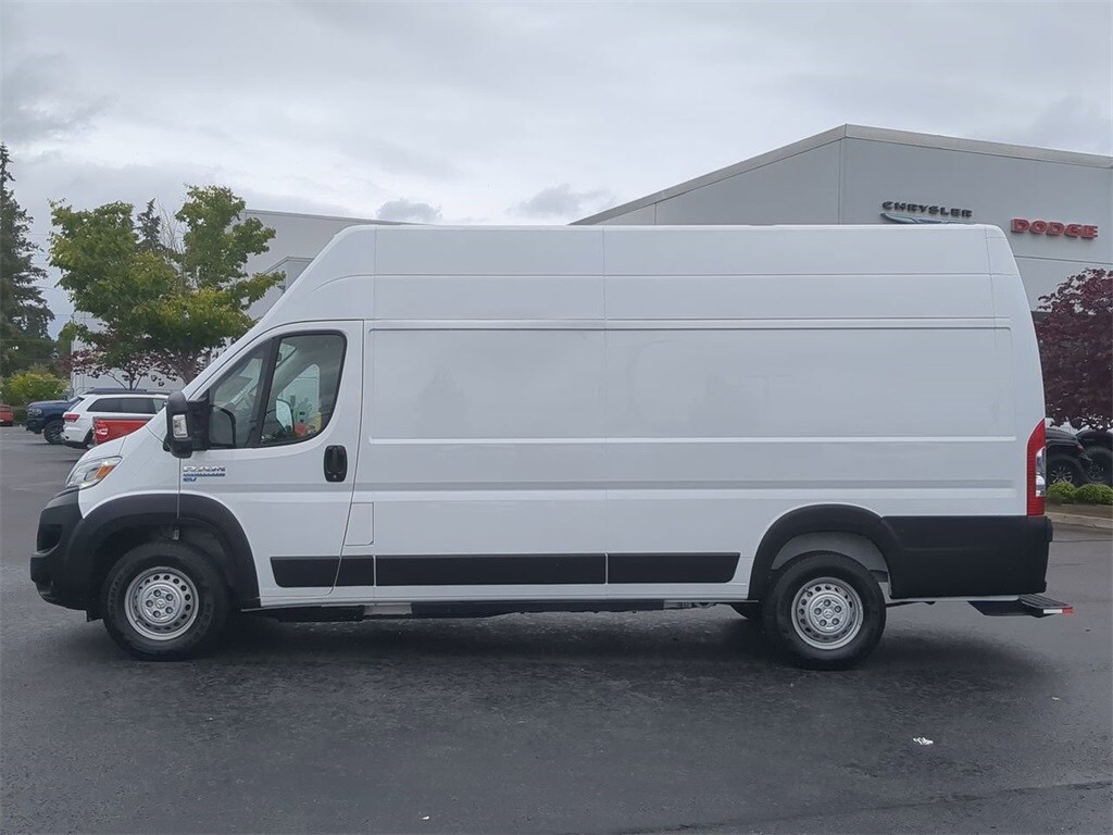 10.09 Axle Ratio, 16" x 6" Steel Wheels, 4 Speakers, 4-Wheel Disc Brakes, 70 mph Maximum Speed, ABS brakes, Adaptive Cruise Control w/Stop & Go, Air Conditioning, AM/FM radio: SiriusXM, Apple CarPlay/Android Auto, Auto High-beam Headlights, Auto-dimming Rear-View mirror, Blind Spot & Cross Path Detection, Bodyside moldings, Brake assist, Cloth Flat Driver's Seat, Delivery Van Package, Door Auto Lock-Unlock, Driver door bin, Driver's Seat Mounted Armrest, Dual front impact airbags, Electronic Stability Control, Front anti-roll bar, Front Bucket Seats, Front fog lights, Front License Plate Bracket, Front reading lights, Front wheel independent suspension, Fully automatic headlights, Heated door mirrors, Heated front seats, Heated Steering Wheel, Heated Windshield, Heavy Duty Suspension, Illuminated entry, Intelligent Speed Assist (ISA), Lane Departure Warning Plus, Last Mile Delivery Upfit Kit, Leather steering wheel, Low tire pressure warning, Navigation System, Occupant sensing airbag, Outside temperature display, Overhead airbag, Overhead console, ParkSense Front/Rear Park Assist w/Stop, ParkView Rear Back-Up Camera, Passenger door bin, Passive Entry, Power door mirrors, Power steering, Power windows, Quick Order Package 24A, Radio Mute On Reverse, Radio: Uconnect 5 Nav w/10.1" Display, Rain sensing wipers, Rear anti-roll bar, Remote keyless entry, Steering wheel mounted audio controls, Surround View Camera System, Telescoping steering wheel, Traction control, Trip computer, Turn signal indicator mirrors, Variably intermittent wipers, White Noise Backup Alarm, Wireless Charging Pad, EV Full Electric.